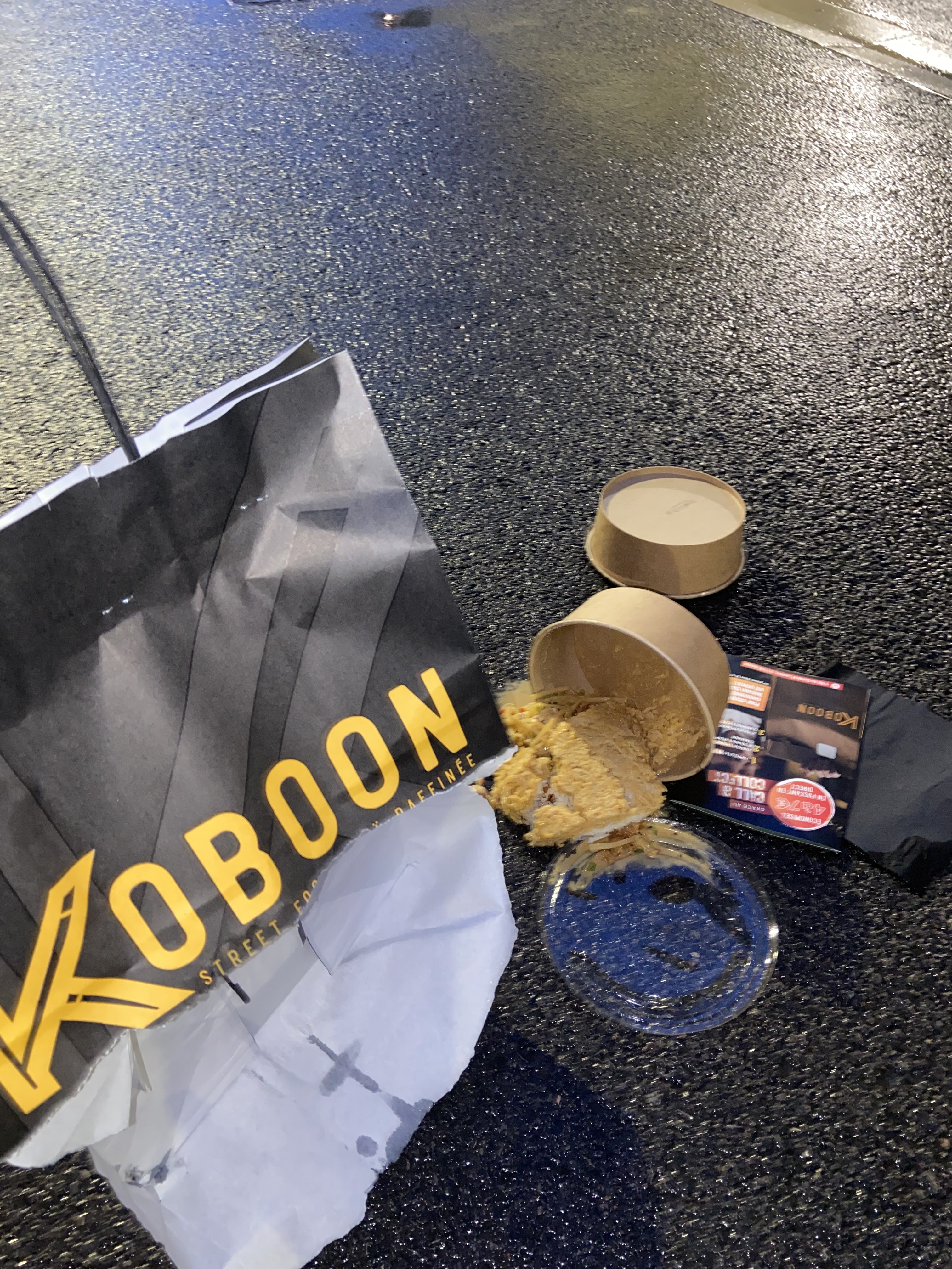 Hier soir, mon conjoint a commandé sur UberEats chez Koboon Reims. Le livreur nous livre notre repas et s’en vas. Mon conjoint reviens chez nous, quand le sac se déchire et toute la nourriture se retrouve par terre. Je décide d’appeler le restaurant afin de pouvoir obtenir quelque chose (un remboursement ou nous refaire livrer un repas). Je tombe sur une jeune femme qui me dis qu’elle vas voir avec son directeur qu’elle nous rappelle. Elle rappelle 10min après en nous disant que c’est de la faute des livreurs donc que l’on signale le problème a l’application. Je me permets de lui dire que ce n’est aucunement la faute des livreurs mais de leurs sacs en papier qui ne supporte pas le poids de la nourriture mise à l’intérieur, celle-ci pose le téléphone et me laisse parler dans le vide. Au bout de 5min d’attente je fini par raccrocher et on ne nous rappellera pas. Je trouve cela très peu commerçant, même pas une excuse rien on nous dis juste de faire une réclamation sur l’application ! Sachez que ce n’est pas la première fois que cela arrive, mon collègue de travail avait été chercher son repas au restaurant directement et le sac avait également lâché sur la route. Là on lui a refais son repas.