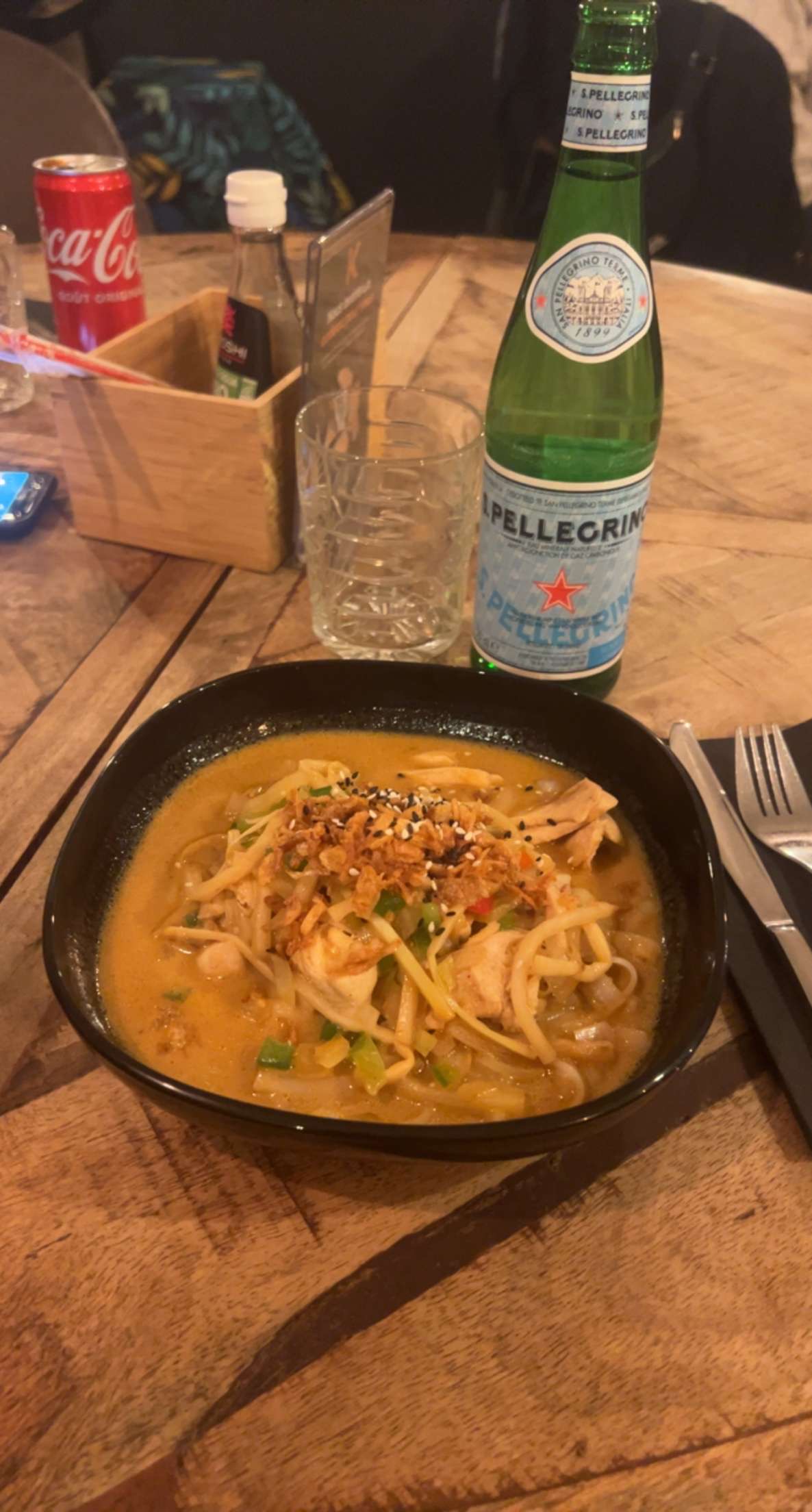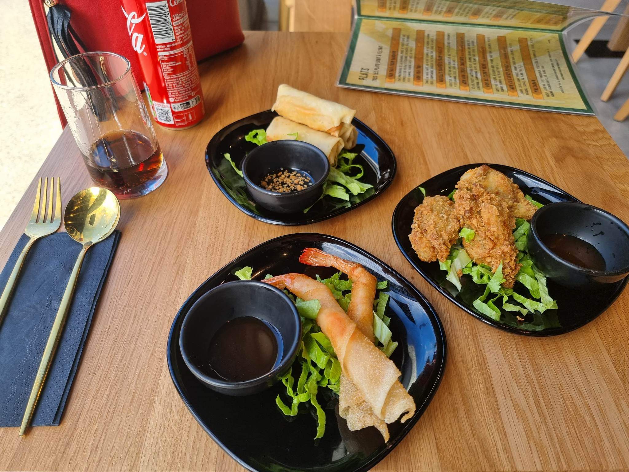 Ce soir, nous sommes allés dîner mon mari et moi et nous avons été super bien accueilli, super bien conseillé. Nous avons pris 3 entrées à partager, les nems façon thaï , les croustillants de crevettes et les ailerons frit de poulet que j’ai TROP AIMÉE! Ensuite en plat, mari a prit le nasi goreng qui était très bon mais pas aussi incroyable que mes noodles coco piquante explosion de saveur !! On reviendra ça c’est sure 😁