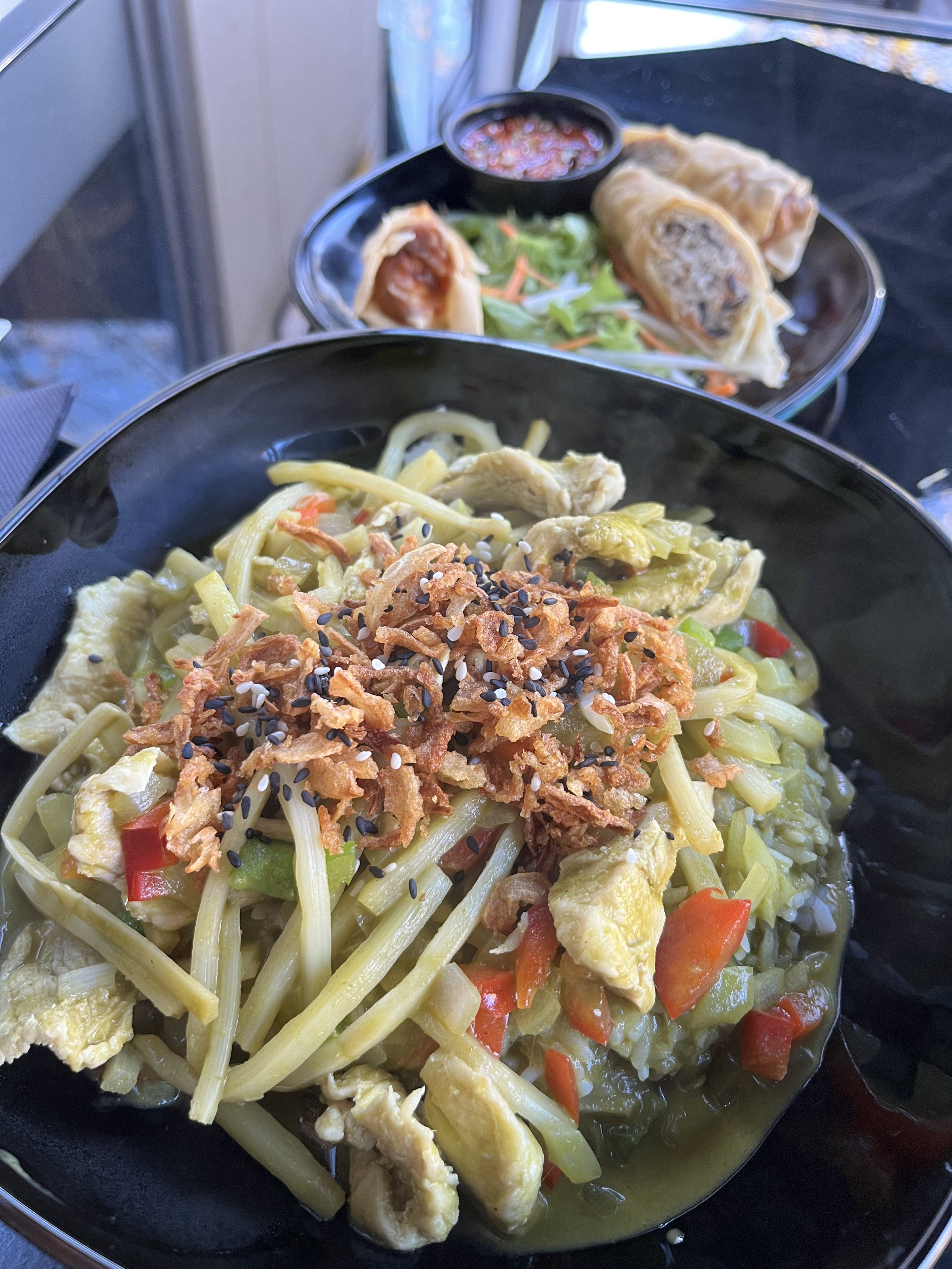 Miam miam c'est délicieux. Les nems suivis du curry vert. 🤩🤩🤩