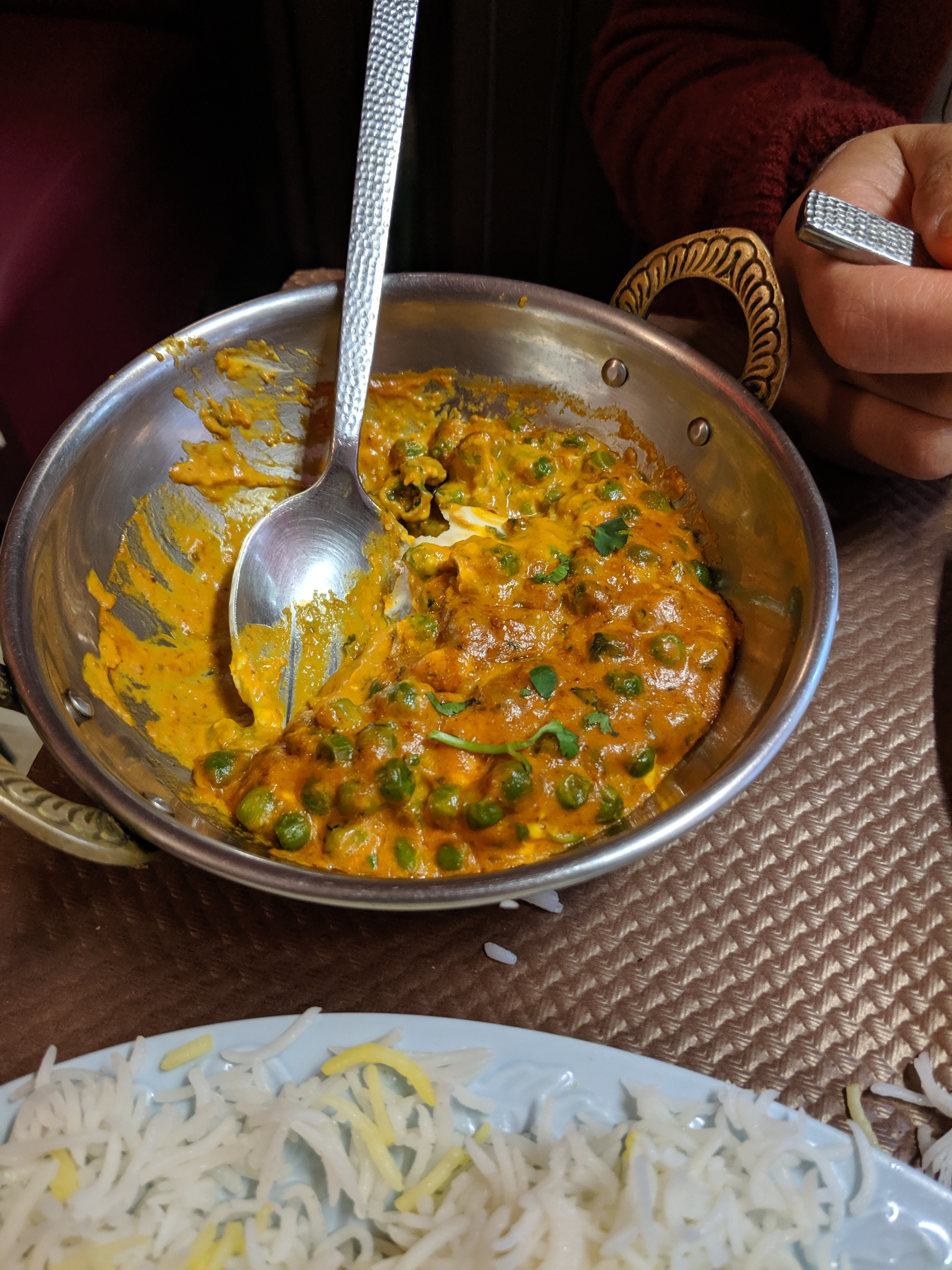 J'ai aimé les entrées mais pas le plat principal. J'ai l'impression que la cuisine indienne est atténuée pour les papilles françaises 😕. C'est toujours bon mais j'ai mieux mangé