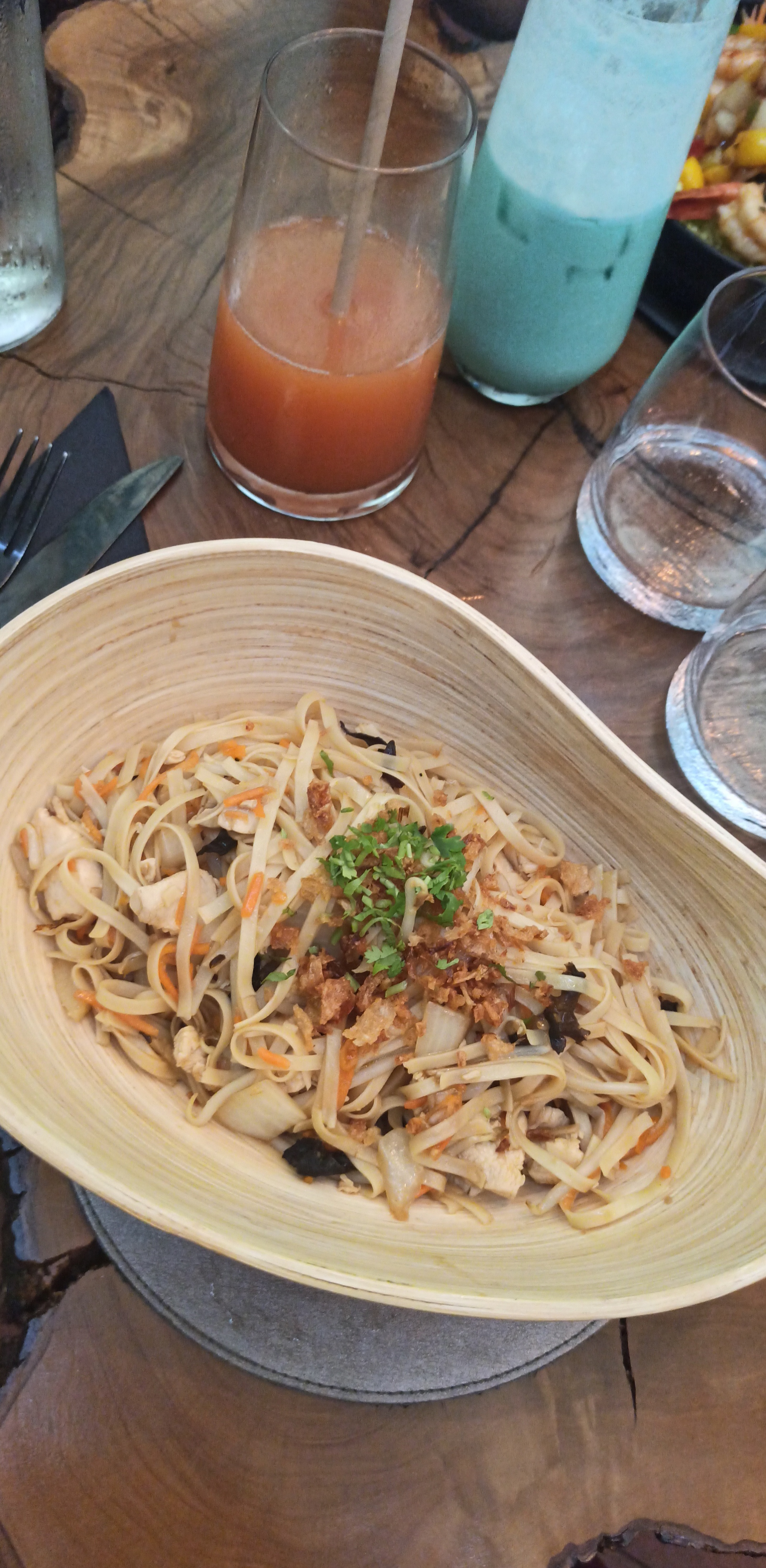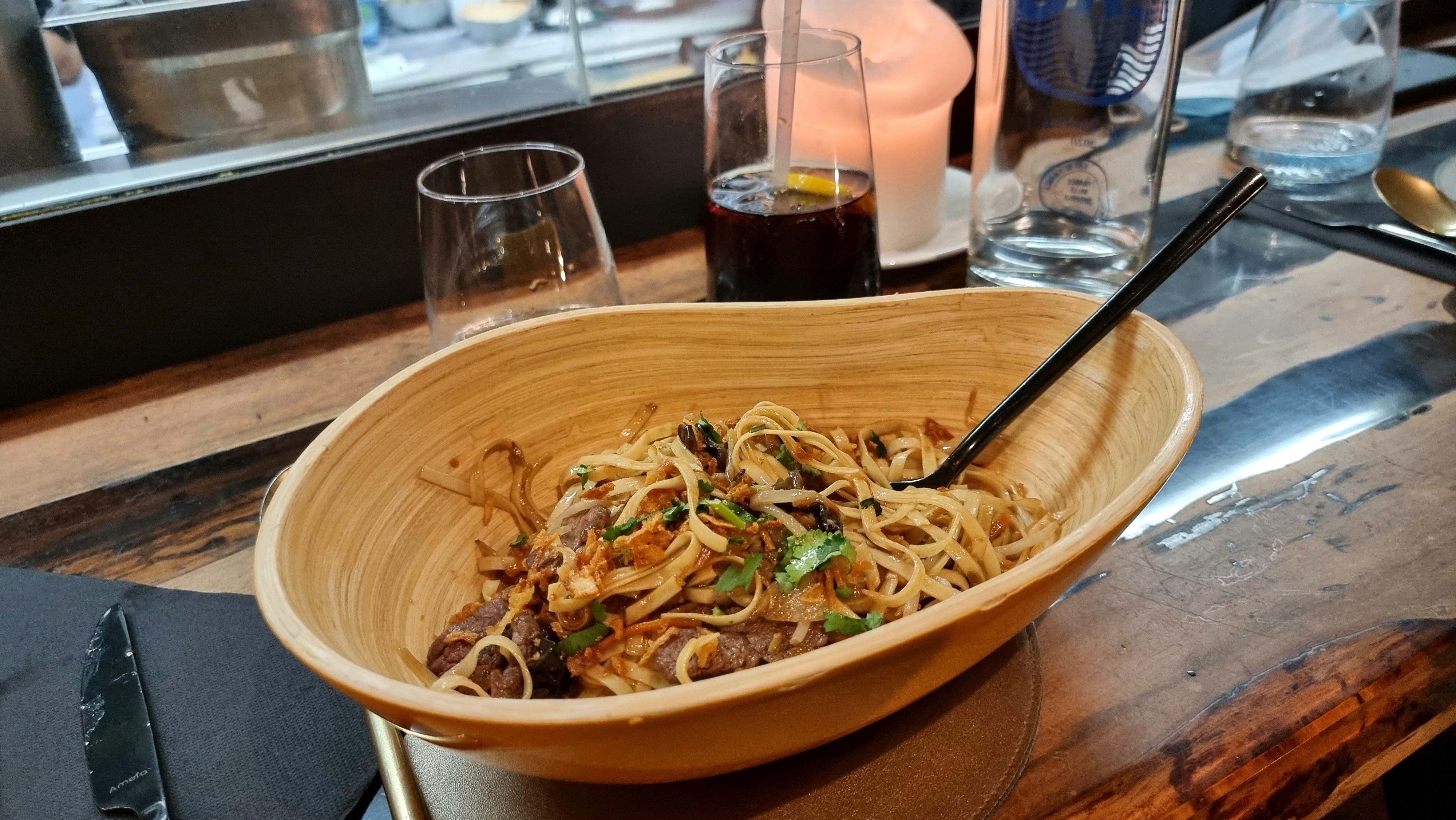 Bon accueil, rien à dire sur le service, cadre chaleureux et moderne très agréable mais c'est cher pour la quantité servie. Le pad thaï manque un peu de saveur (citron vert, cacahuète,...) et de sauce. Bien mais pas le meilleur que j'ai mangé et quantité trop mince.