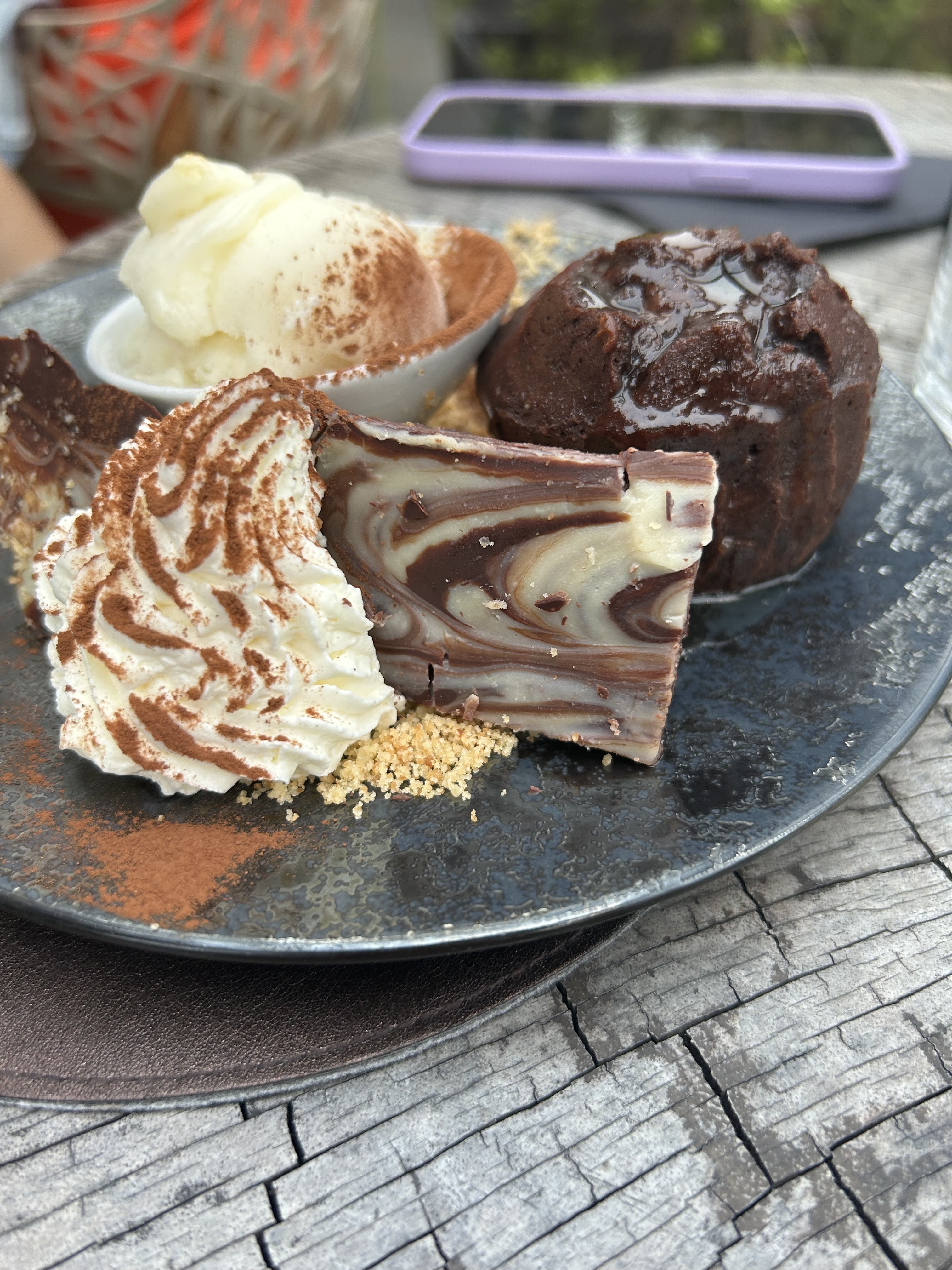 Personnels agréables, rapidité sur le service avec le sourire, cocktail excellent pour les amoureux de la noix de coco je recommande le cocktail sans alcool . Jolies assiettes. Une belle originalité des table un restaurant qui a du charme.