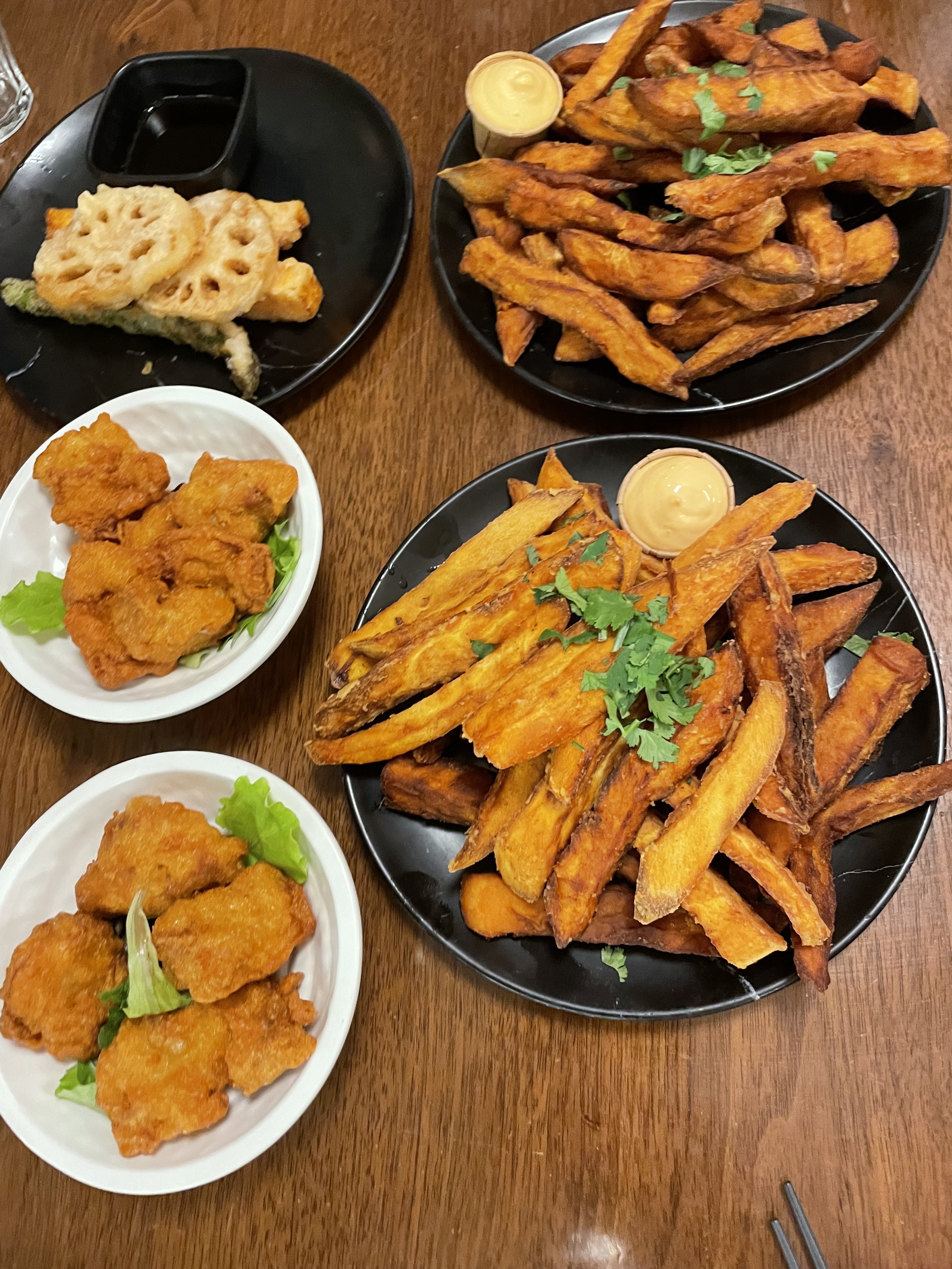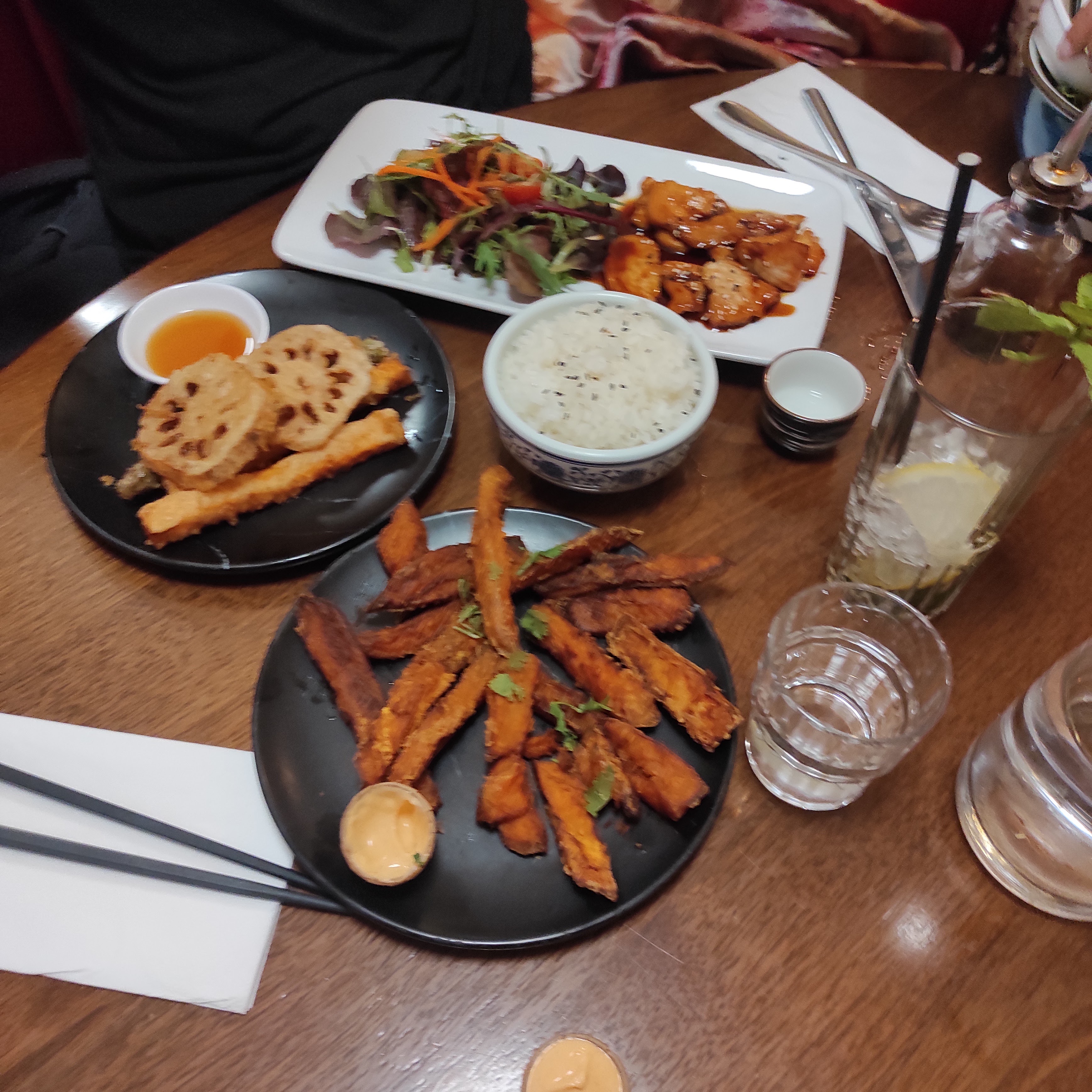 Guabao très bon, les frites patate douce excellente. Maki roll sympa. Tofu frit très très bon également, ça me rapelle ceux que je mangeait au Japon. Par contre grosse déception pour le poulet frit ail/gingembre, il y as pratiquement que de la graisse et pas de chair = pas mangeable. Dessert Ok Service /serveur excellent et sympa