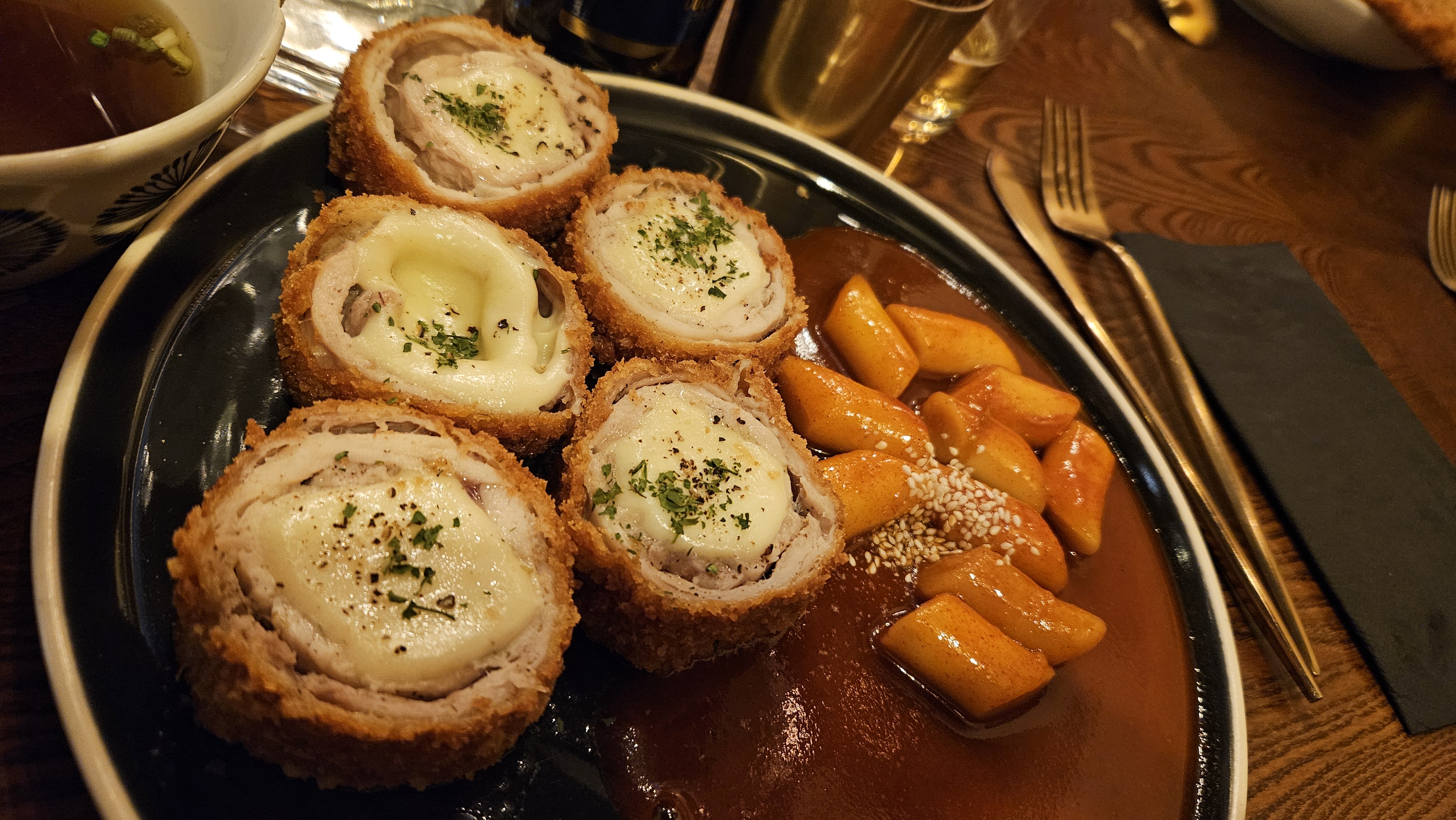 Incroyable concept! Une fusion Italie-Corée-Japon, ça fait peur dit comme ça mais j’ai été agréablement surpris par les plats délicieux, pâtes carbonara katsu incroyable, les croquettes panées fromage poulet avec Tteokbokki un délice! Plein de surprises à découvrir dans les plats même les poulets frits coréens sont tops! La déco est très cool et l’équipe super sympa! Foncez!