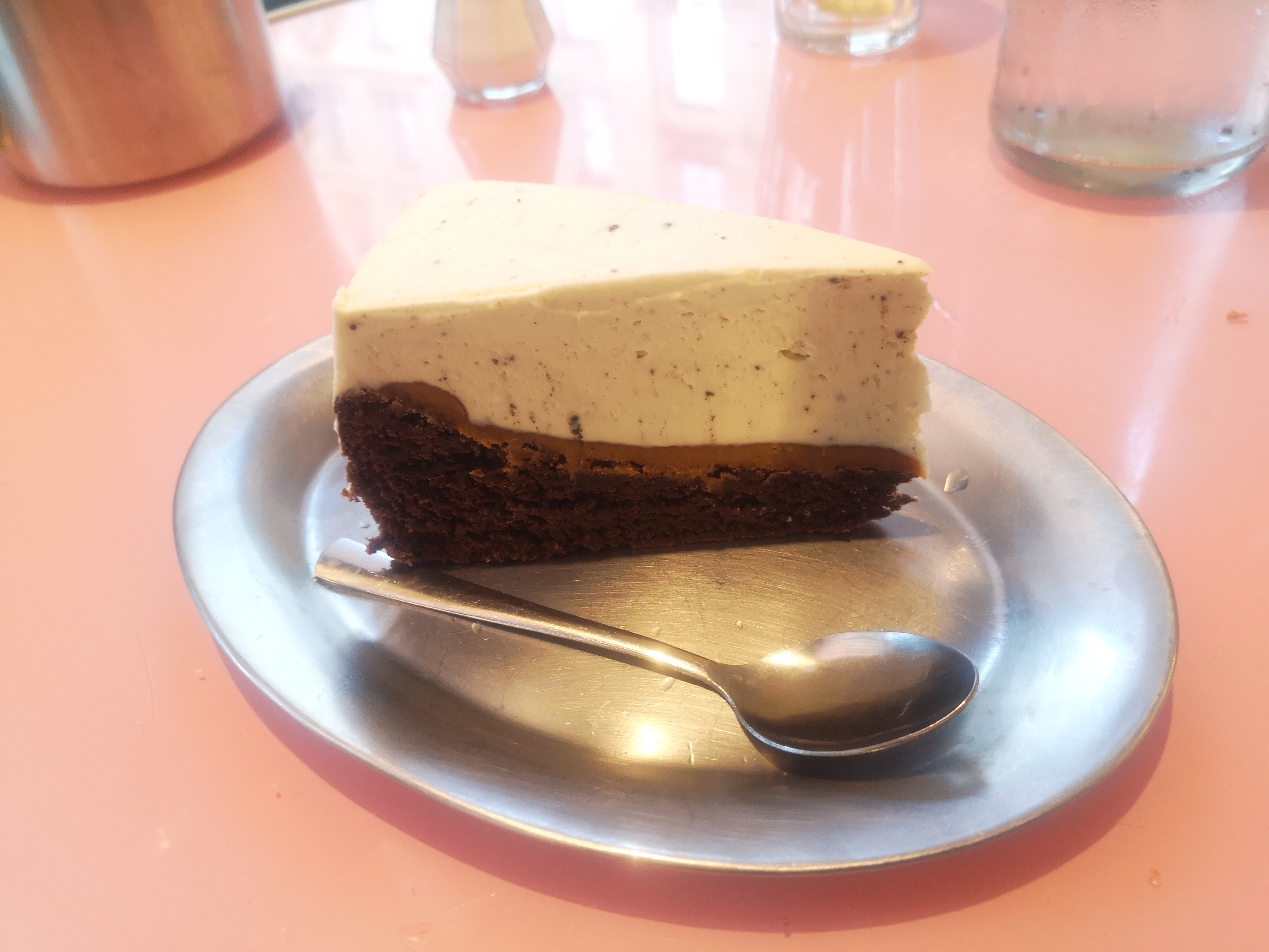 J'aime beaucoup le burger au fromage, alors cette fois j'ai essayé un gâteau au fromage à emporter. C'était mal coupé et trop lourd, j'avais l'impression de manger un fromage entier. Et la tarte en dessous était si détrempée comme le fromage lui-même. Il y avait une sorte de vieux goût. Je ne devrais y acheter que des hamburgers... Les gâteaux sont moins chers et meilleurs si vous les achetez dans un café.