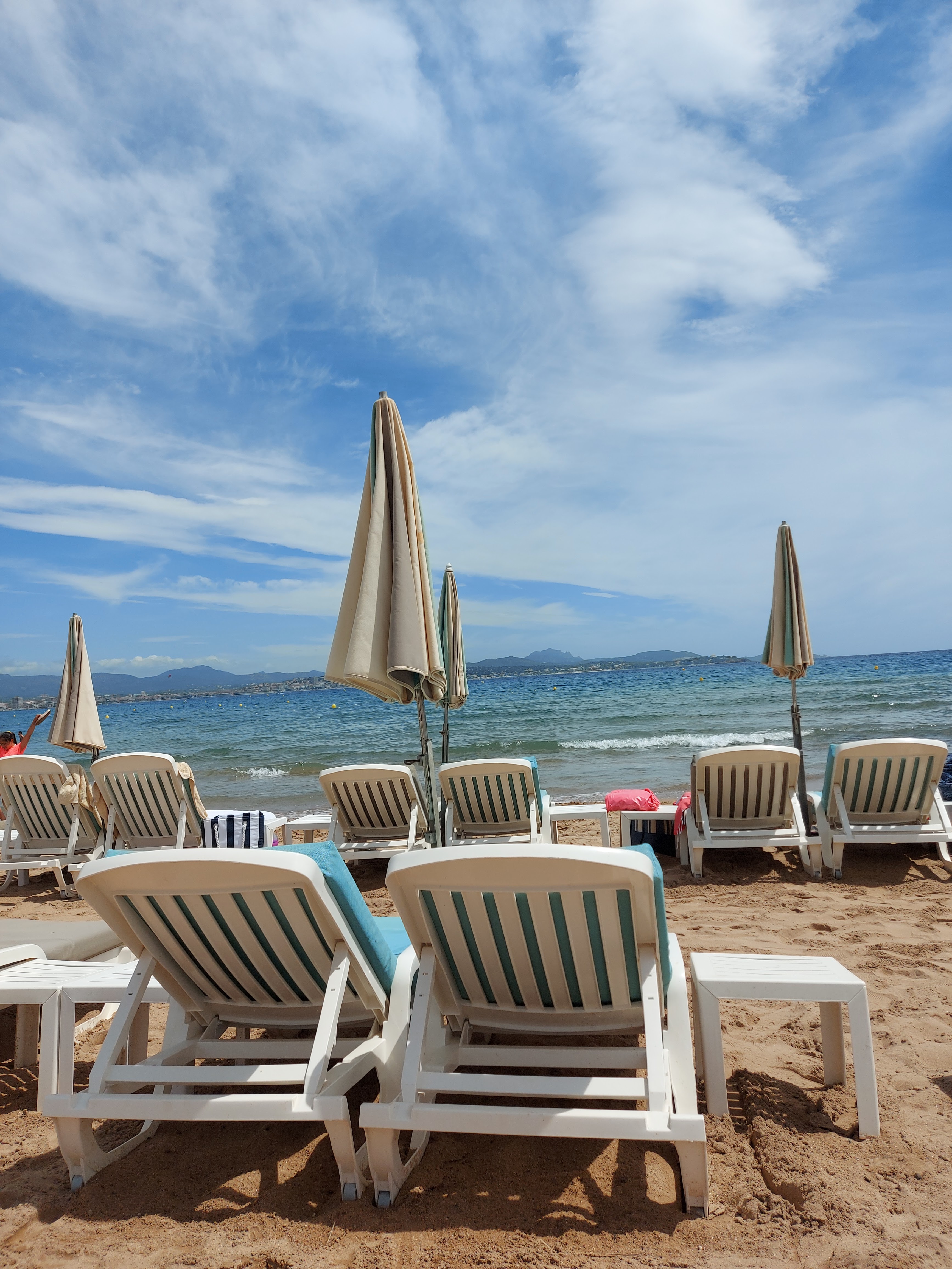 30€ le transat pour être au milieu de l’énorme plage publique de St Aygulf dans le brouhaha… quand on voit que c’est le même prix des autres plages plus au calme… Plagistes inexistants, sauf pour venir nous demander d’aller manger plus tôt que l’heure prévue sinon on risque de nous passer au service de 14h. Arrivées à table à 12h30, servies à 13h45 (au final on a quand même eu le deuxième service du coup…) Heureusement qu’on a bien mangé et que Hervé était présent avec son sourire et toute sa bonne volonté ! On vous parlait de plagistes inexistants: obligées de se mettre nous mêmes les parasols, de les planter et les ouvrir etc. Forcément le petit plagiste aux cheveux longs trop occupé a dragué affalé sur un transat, ou à discuter avec les filles un verre à la main… pas professionnel et nonchalant. Très déçues de la journée, nous ne reviendrons pas.