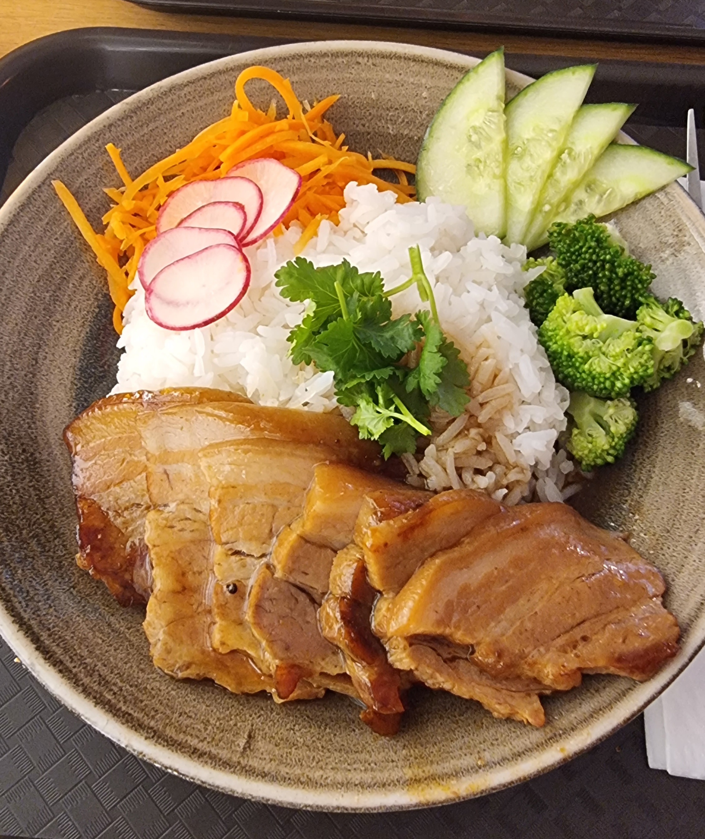 OCT 2023: Encore mieux sur place! On peut manger en salle ou dehors (2 tables uniquement). Il y a des bornes de commande (paiement cartes ou espèces). De l’eau citronnée en libre service (gratuit) et le staff toujours aussi accueillant et chaleureux. Le menu et les prix bien affichés (à l’extérieur comme à l’intérieur). Et la nourriture un véritable régal, c’est servis chaud, les légumes sont frais, le tout bien assaisonné. J’adore! Et c’est fait maison! Au top! Je recommande. AOUT 2023: Avec des plats frais et goûteux, rien de mieux pour affronter l’été. Surtout quand c’est préparé rapidement et à prix abordables. Et ils sont ouverts le dimanche! J’ai téléphoné pour prendre à emporter banhmi et guao bao) et la personne a été très sympathique et aimable. Ma commande a été préparée en moins de 20min. L’endroit est propre et décoré avec goût, je resterai sur place la prochaine fois. Attention les prix ne sont pas à jour sur le site (gua bao 3,90€ vs 4,50€)