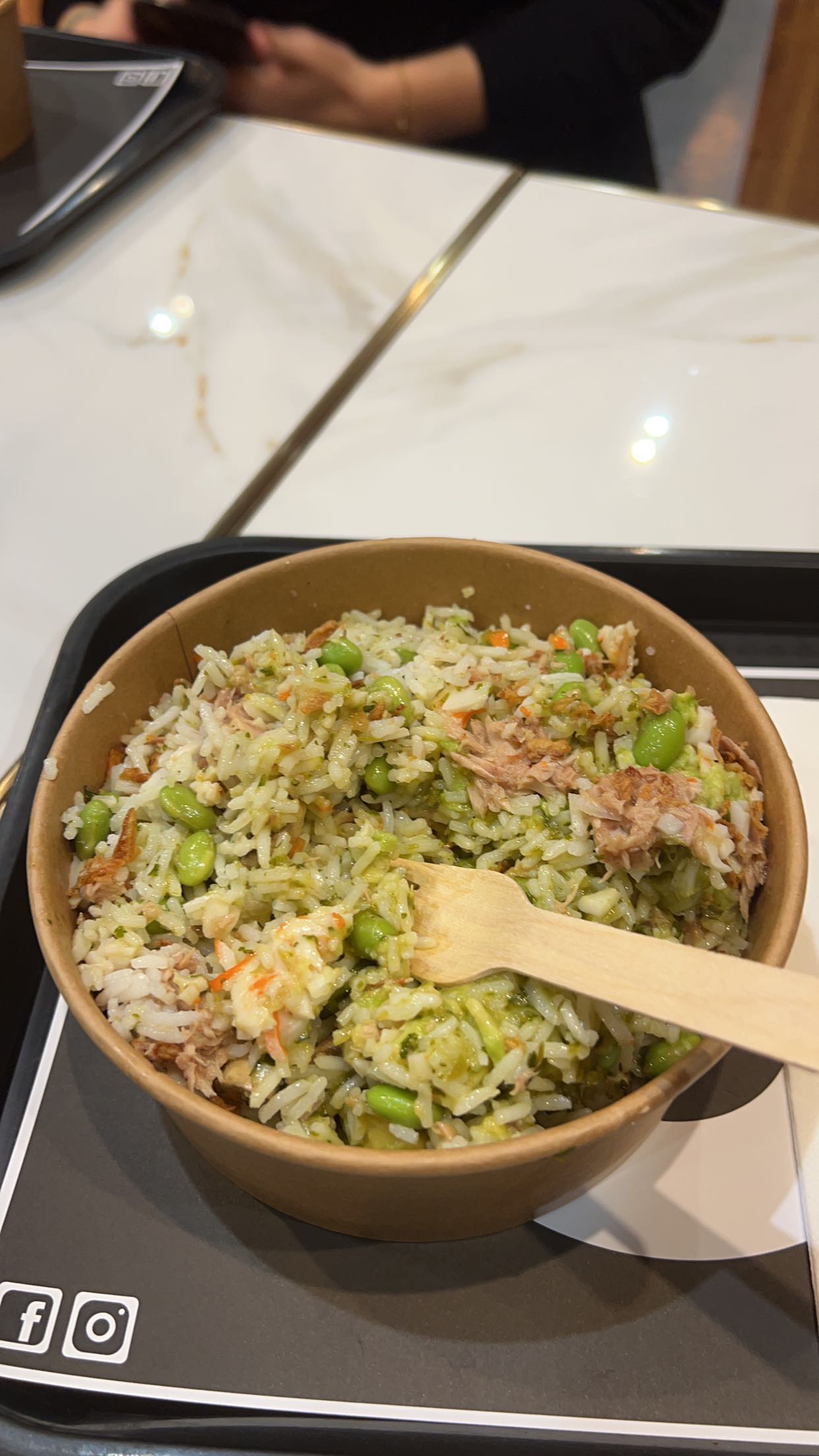Les salades (riz et boulgour pour nous) sont plutôt bonnes bien qu'assez vides de compositions, de topping et de sauce pour leur prix. Cependant, les agents distraits (bien que souriants et agréable) et la caissière (assez désagréable pour sa part) sur son portable qui met du temps à répondre à chaque parole, c'est un peu dommage.