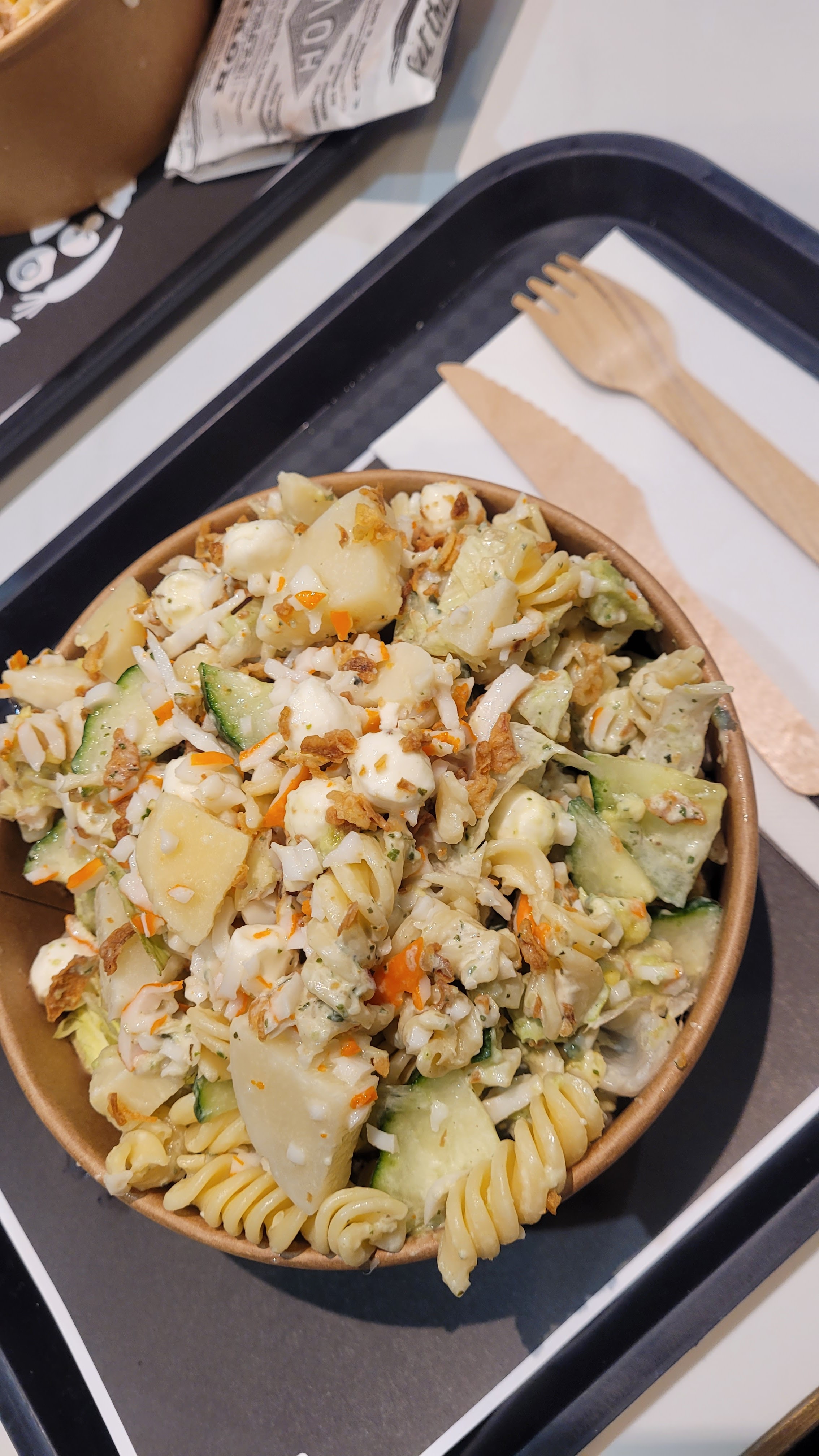 Découverte de ce concept par hasard. Large choix. Salade de pâtes copieuse et délicieuse! A tester sans hésiter!!