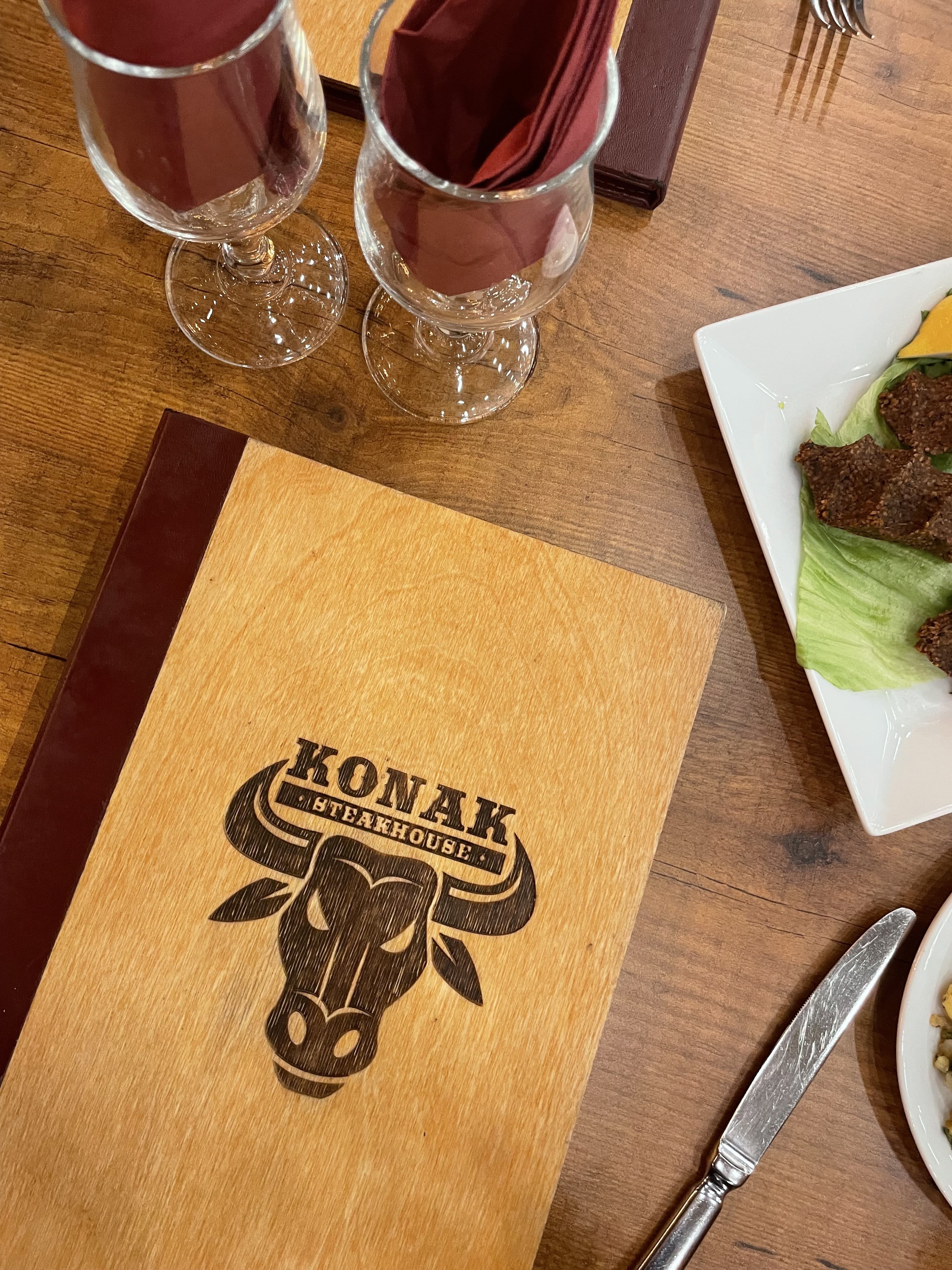 Une dé-cep-tion !! Avant de me rendre dans ce restaurant, je m’étais penché sur les avis que laissaient les personnes. Je trouvais que sur les dernières semaines, beaucoup d’avis très négatifs fleurissaient. Malheureusement, ça en fera un de plus parmi eux. Une déception, du début jusqu’à la fin. Service proposé par le personnel : 0 Service très lent, sont très vite débordés, certains serveurs manquent de tact et de professionnalisme, aucun sens du service, très mauvais accueil client, ils vous pressent pour commander alors que vous n’avez toujours pas vu la carte (une carte distribuée à notre table pour 5 personnes) Carte : il y a du choix avec les entrées, salades, pizzas et plats principaux. En revanche, très regrettable d’avoir si peu de choix en dessert. Plats : aïe aïe aïe … que c’est triste. Les plats ne vous transportent pas du tout jusqu’en Turquie. Les plats manquent de saveurs, de goûts et d’authenticité. Les plats vous parviennent froids. Non mais .. froids ! À quel moment demandons-nous des plats froids ? Que ça soit, le filet de bœuf, le houmous, le lahmacun, la pizza ou encore la brochette de poulet .. très difficile de trouver des points positifs ! Rapport qualité/prix : très médiocre. Comptez 30 minutes avant de recevoir votre commande. Compte 15 minutes avant de recevoir votre dessert. Faudra revoir la copie @konaksteakhouse. Si vous comptez perdre des clients, continuez ainsi.