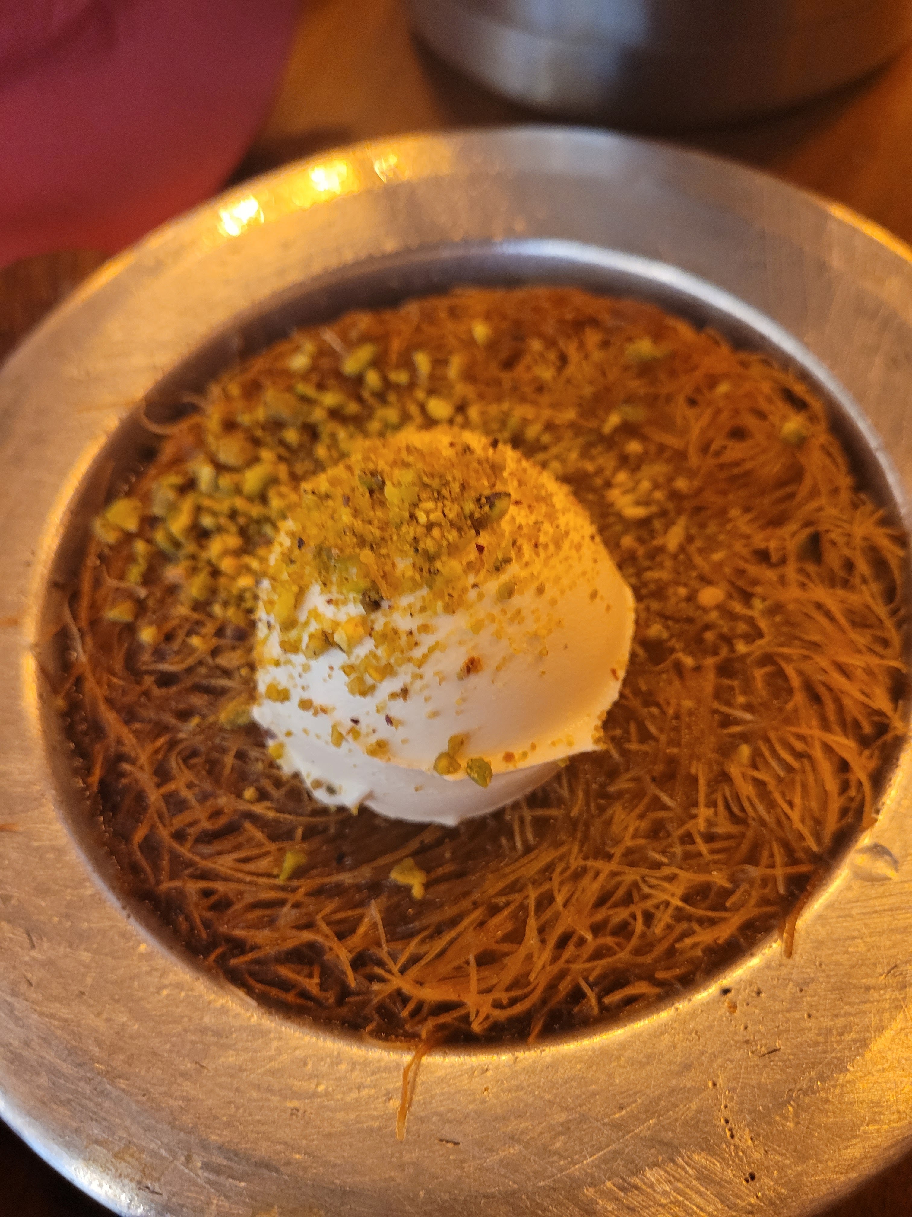 Accueil chaleureux MAIS la viande était élastique et les entrées sans saveurs... Le kunefe était très bon heureusement d'ailleurs ça a rattrapé le plat immangeable qu'ils m'ont servis. De plus en plein hiver ce n'était même pas chauffé, on a eu froid toute la soirée c'est inadmissible. On me l'avait recommandé mais j'ai été très déçue.