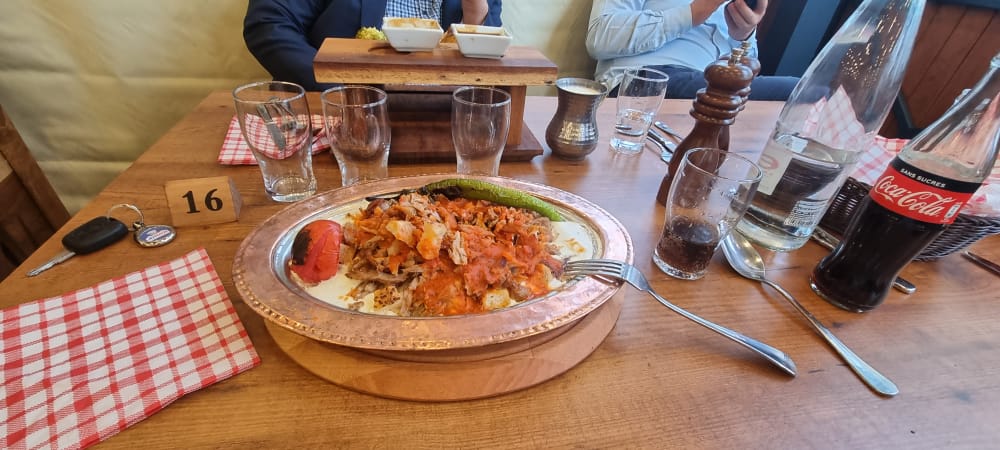 Très beau restaurant la déco est sympa on a vraiment l'impression d'être en ailleurs et le personnel agréable 👍 Mais malheureusement ça ne fais pas tout dans un restaurant comme celui ci la qualité est très importantes surtout au prix des plats..!!!! à part l'entrée et le pide qui était TRÈS TRÈS BON👌 le plat en revanche assiettes Kebab la viande était sèche grasse et pas de goût..C'est vraiment dommage nous n'avons pas fini notre assiette.