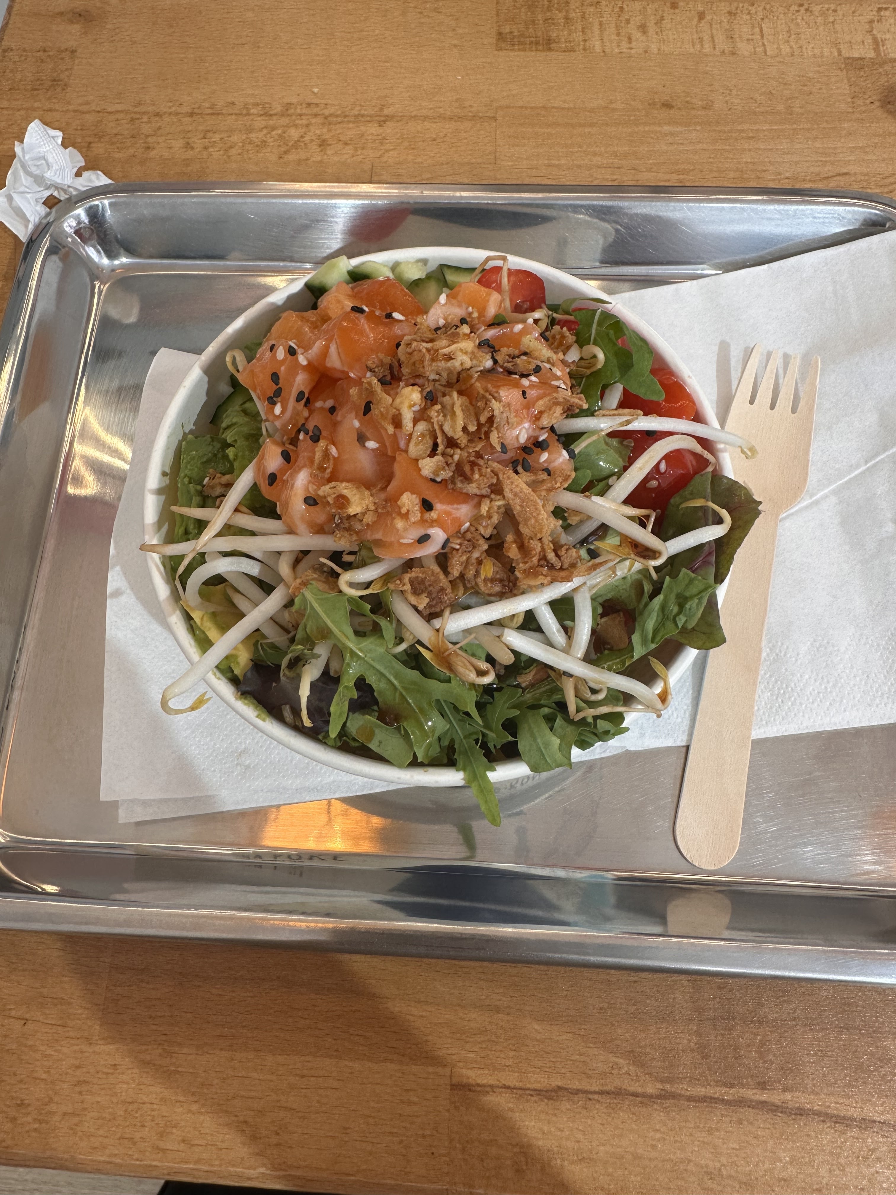 Bon service, les ingrédients sont de qualité. J'ai pris un poke bowl personnalisé et je me suis régalé ! Je recommande.