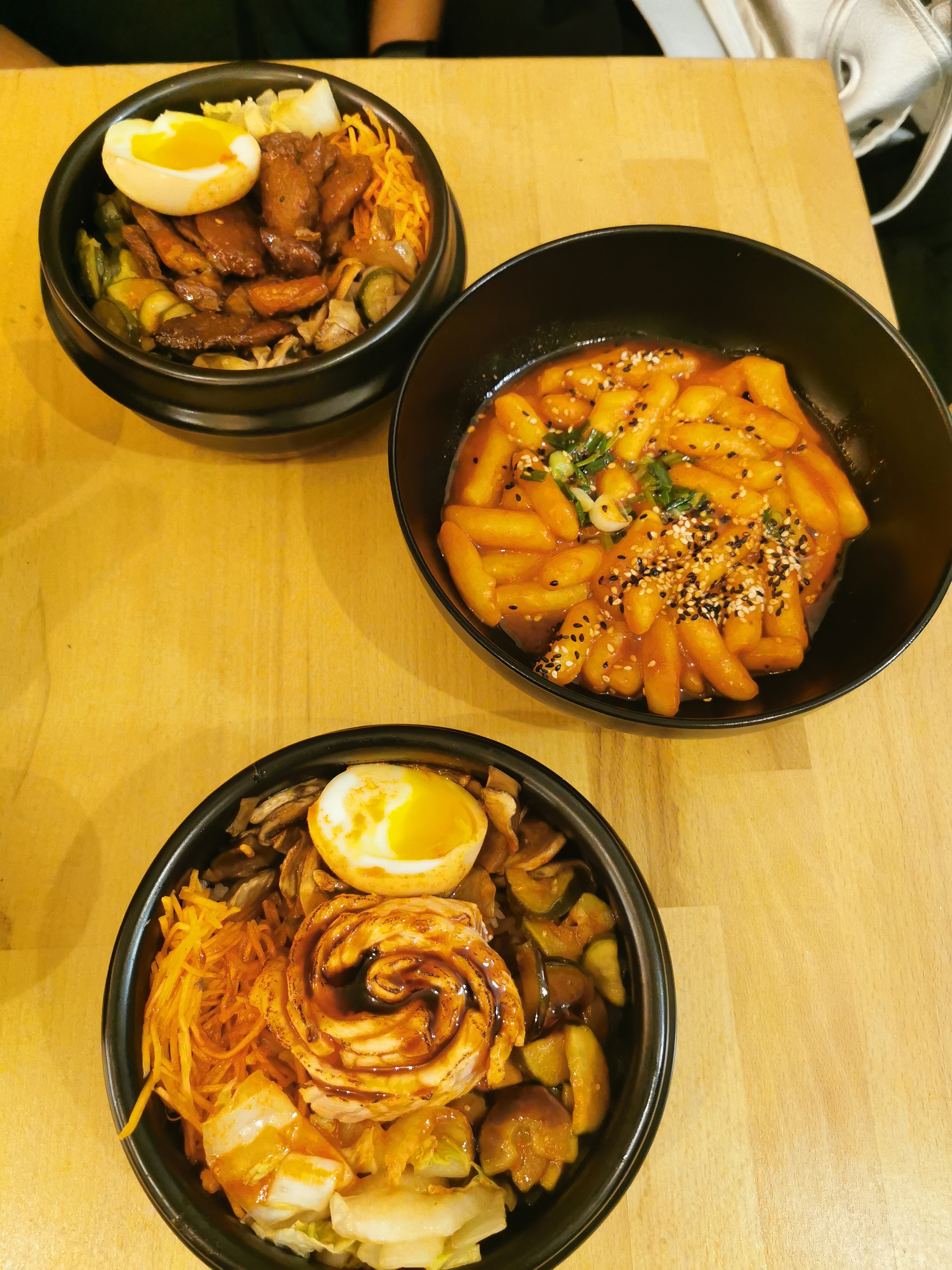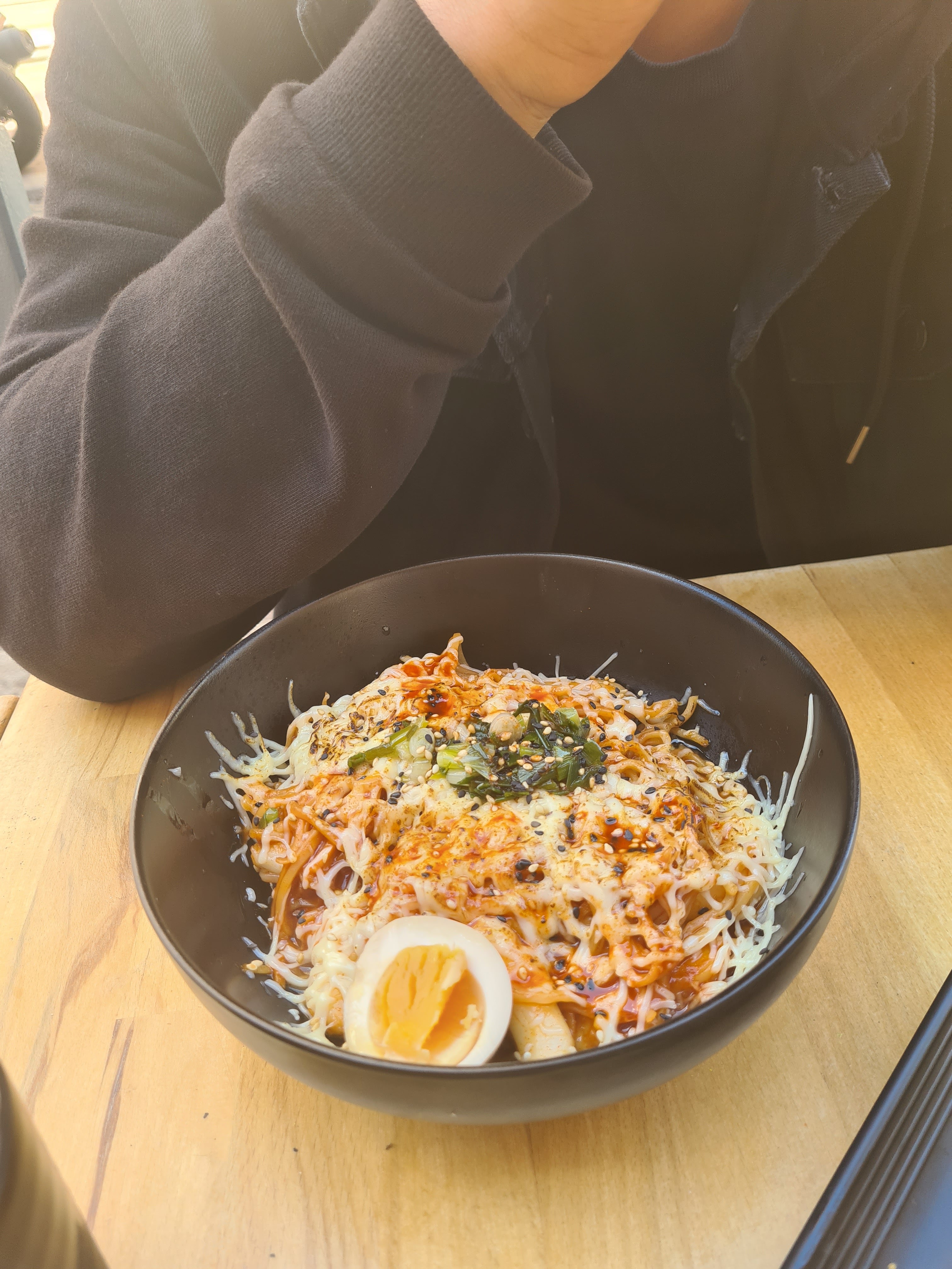 Personnel accueillant ! Toutefois, je n’ai quasi pas touché le tteokbokki, les gâteaux de riz étaient beaucoup trop cuits et la sauce avec n’était pas très bonne. Pour le beef bap, la viande, l’œuf et la quasi-totalité des légumes étaient bons. Par contre, le riz avait un goût de cramé par endroit et les pousses de soja n’était pas très bonnes également. Je suis assez déçue de ce restaurant qui est pourtant noté 4,8. C’était la première fois que le faisait et je ne pense pas que j’y retournerai. Cela est bien dommage, j’ai dû venir au mauvais moment.