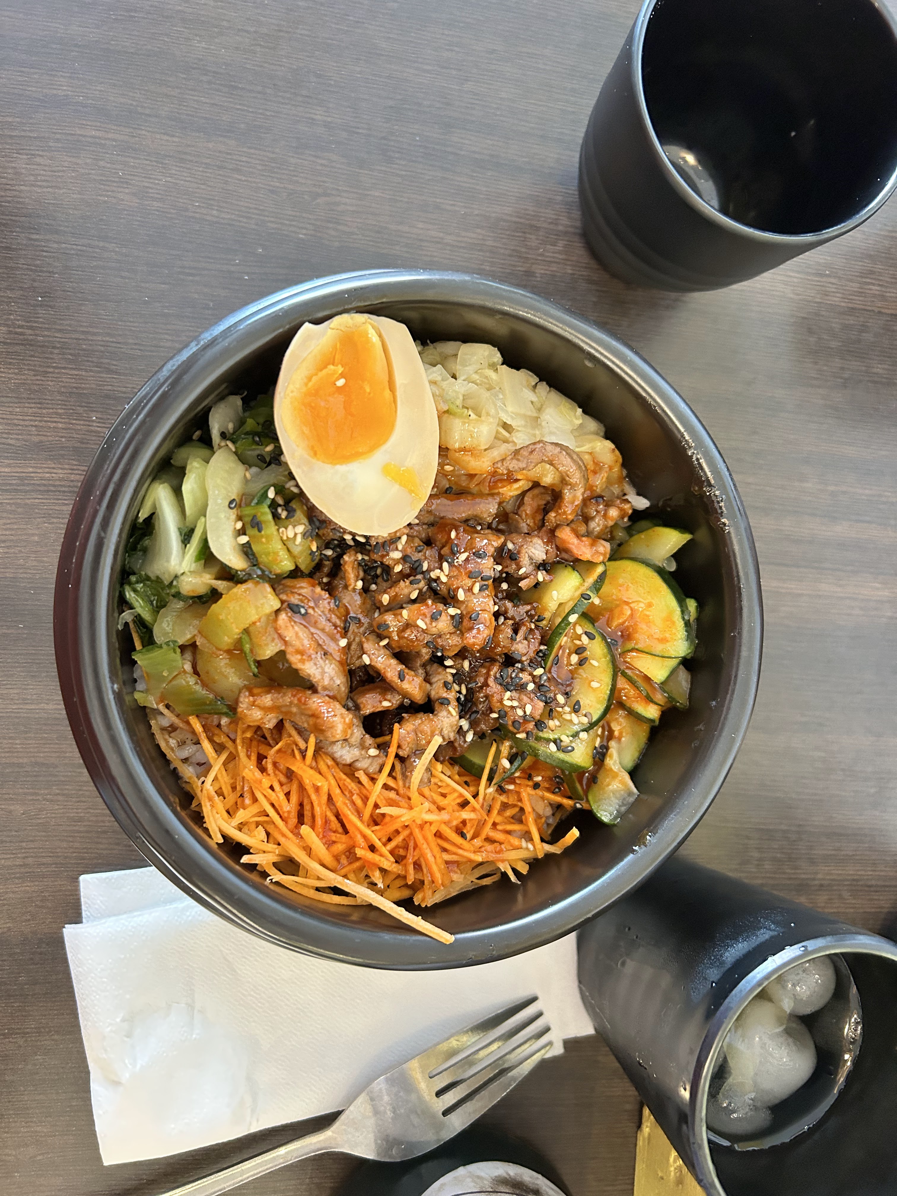 Le bibimbap au bœuf est exquis, un des meilleurs que j'ai pu goûter. De plus, les portions sont généreuses et l'équipe vraiment sympathique, bravo pour votre travail ! Au plaisir de tester les autres plats au menu