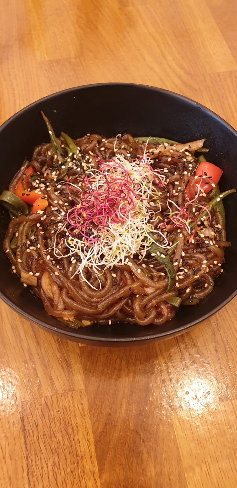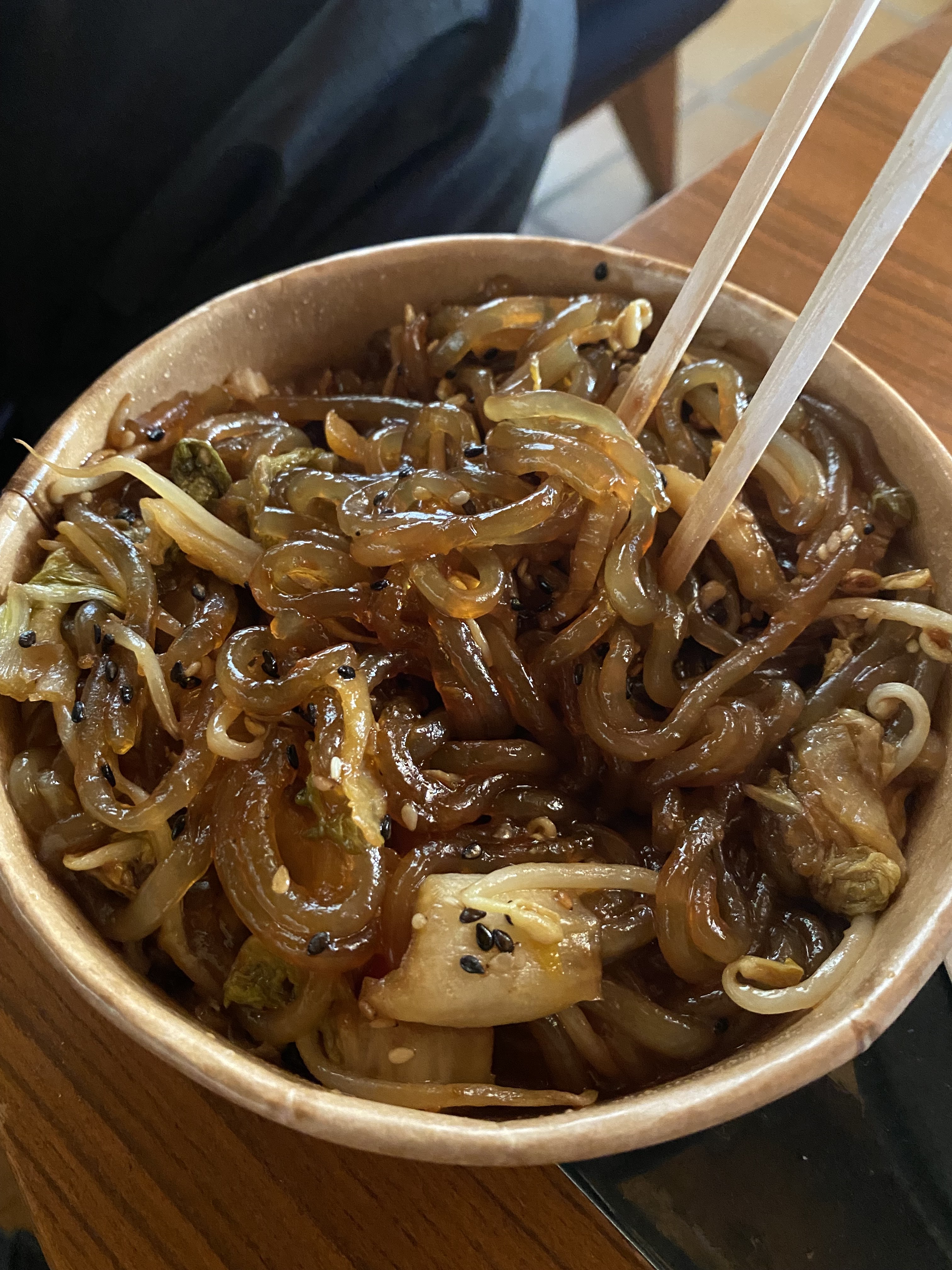 Personnels très sympas. Super bon street food coréen. Chicken bap et Kimchi fait maison étaient délicieux. J'étais un peu déçue par la quantité et la manque de lègumes ( courgettes et carottes) dans le Japche.