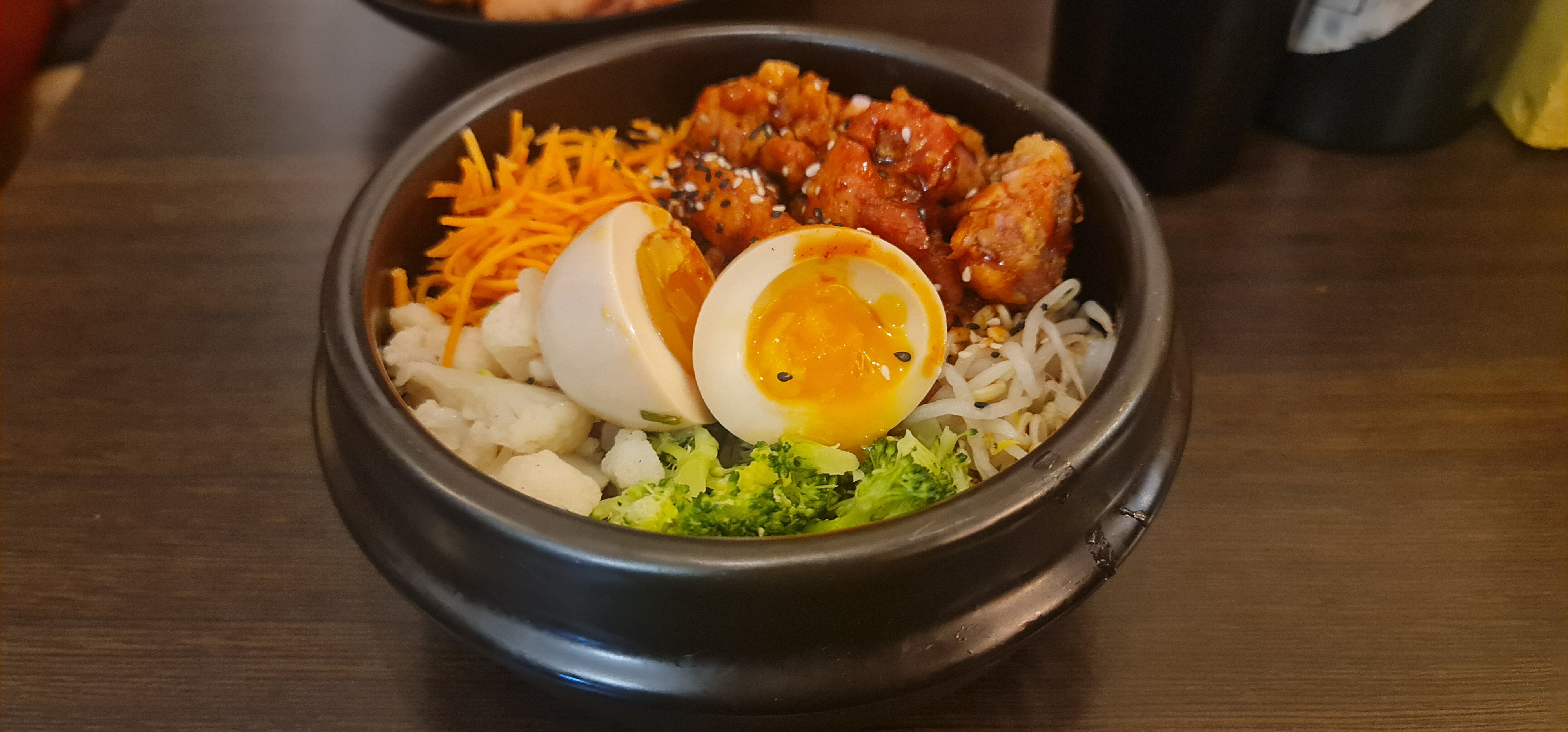 J'ai essayé un bibimbap chicken bap épicé : je l'ai trouvé délicieux. Malgré le fait que la pièce est assez petite , j'ai apprécié le lieu. Le serveur vous accueille bien , il vous demande si vous avez besoin de regarder la carte , souriant et vous demande si tout se passe bien. Le repas m'a bien rempli le ventre et c'est très épicé. Si vous adorez la nourriture épicé , je vous le recommande