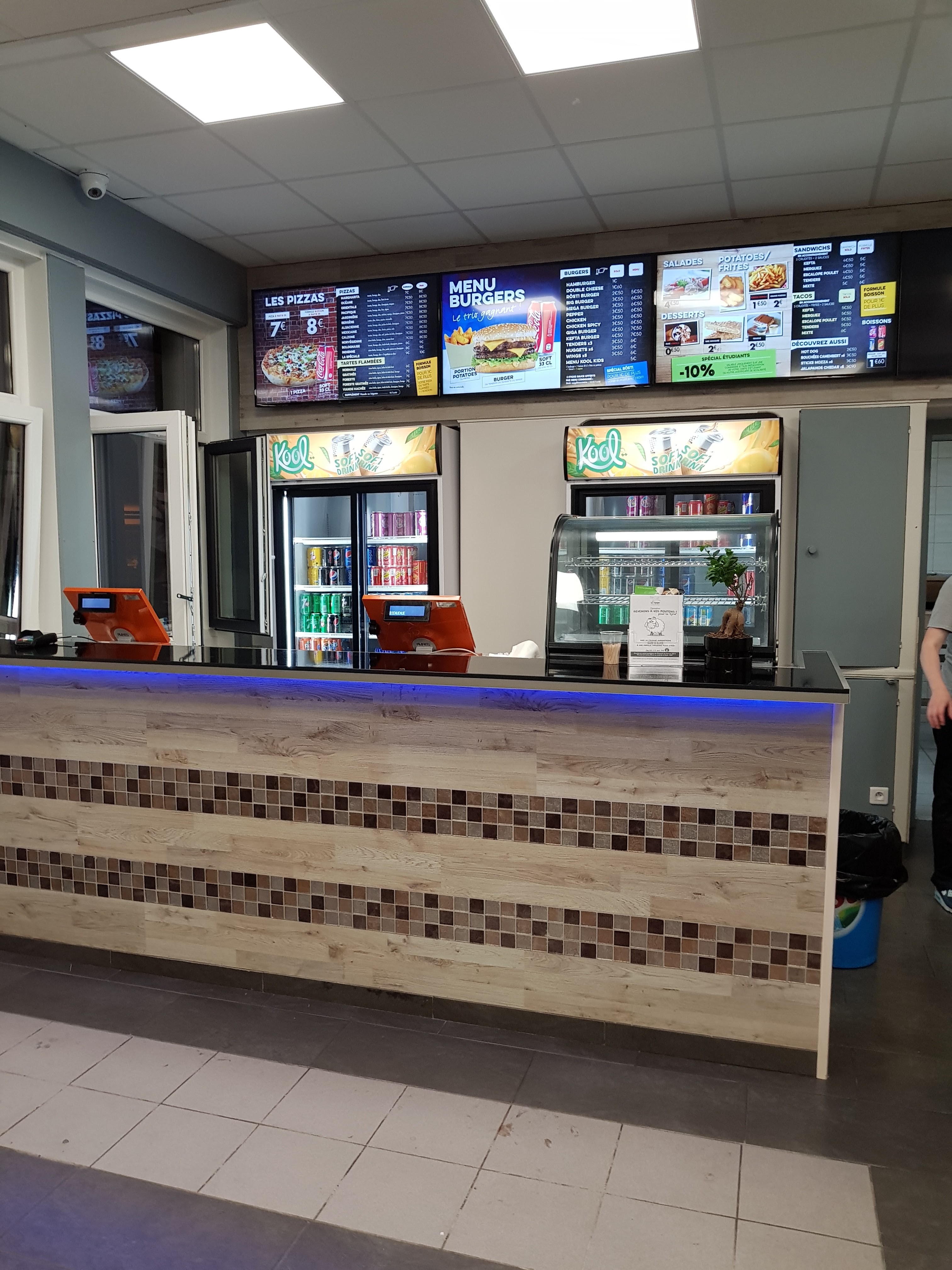 Correct pour le prix. Le majeur problème du Kool étant les cuissons. Souvent trop gras ou pas assez cuit. Trop salé aussi... tout de même le fast food de base à la montagne verte qui dépanne une sortie qui tourne mal ou une faim imprévu. Il y a toujours beaucoup de monde. Si vous voulez de l'intimité passez votre chemin. Deux télés dans le restaurant cela peut être sympas si vous êtes fans de foot. Mention spécial pour leur tarte flambée qui n'est pas mal du tout .