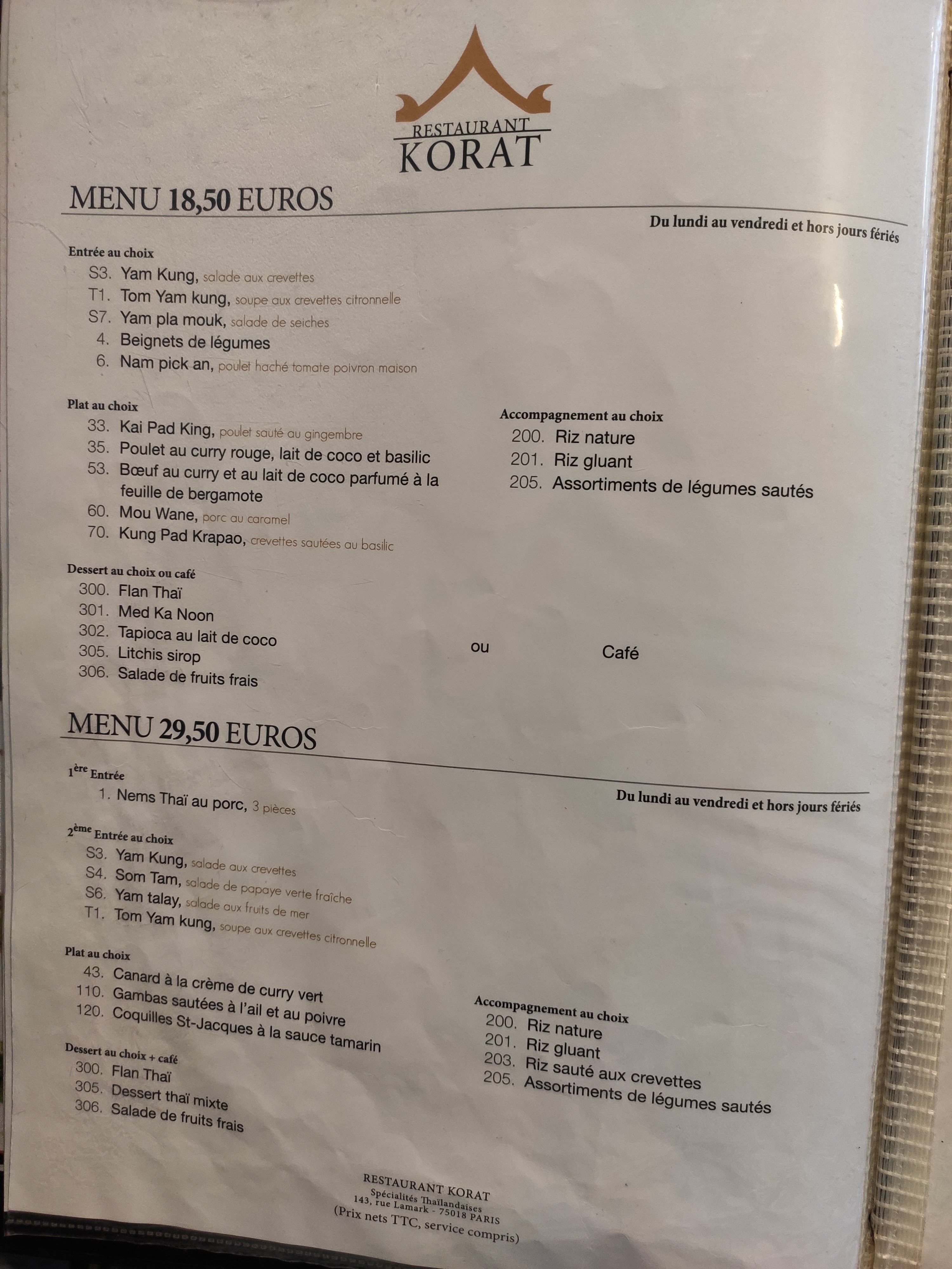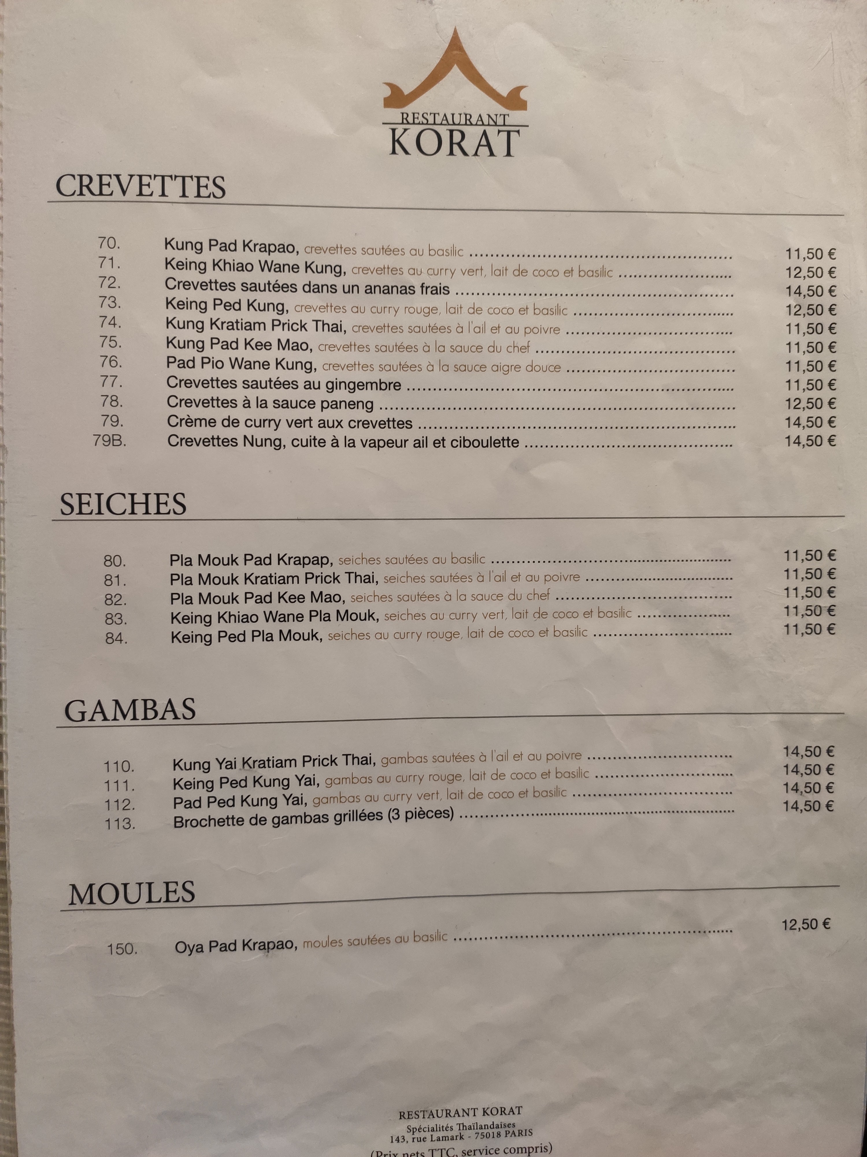 KORAT était notre restaurant thaïlandais préféré à Paris car nous y retrouvions une grande variété de plats authentiques. Mais ça c'était avant le changement de propriétaire.