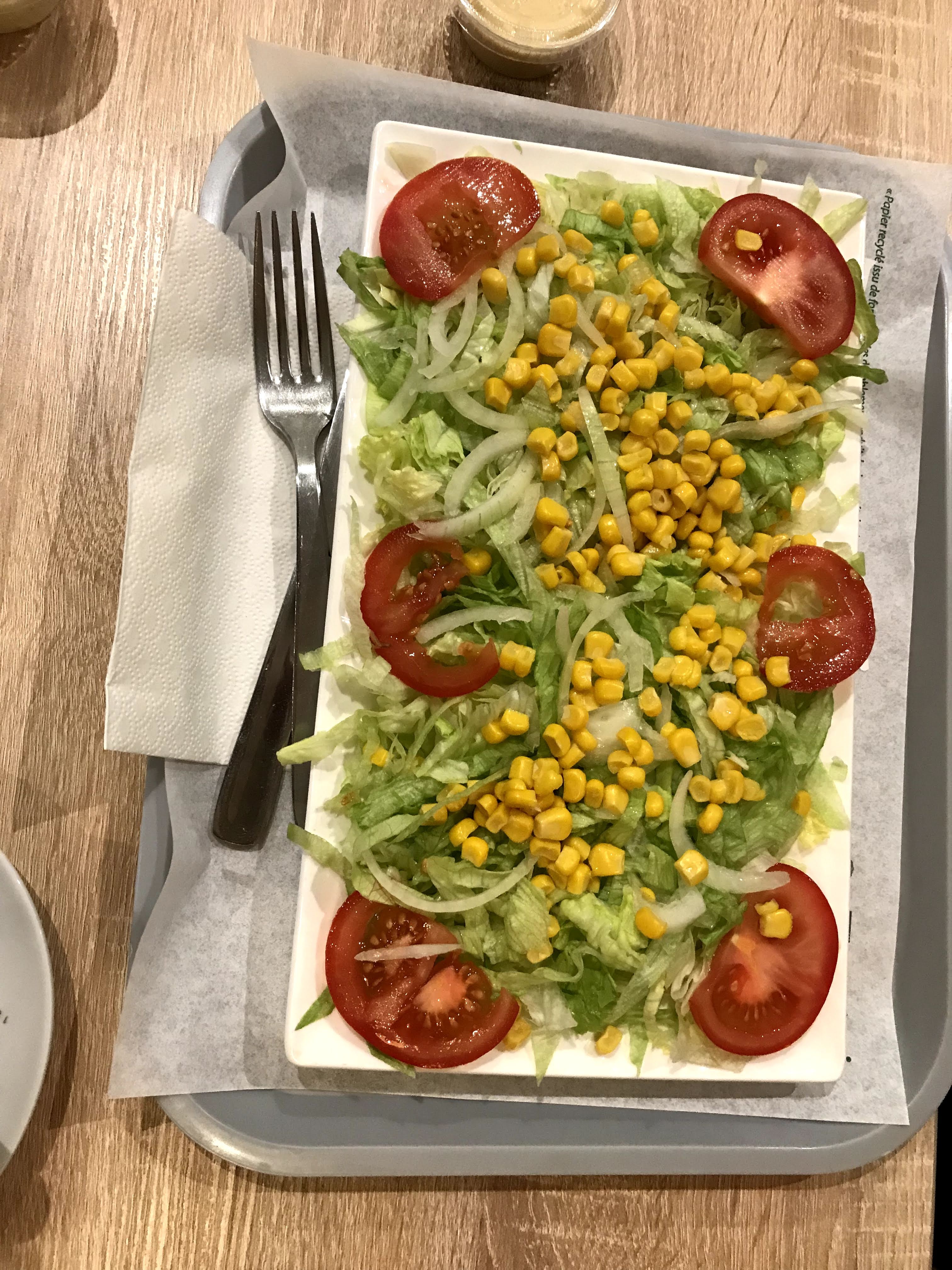 L'endroit parfait. Je ne pensais pas que c'était si bon et savoureux. Grande salade et sandwich végétarien, pas cher. Thé turc fort. Beaucoup d'espace, il y a une chambre d'enfants.