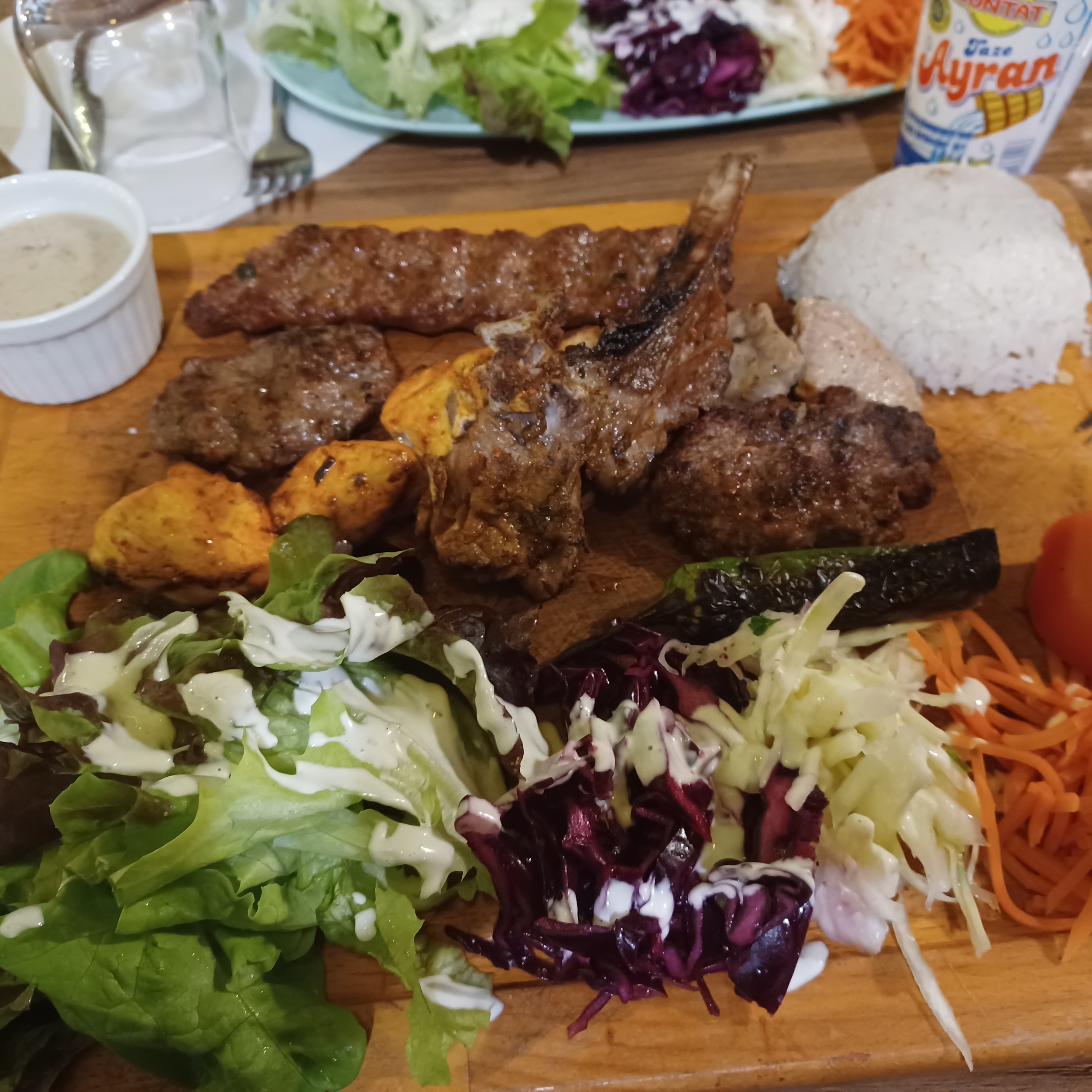 On c’est régalé , les repas étaient hyper bon (kuzu Ali nazik, kusbasili pide, begendi adana). Par contre Le service est à revoir ainsi que l’hygiène des wc est à revoir d’urgence.
