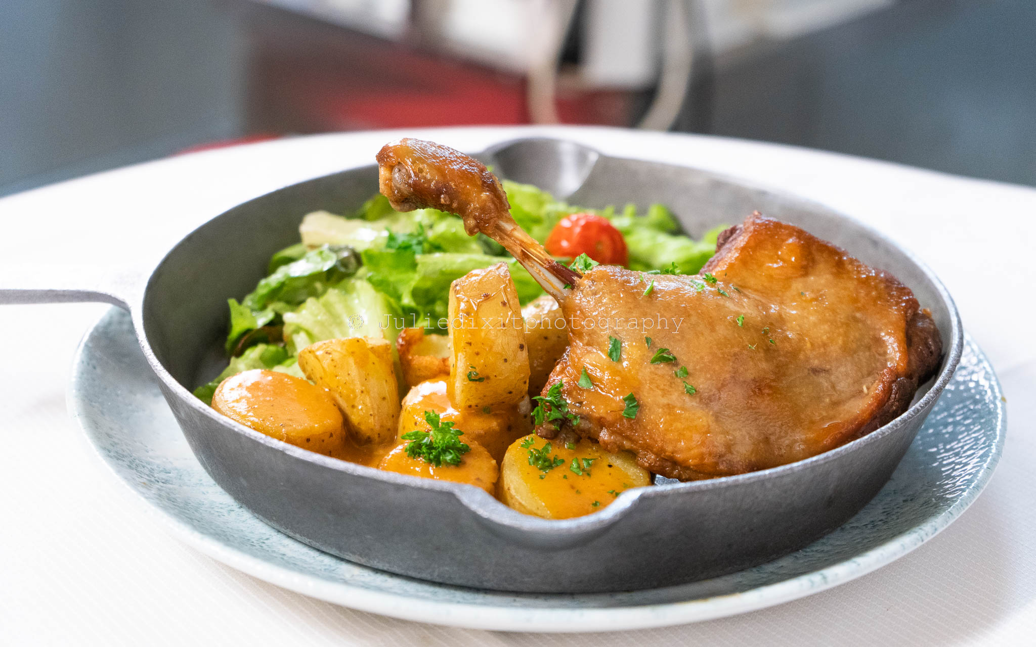 Première visite, un jeudi soir, beaucoup de monde, heureusement qu’on avait fait une réservation. La salle est très belle. Le service très bon et rapide. Même si je trouve l’ambiance un poil bruyante. Une belle carte avec des choix que j’ adore en général (confit de canard, foie gras, entrecôte et surtout de la picanha). J’ai testé le confit et ma femme le saumon cuit sur la peau. Très bon, rien a redire.