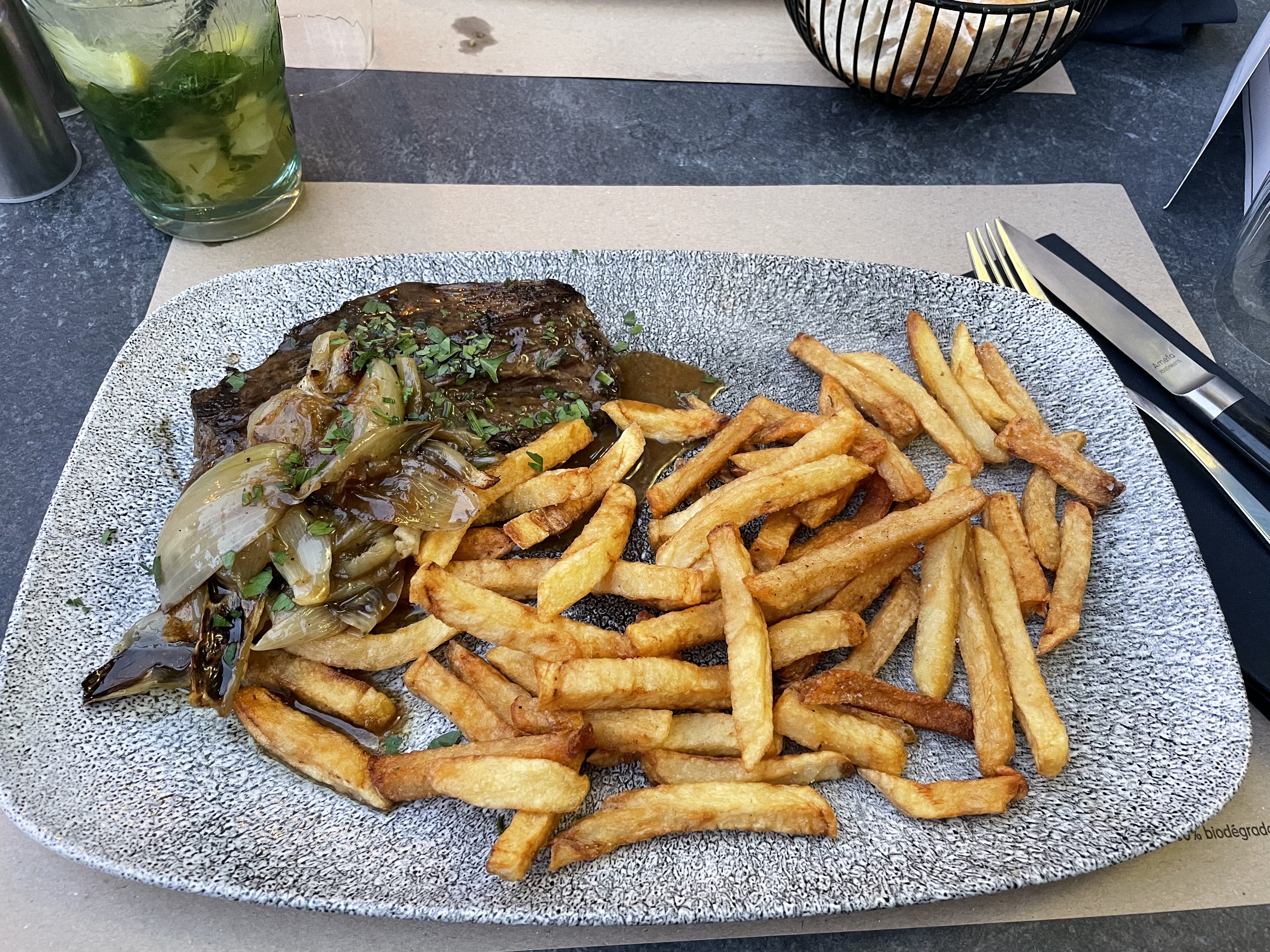 J'ai mangé une entrecôte et c'était délicieux. Le service était excellent et l'ambiance était vraiment bonne. Je le recommande!