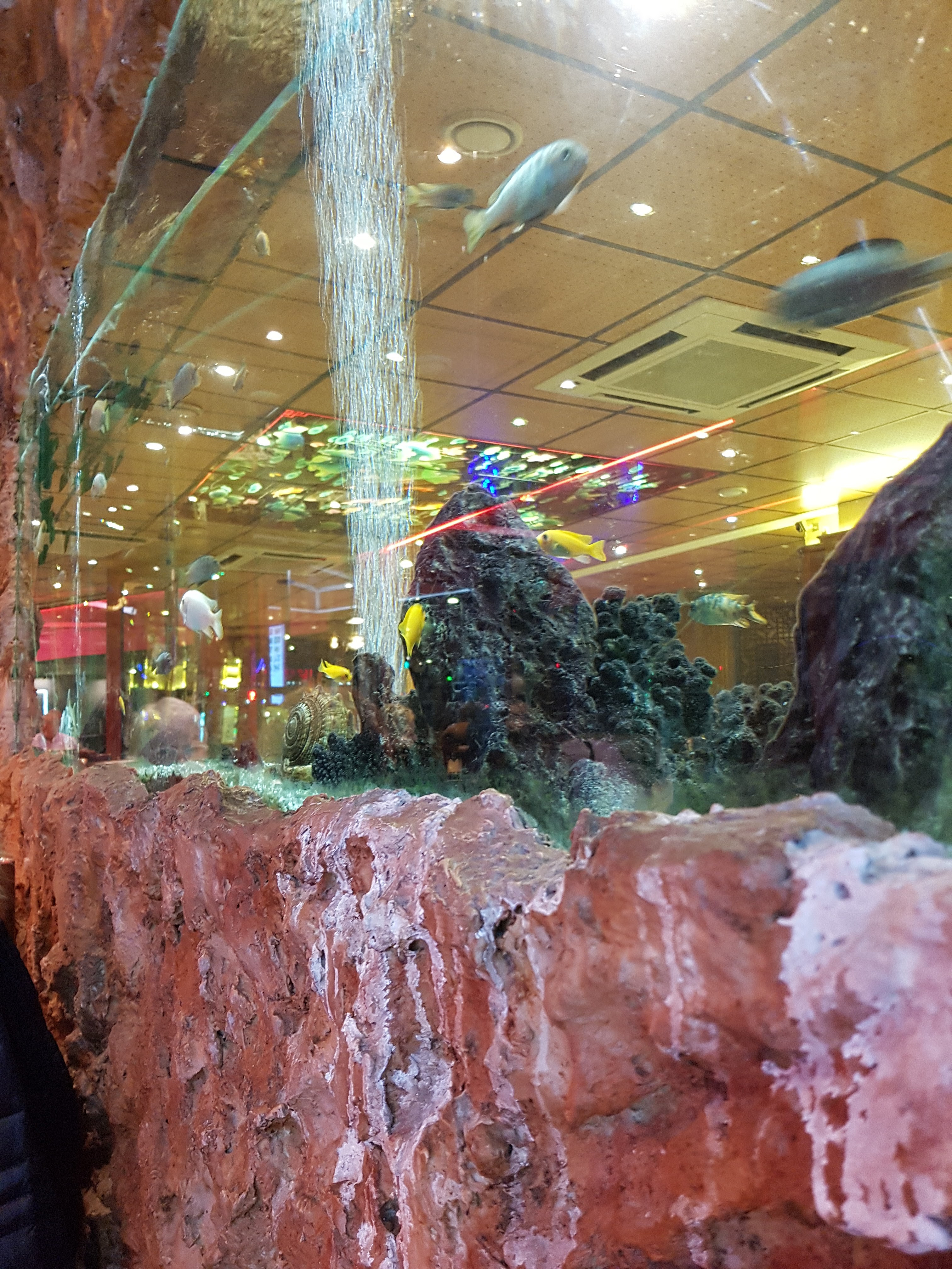 La décoration du restaurant est superbe, Le personnel est sympathique, la cuisine est très bonne et les prix sont raisonnable (menu). L'aquarium géant est superbe.