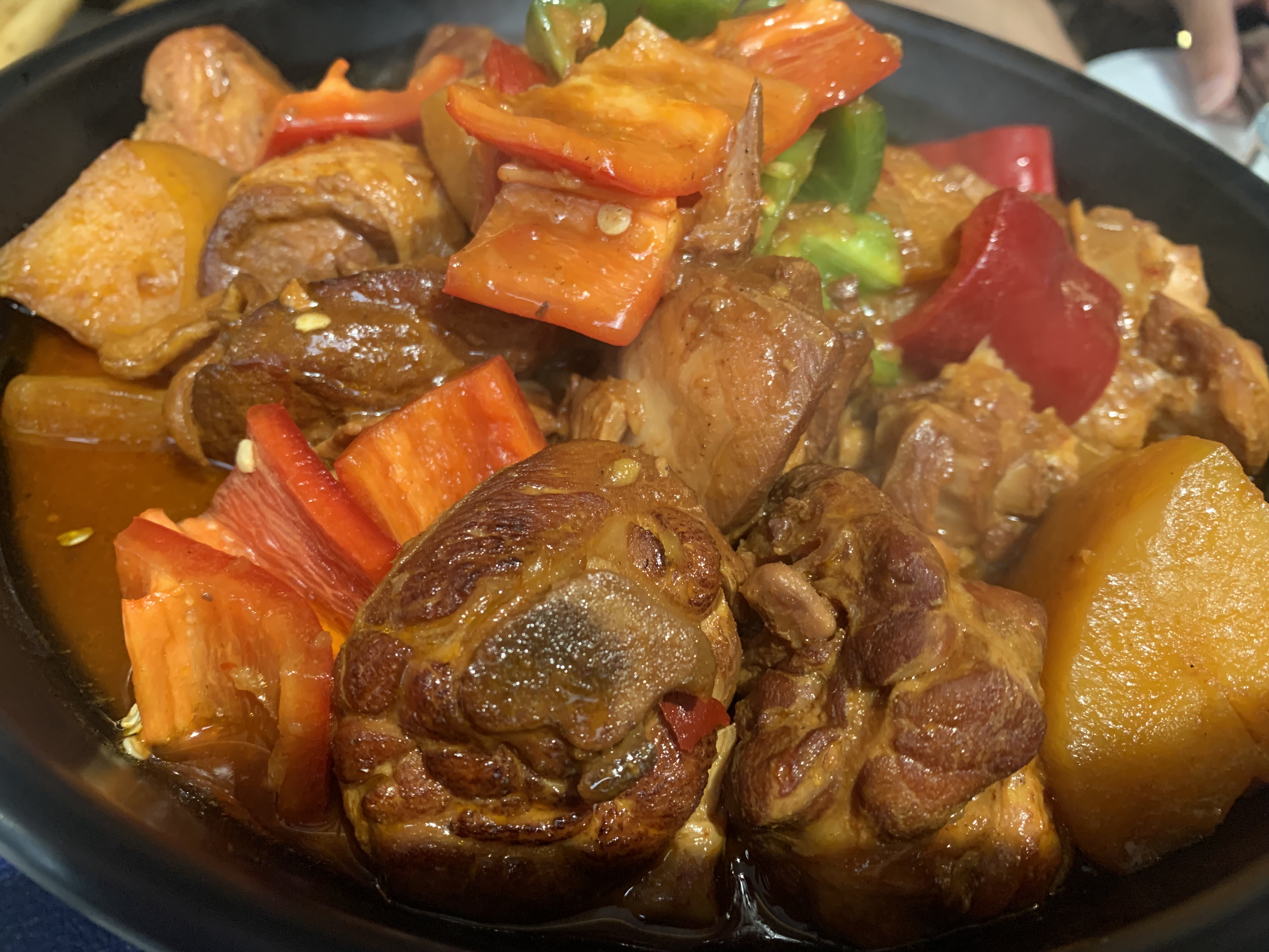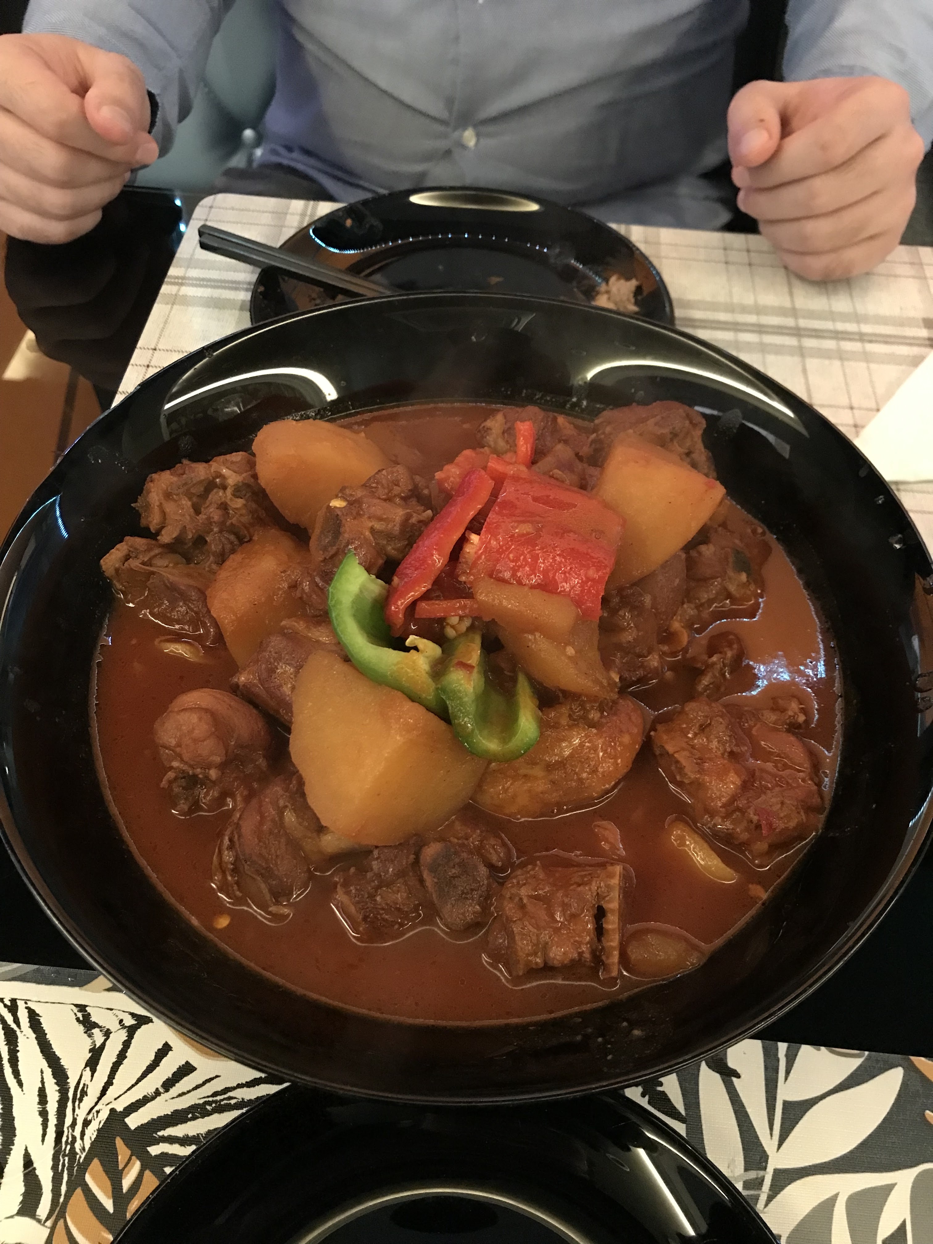 Nous sommes passés par hasard devant ce restaurant et sommes entrés pour essayer. Nous avons fini par être tellement satisfaits, les plats sont incroyablement bons !! La portion est tellement grosse, nous avons commandé le Da Pan ji (petite portion), des dumplings (6 pièces), 3 mouton shashlik et DingDing Chao Mian (nouilles frites), ils ne ressemblaient pas à beaucoup au menu mais il s'est avéré que nous commandé trop (3 personnes). Nous étions tellement rassasiés mais nous ne pouvions pas arrêter de manger. Comme nous souhaiterions avoir 4 estomacs comme des vaches pour manger tous les plats délicieux qui s'y trouvent !