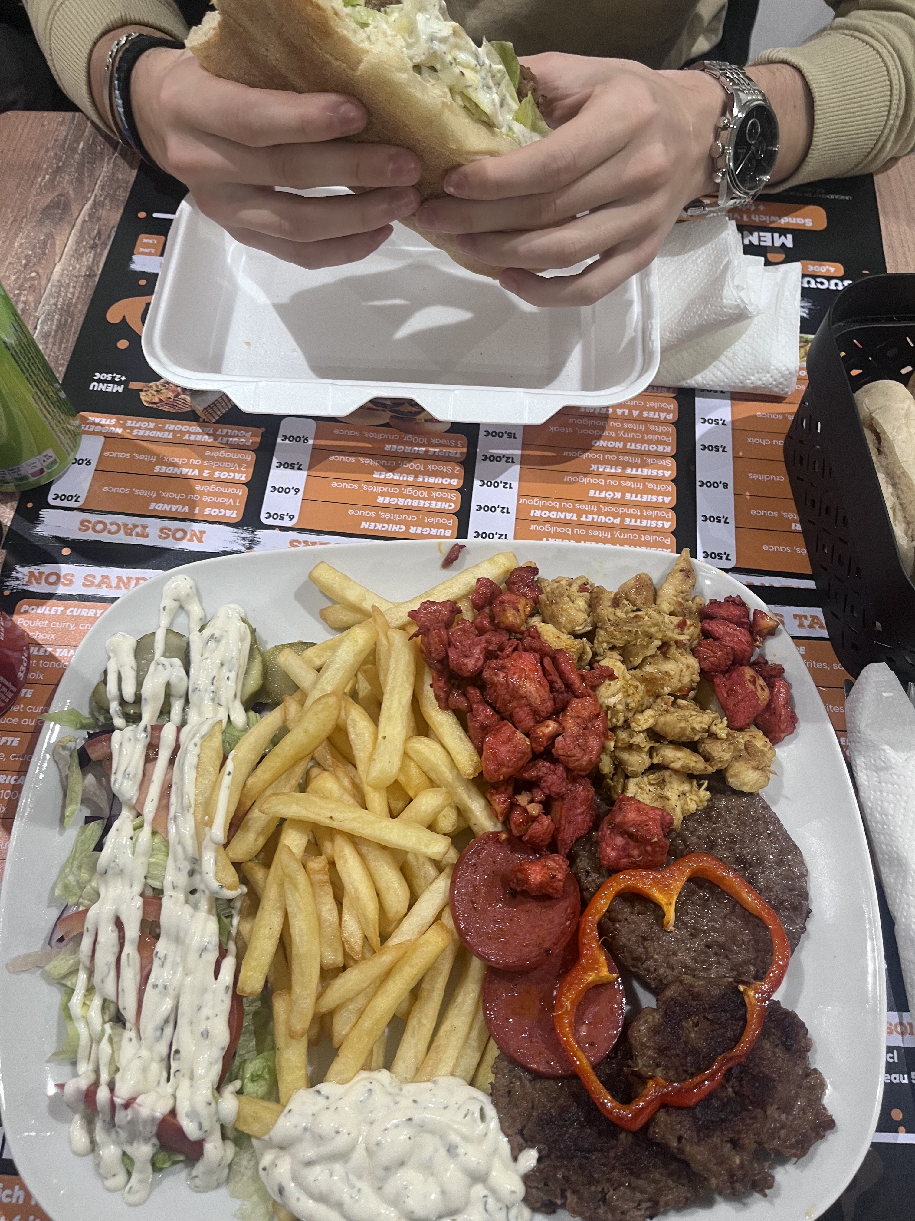 Dommage qu'il n'y a pas de doner et le pain pour les sandwich est pas terrible il es industriel il aurait du être fait maison Après un menu avec boisson à 10euro es correct