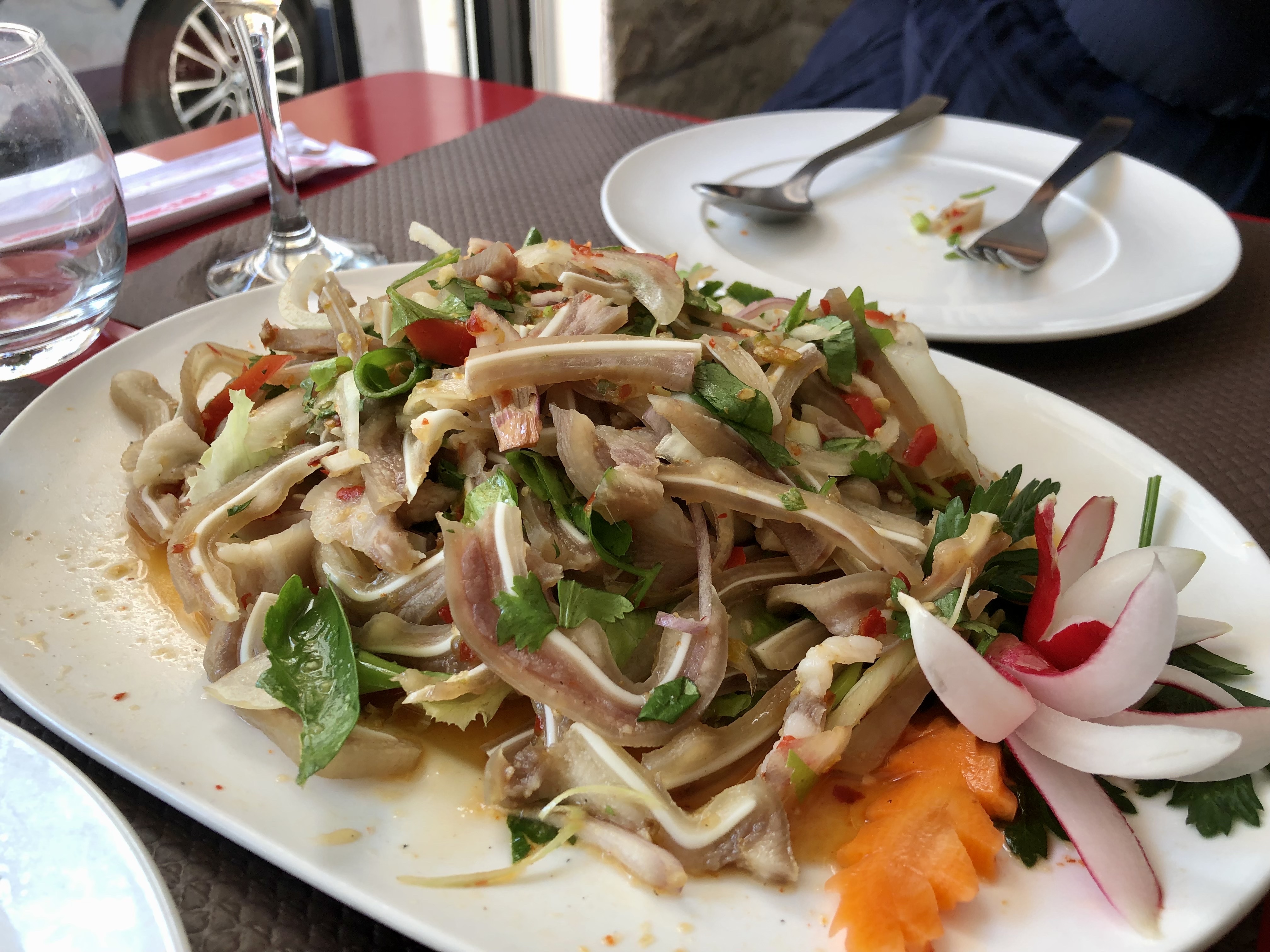 Pas un grand choix de plats sur leur carte de menu, ce qui n'est pas nécessairement une mauvaise chose car c'est le signe d'ingrédients de bonne qualité et de bon goût dans les plats qu'ils proposent et oh mon Dieu !!!! salade de vermicelles, laap de boeuf et salade de papaye. Putain, c'était bon ! C'est ce qui se rapproche le plus de la Thaïlande lorsque vous êtes à Nice. Si jamais vous vous sentez déprimé et demandez à Dieu quoi faire, ne soyez pas surpris s'il vous dit d'amener votre clochard à Kruathai et de vous offrir un peu de bonté. Vous ne le regretterez pas !