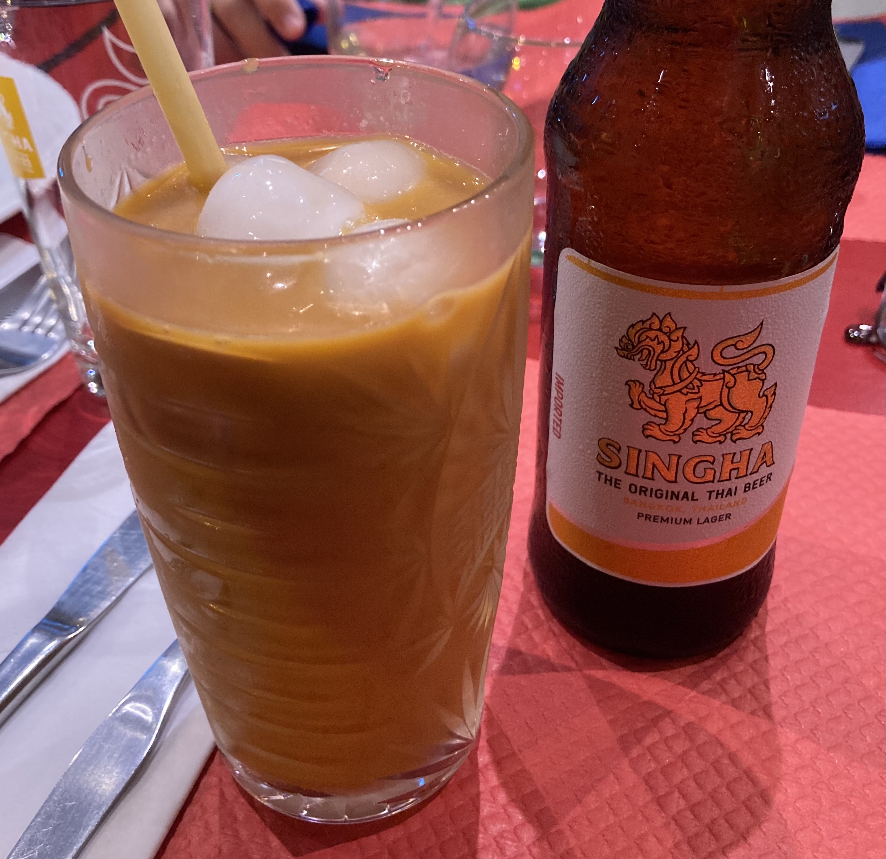Délicieuse cuisine thaïlandaise, thé thaïlandais rafraîchissant. Super service.