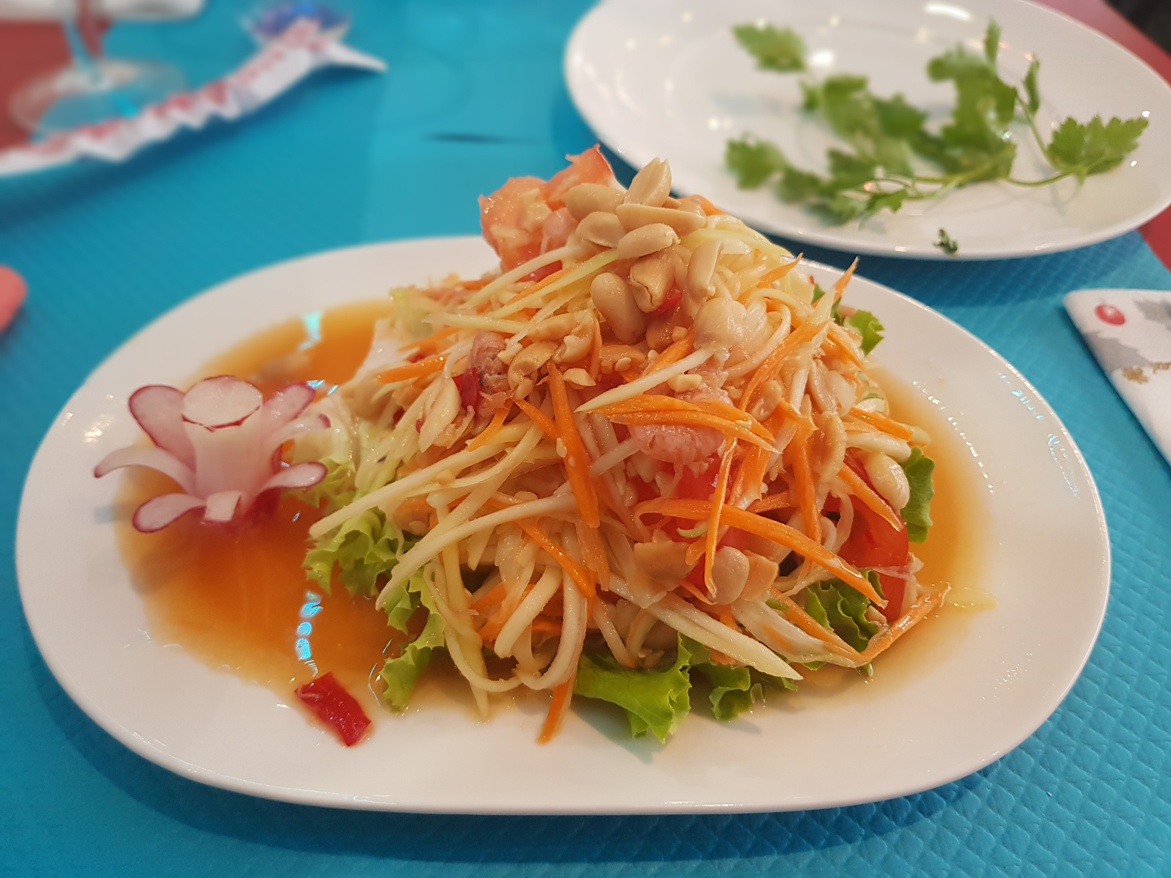 Excellente salade de papaye. Charmant vieil homme thaïlandais qui s'occupe des clients. Simple et authentique comme devrait l'être un restaurant thaïlandais. Des prix équitables