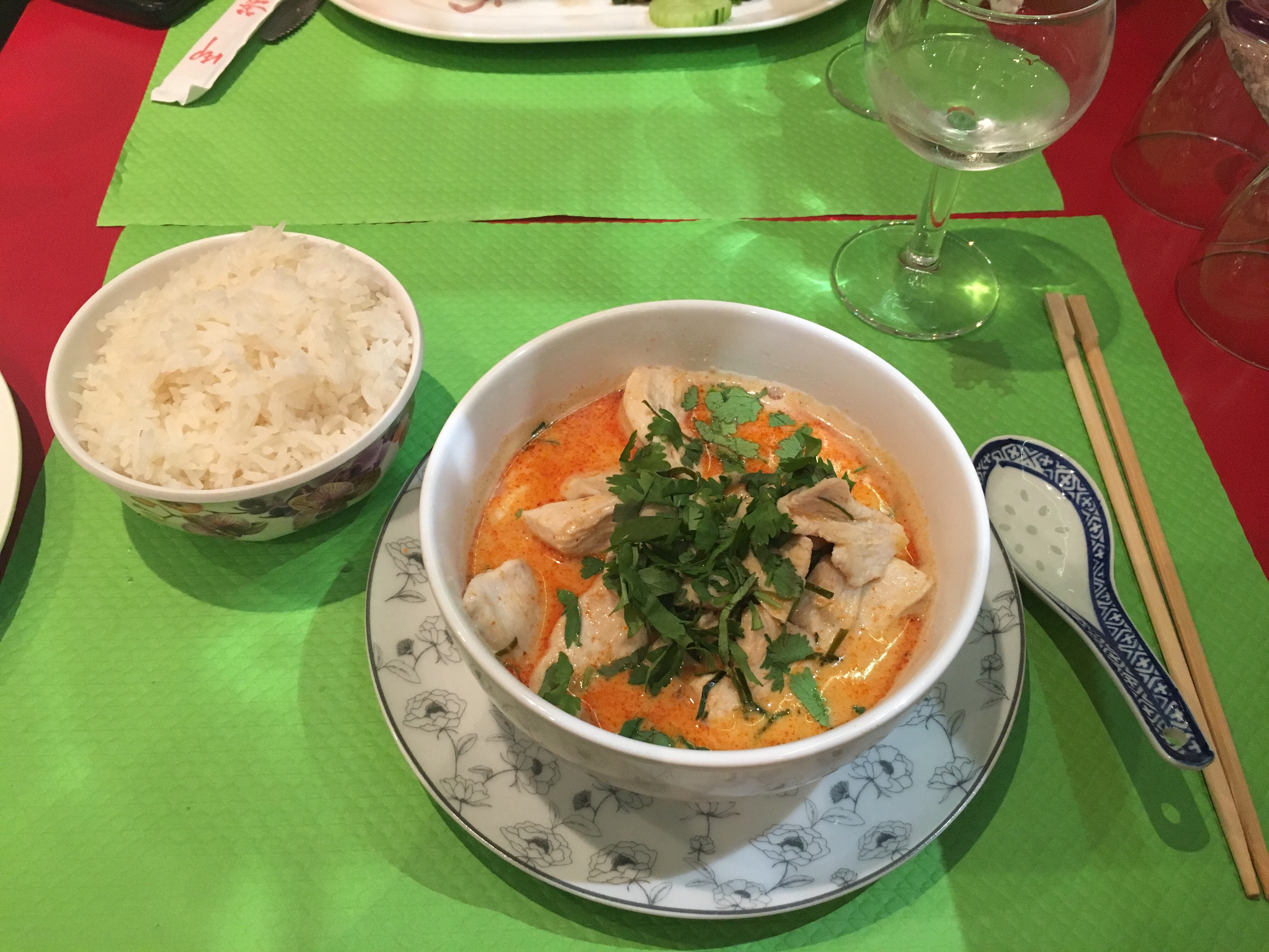 Curry rouge et riz délicieux. Petit endroit mais l'ambiance est géniale. Ils ont déplacé quelques tables pour que ça marche et j'ai pu m'asseoir. Je l'ai choisi parce que c'était l'un des endroits les plus abordables de Nice, mais la nourriture est tout sauf bon marché. J'aurais aimé pouvoir en commander plus. La table à côté de moi de 5 personnes a eu un festin absolu et tous les plats avaient l'air divin. J'y retournerais et je le recommande.