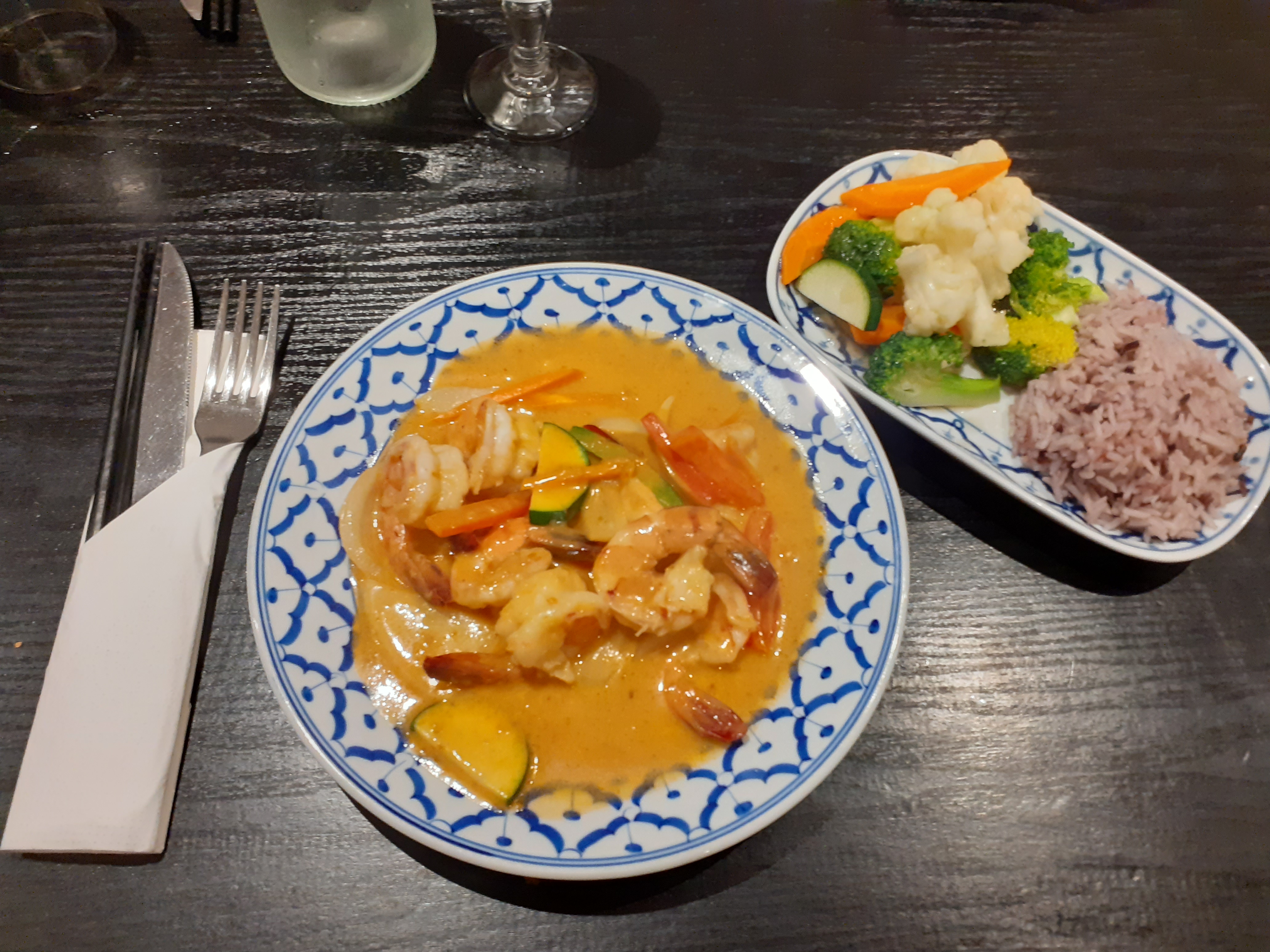 Excellent dîner. Entrée avec une friture bien croustillante. Crevettes lait de coco et curry rouge très savoureuses et épicées juste ce qu'il faut. Petit bémol sur le gâteau à l'ananas. Quelconque mais pas mauvais pour autant. En plus un accueil très chaleureux. Top