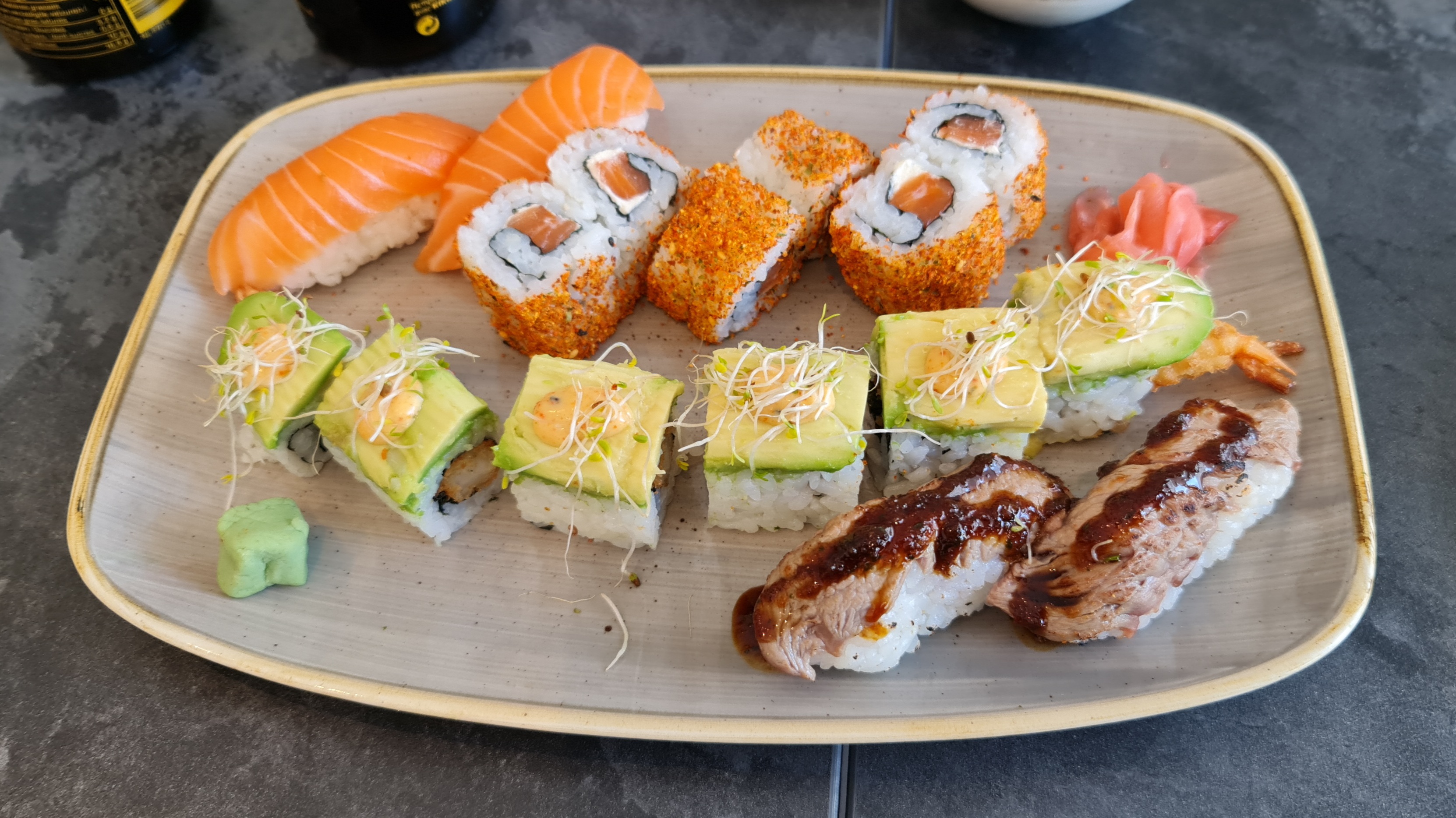 Bonne qualité des sushis. je conseille la soupe miso et le plat tout saumon . j'aurais apprecié une pointe de gout supplémentaire sur l'ensemble des produits . A mon avis le riz manque un peu de vinaigre de riz dans sa preparation.