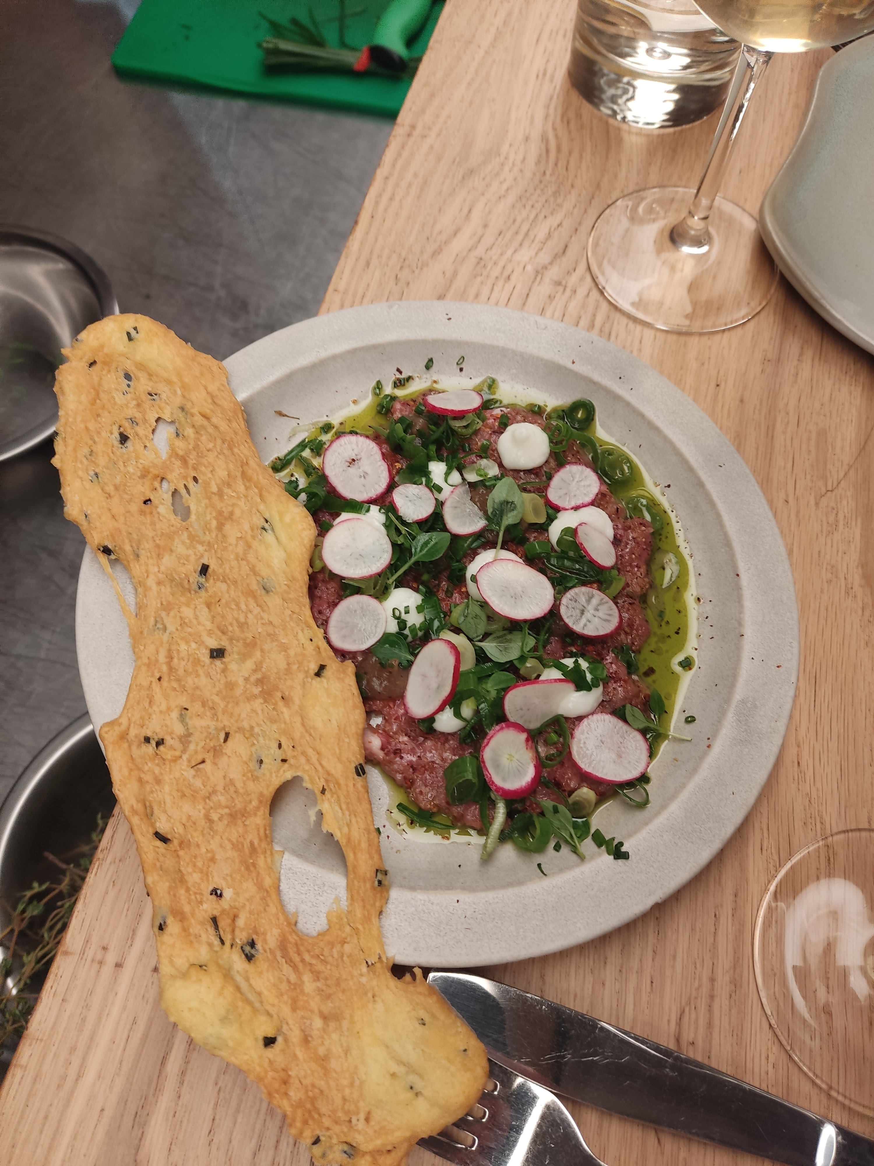 10 étoiles ! Absolument phénoménal ! Tout ce que nous avons mangé était délicieux. Le service était fantastique. Je recommande vivement le tartare d'agneau et le poulet. Littéralement, tout ce que nous avions était incroyable. J'ai été agréablement surpris par le prix d'un dîner pour 2 avec 2 bières et un verre de vin. Facilement 2 fois le prix dans la plupart des grandes villes. Asseyez-vous au bar si vous le pouvez. Ça vaut le coup et le personnel de cuisine est attachant et drôle. Elisa était si gentille et amusante. Allez-y maintenant avant que ce ne soit l'endroit le plus populaire de la ville et que vous ne puissiez plus y entrer !