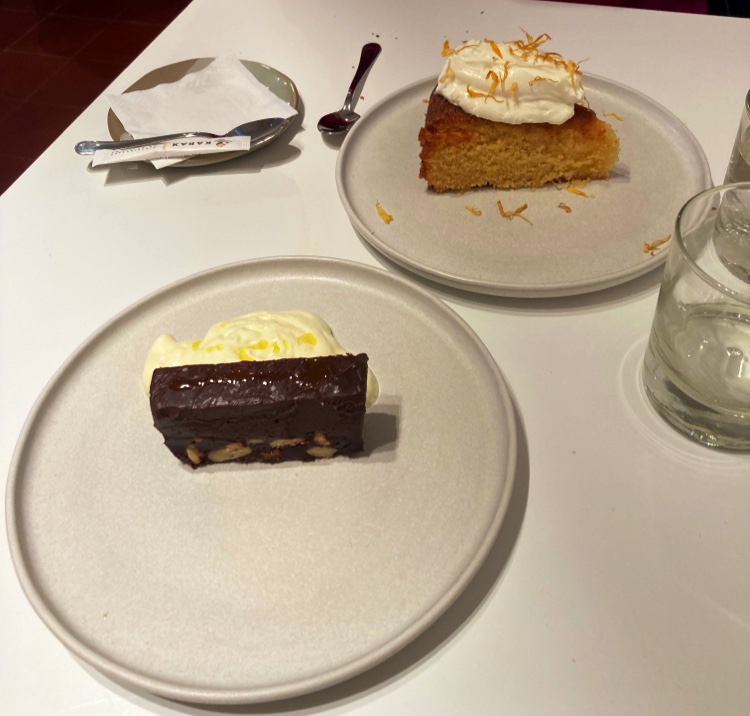 Nous avons pris menu midi. C’était super bon l’entrée salade et le plat poulet mais j’aime moins falafels lentilles. J’adore le gâteux aux pistaches. C’était super grand mais super bon avec haricots rouges à l’intérieur. Belle surprise