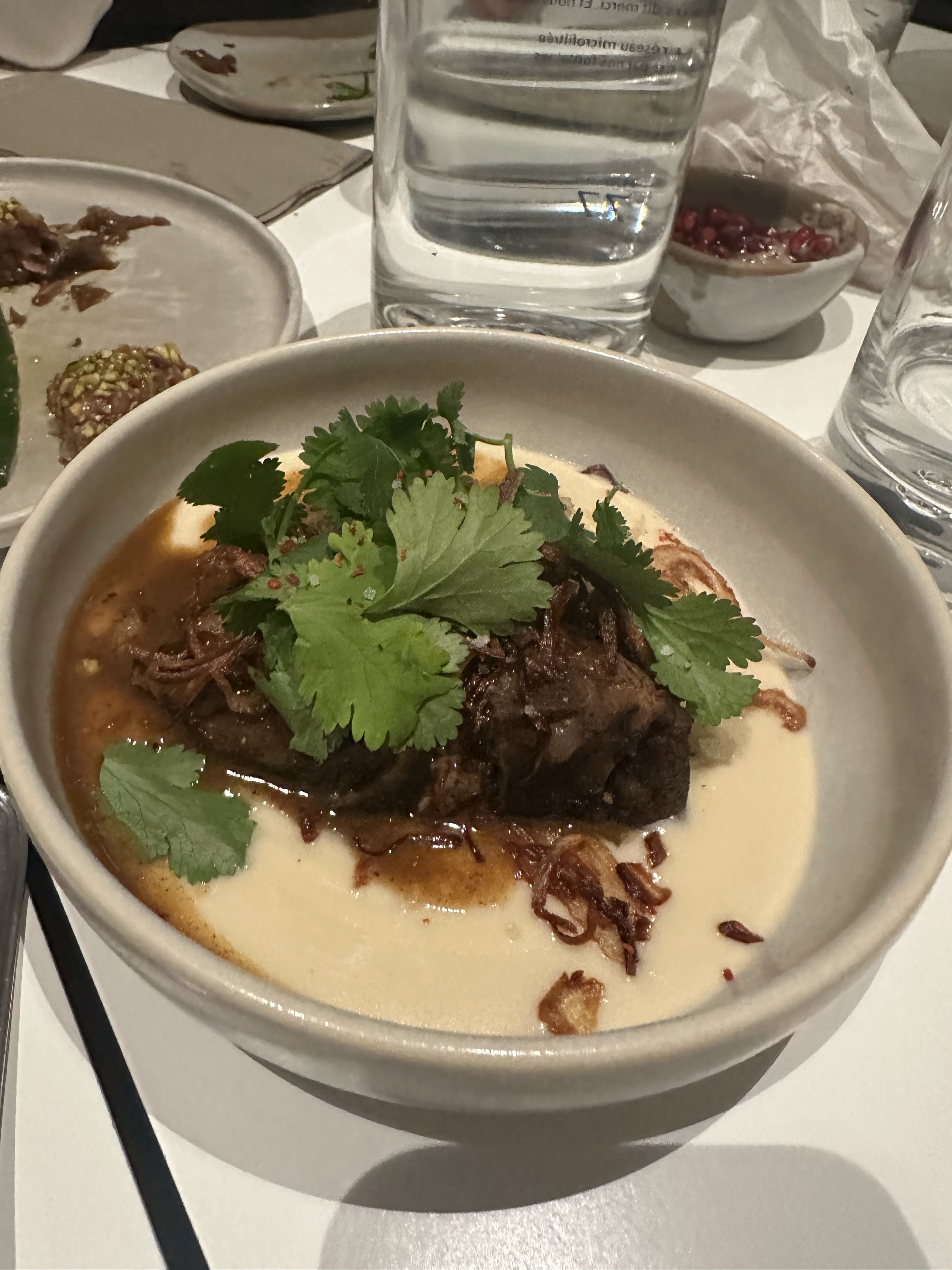 Une sacrée découverte et une expérience gustative vraiment exceptionnelle. La possibilité de s’installer au bar pour voir les cuisines est réellement appréciable. Côté plats, c’est absolument parfait de bout en bout. Nous avons pu tester plusieurs mezze dont un incluant des choux de Bruxelles, c’était tout simplement exceptionnel. La souris d’agneau était juste incroyablement délicieuse. Il n’y a pas la moindre hésitation à avoir sur cette adresse