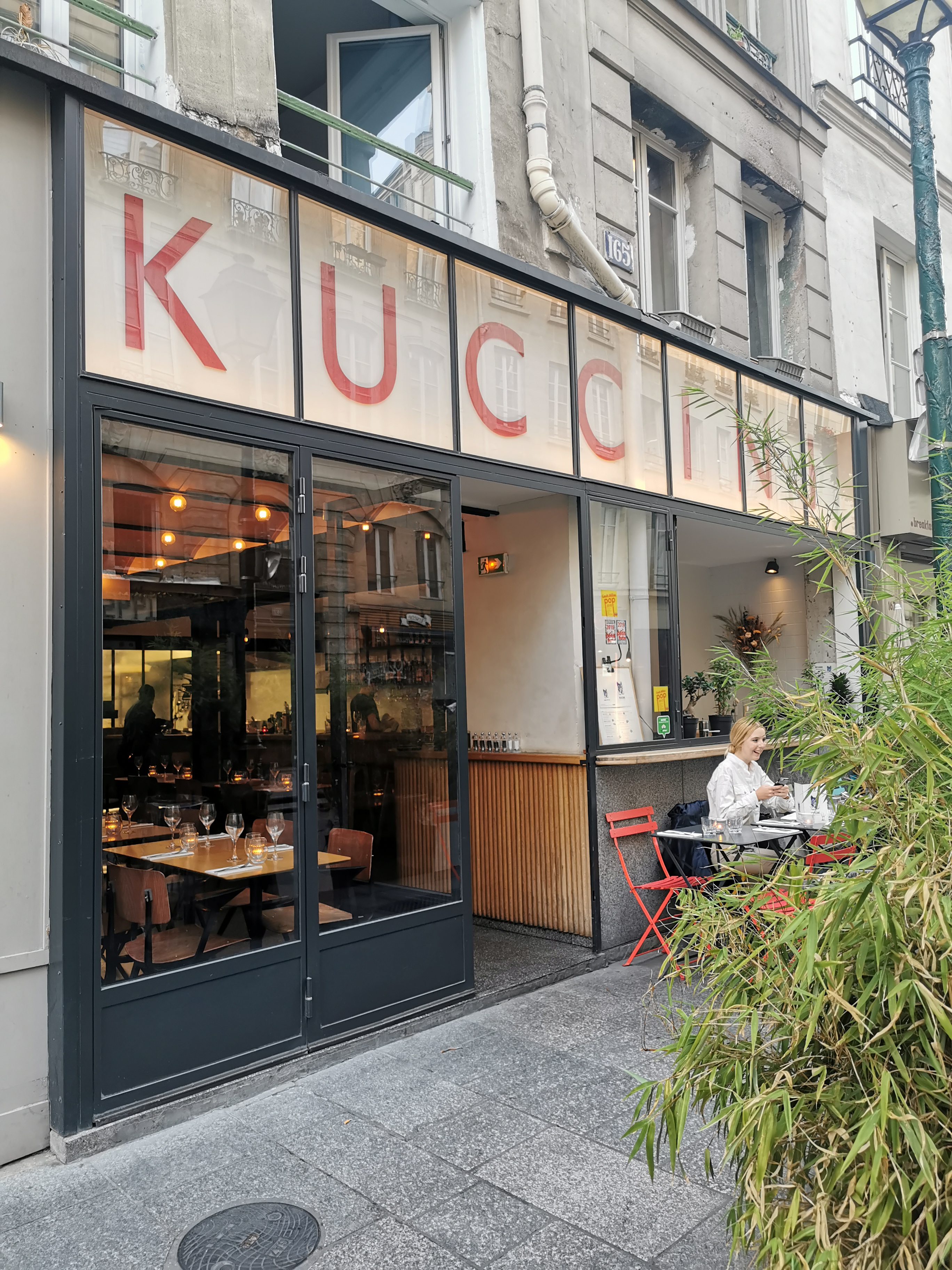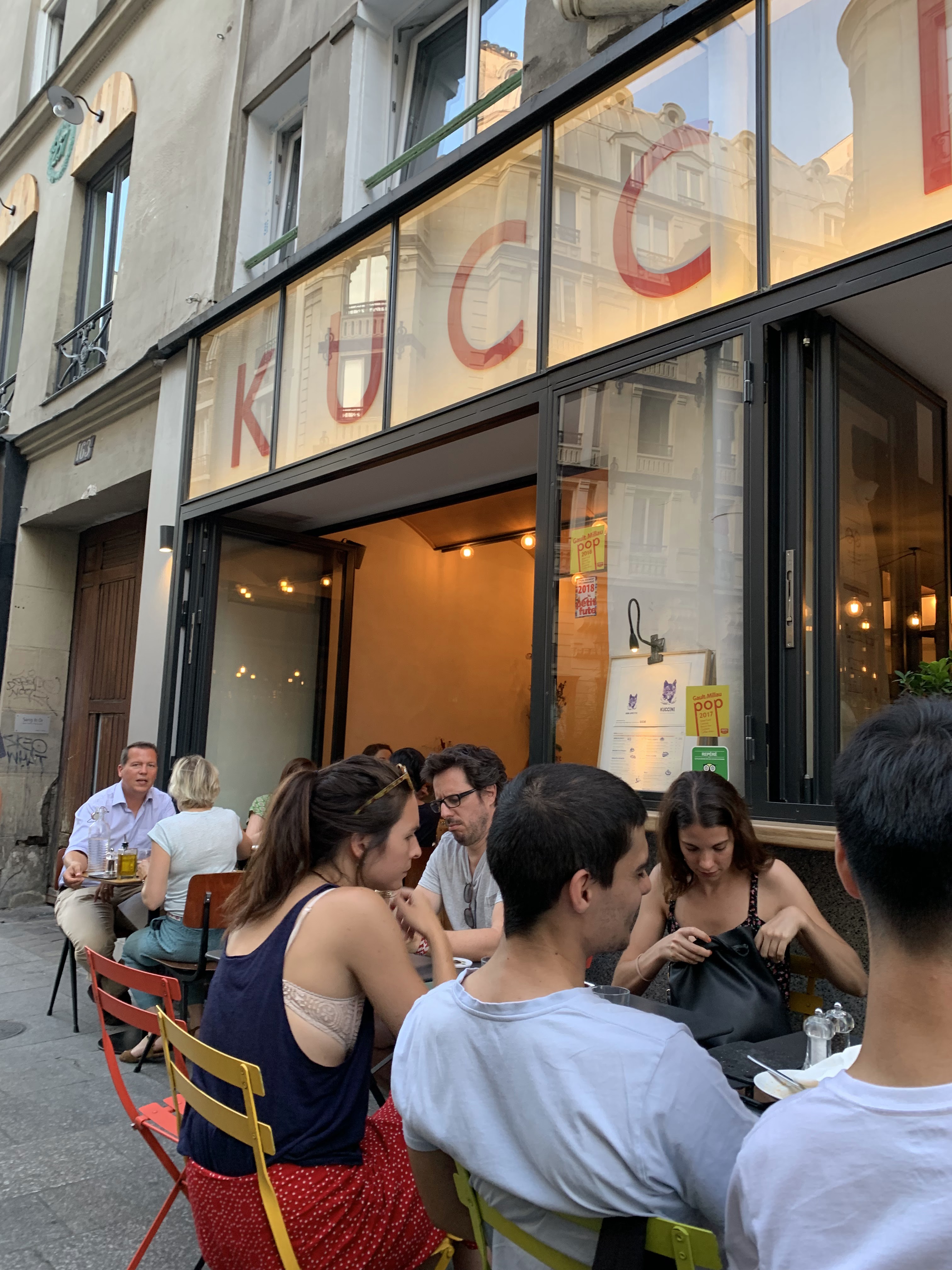 J’avais ce jours là une envie folle pour un plat de pâtes, par contre je désirais qu’elles soient de qualité. Feuilletant diverses applications pour trouver un resto près de ma chambre pouvant convenir à ce besoin, Kuccini venait au premier rang. Et avec raison! Aussi simple que puisse être une assiette de pâtes aux tomates, encore faut-il savoir bien l’exécuter avec des ingrédients fais et de qualité! C’est exactement ce que j’ai obtenu chez Kuccini! J’y ai aussi trouvé une excellente sélection de vins pour accompagner mon assiette, un décors sensas et surtout une équipe jeune, dynamique, sympathique et efficace! J’y suis retourné le surlendemain juste pour boire un verre, et y retournerai assurément lors de mon prochain passage sur Paris!