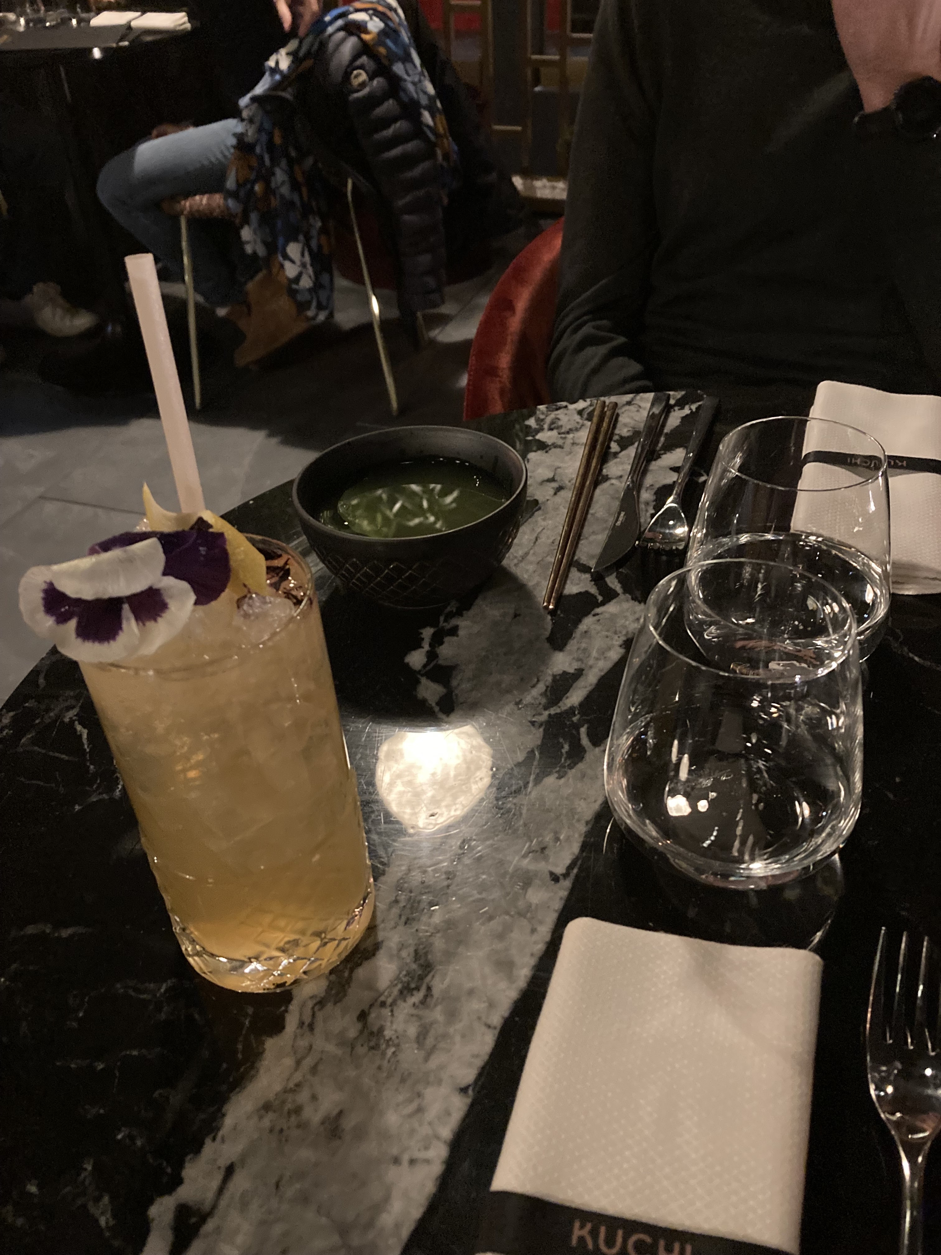Une très belle soirée passée au Kuchi, dans un cadre à la décoration soignée et bien pensée où chacun a son intimité ! La cuisine est entièrement ouverte sur la salle et c’est vraiment très sympa ! Un service irréprochable, de l’accueil jusqu’à la fin, grâce à une équipe accueillante et aux petits soins. Des plats très bons et savoureux aux notes asiatiques, avec des quantités parfaites. Nous avons pris la lotte et le saumon avec une panacotta en dessert : un délice ! Les dim sum en apéritif étaient très bons, accompagnés d’une très bonne sauce. Petit bonus pour les cocktails signature, pris en apéro puis au bar. La barmaid était très sympa et de bons conseils !