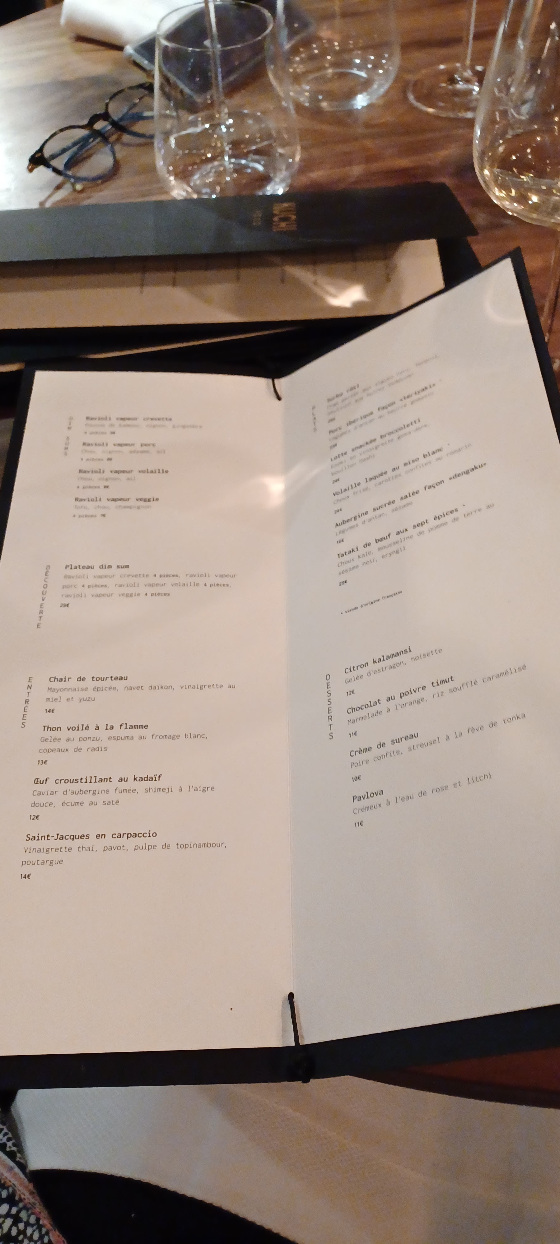 Très belle surprise ! Le lieu est une très belle découverte. Un peu mystérieux. Poussez le porte, prenez l’ascenseur et laissez vous porter. Un cadre chaleureux, intimiste sans pour autant être guindé. Un service parfait avec Gabin qui virevolte et passe une belle énergie de manière hyper pro. Présent mais pas trop et à l’écoute des commentaires. Une belle carte qui met l’Asie au service de la saisine française. Bref, on se régale, on se pose, on apprécie. Beau moment!