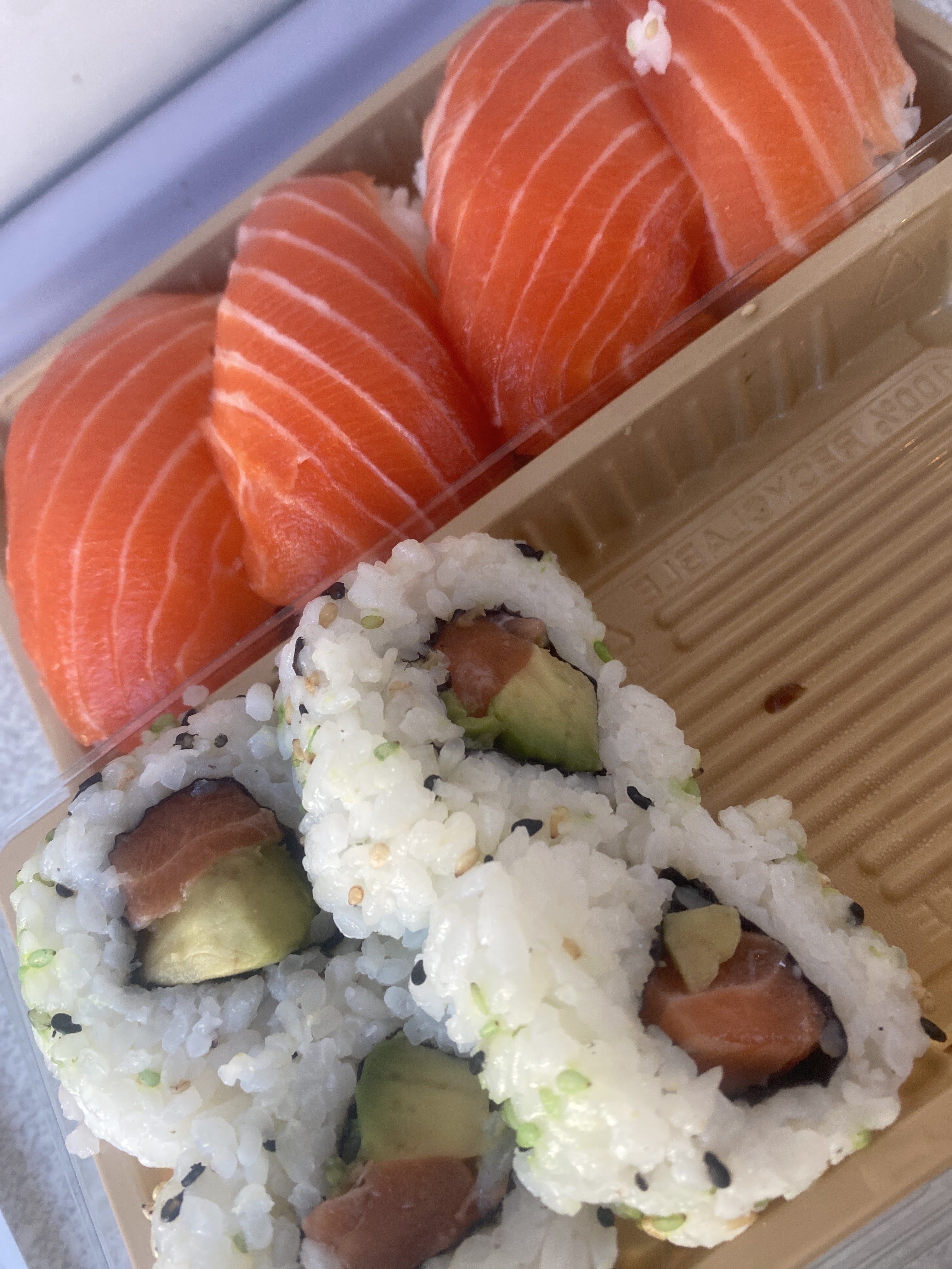 Sushi de qualité!! Le soir -50% ça vaut vraiment le coup !! Parfois les vendeuses nous font des offres lorsqu’il reste plus rien. Top