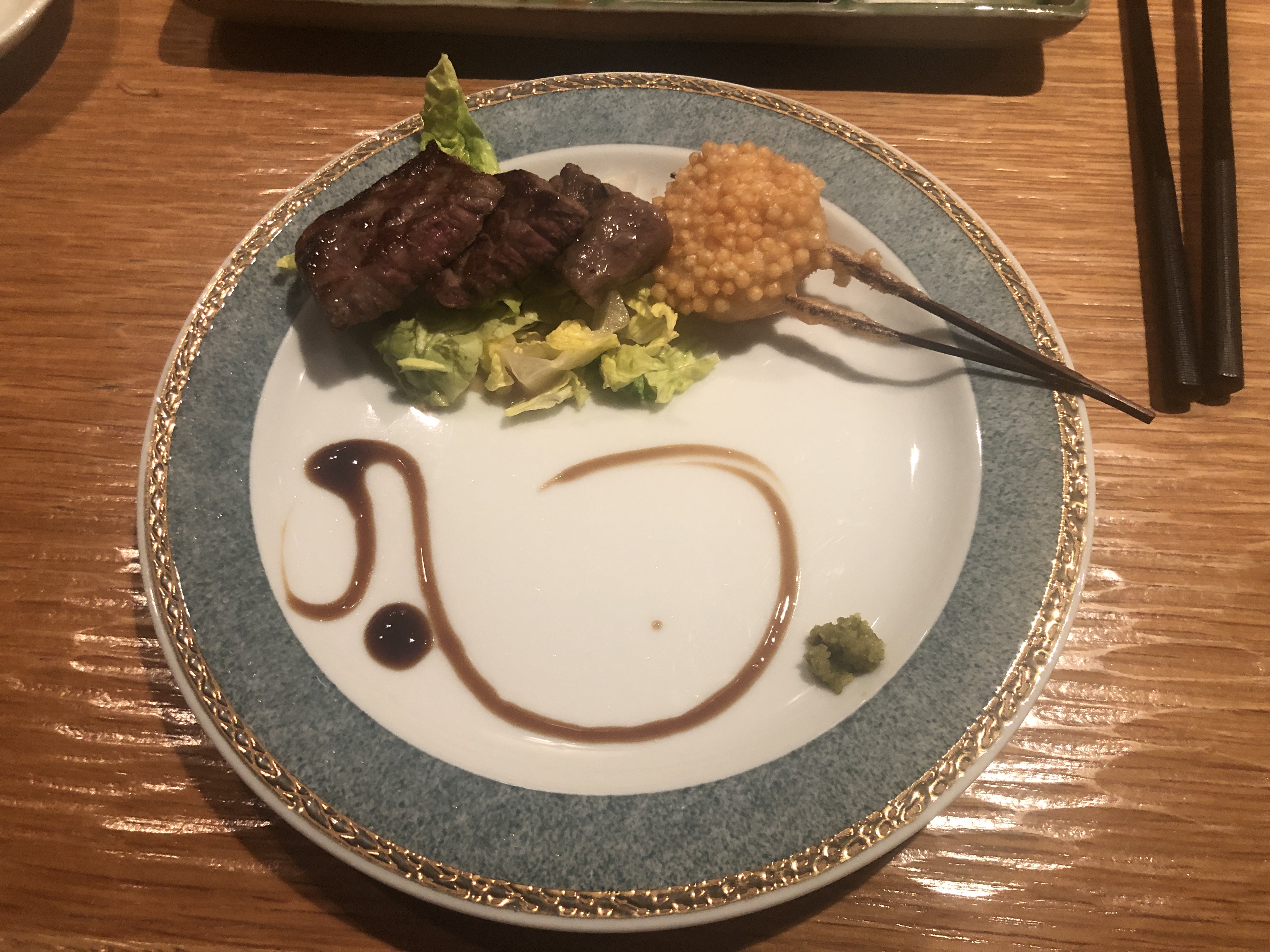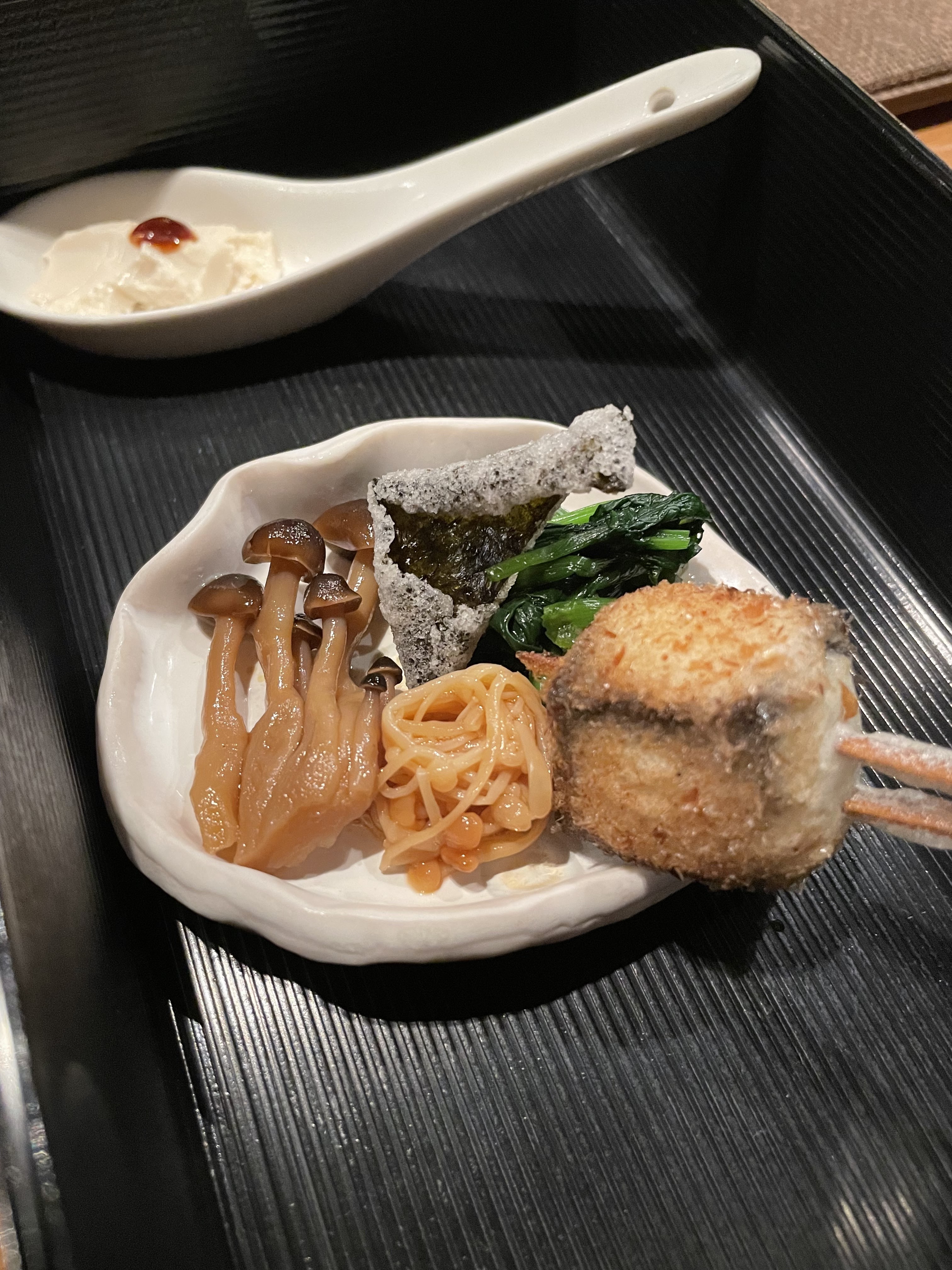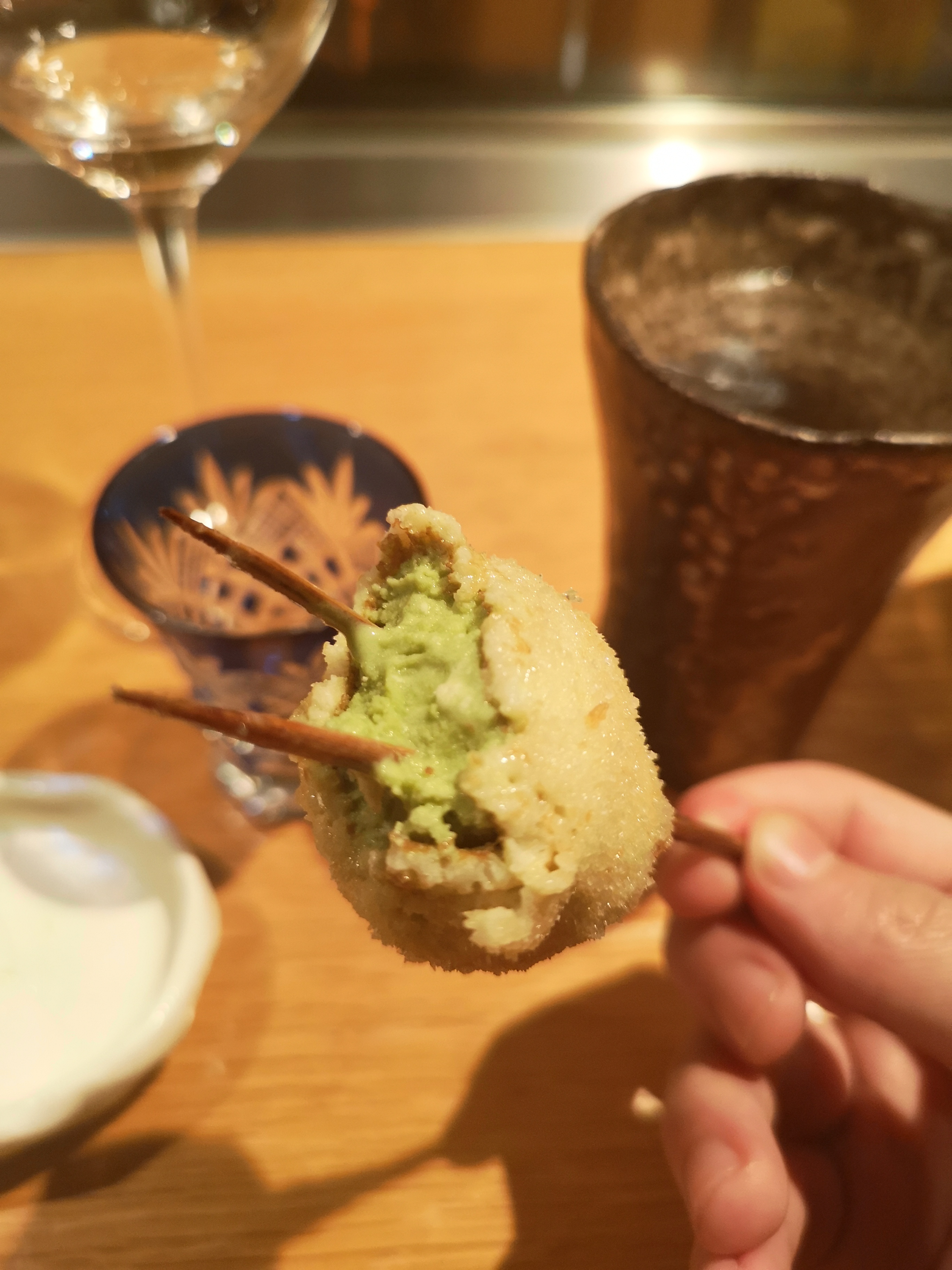 Sublimation des Kushikatsu, un plat très populaire à Osaka, servi dans des cantines. Rien qui puisse faire penser à du gastronomique. Et pourtant, c'est bien le cas ici ! Un vrai plaisir à chaque bouchée.
