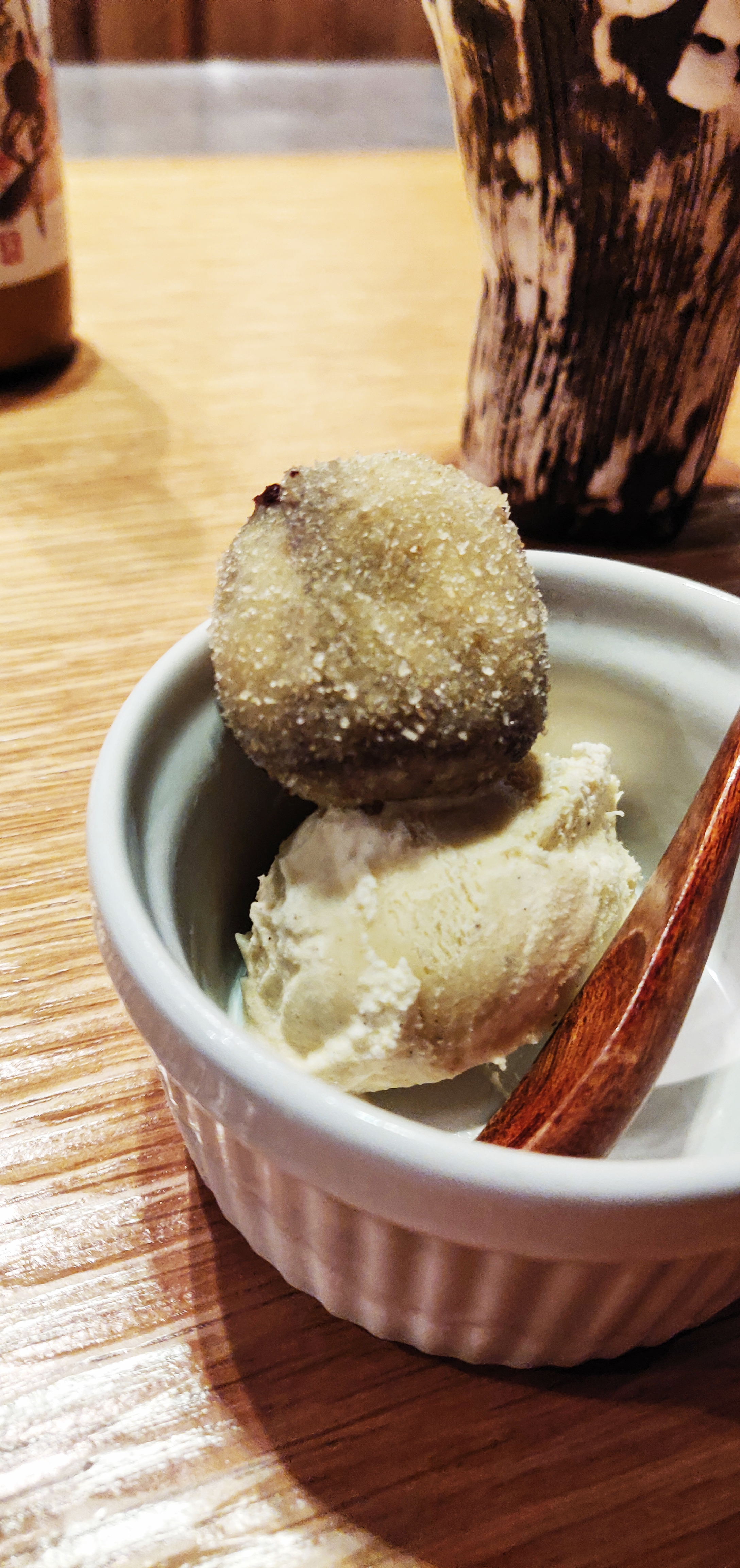 Le service est professionnel, courtois, parfait. Le fait d'avoir les sauces suggérées par un subtil message de la direction des pics était apprécié. Sur papier, l'idée de manger de petites brochettes frites semble géniale, mais en réalité, on a moyen apprécié malgré tout le travail des chefs pour que la cuisson soit légère. Parfois, on trouvait que la friture n'apportait pas d'intérêt majeur aux ingrédients, alors qu'on a pris les options wagyu et truffes fraîchement râpées. Dommage. Ce fut tout de même une expérience agréable. PS : on a bien aimé l'option d'un dessert glacé mais frit aussi !