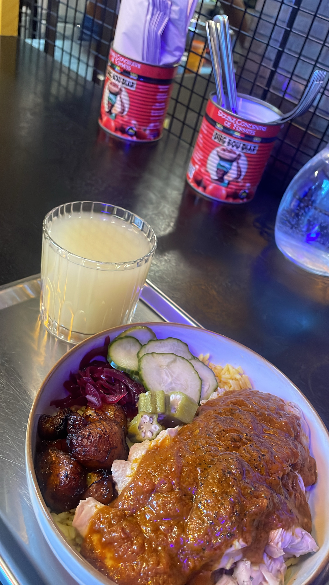 Rien a dire sur la qualité des plats, c’est très goûteux mais gros gros moins pour le bissap … pour y être habitué là je suis mega déçue 4€ presque pour un petit bissap coupé à l’eau et qui manque de goût … c’est dommage mais je ne retire pas d’étoile pour ça ! Ça serait top de revoir pour le bissap c’est tout !