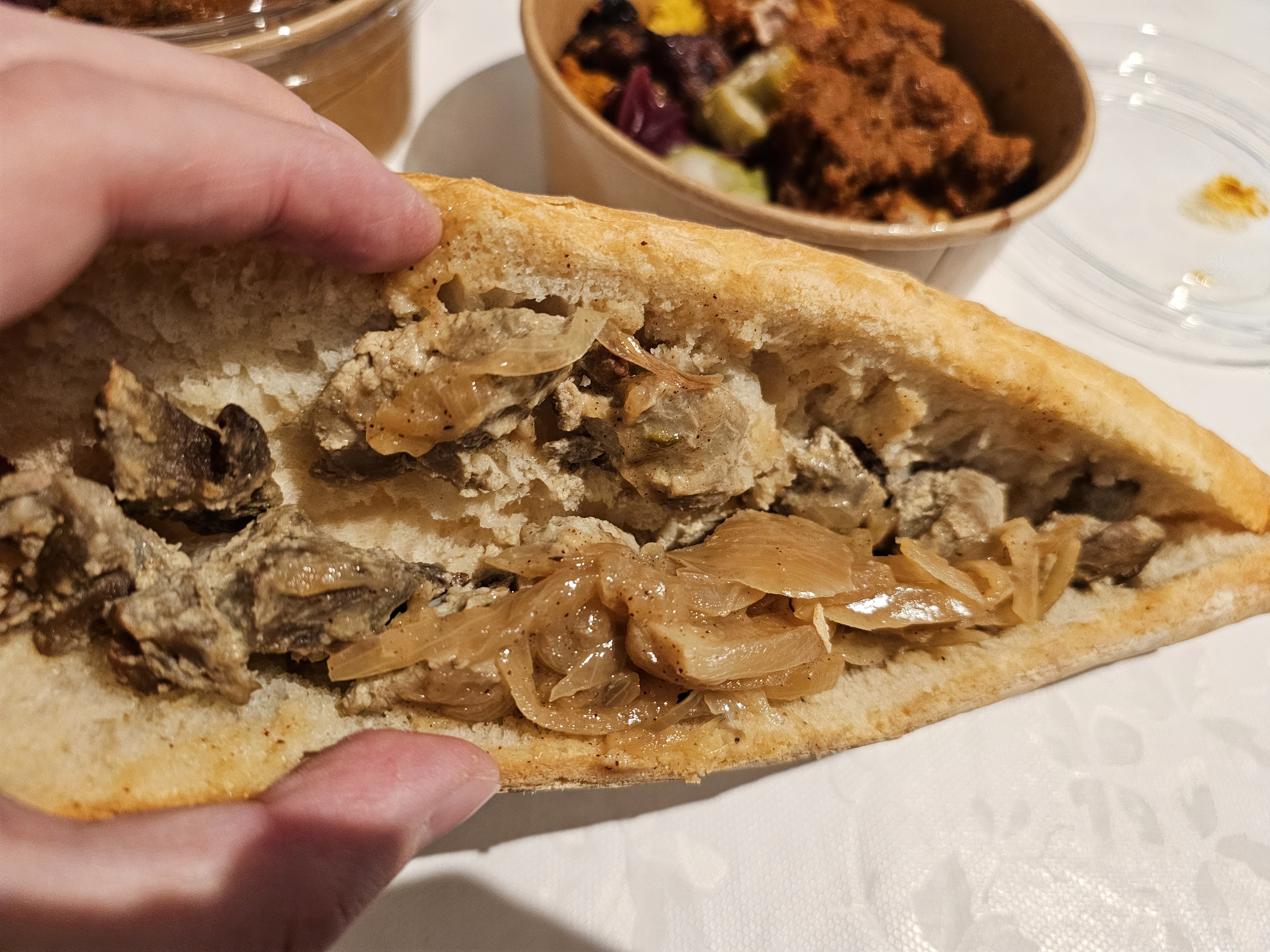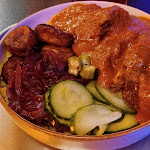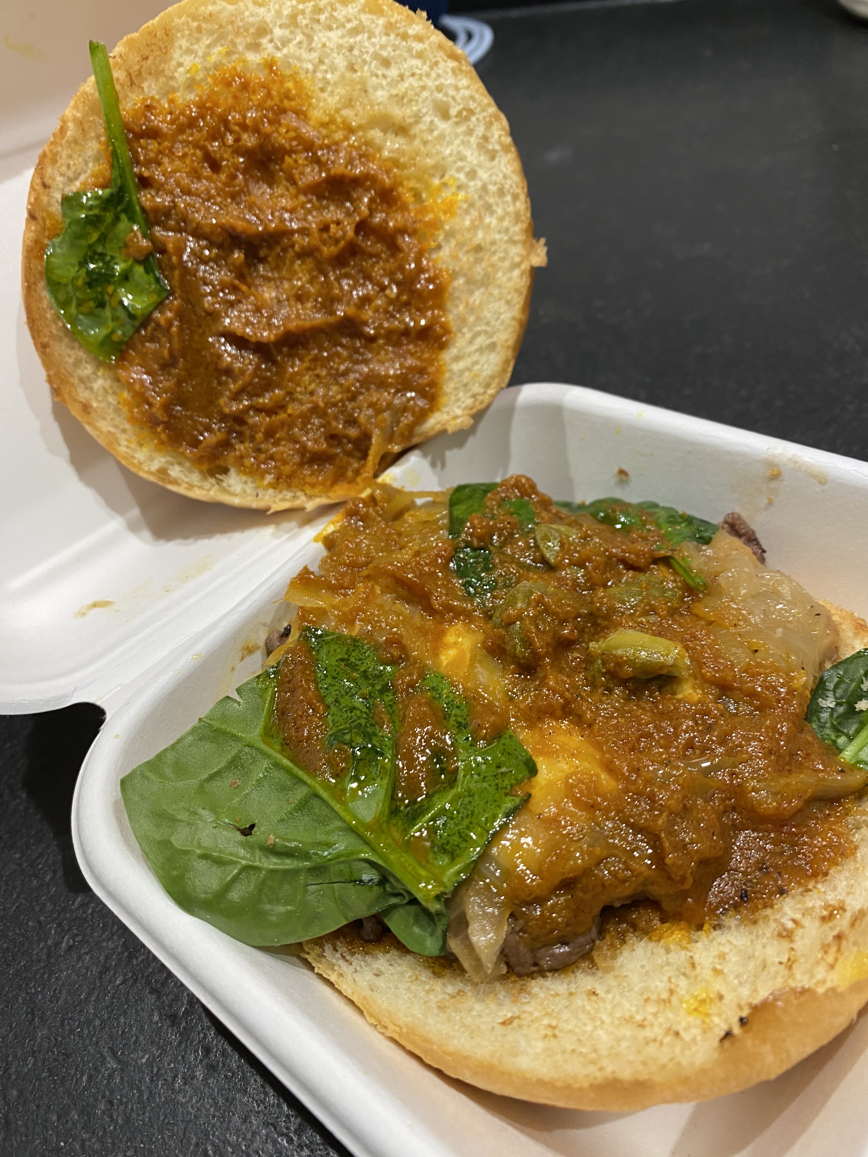 Accueil très sympa, mais je pense que pour faire payer un plat à emporter 14 euros il faut servir un truc un peu exceptionnel ou qui sort de l'ordinaire. Or je n'ai pas trouvé ces saveurs arrivé à la maison, j'aurais aimé par exemple pouvoir choisir mon niveau d'épice (pour ma part j'aime beaucoup la cuisine épicée), et cela ne m'a pas été proposé, donc je me suis retrouvé avec un plat non épicé (le niveau par défaut ?) et donc un plat assez 'flat', avec d'ailleurs beaucoup de riz, et moins du reste... passée une certaine heure, la 'pénurie' de baguettes (pain utilisé pour les sandwichs, plat le moins cher de la carte) paraît aussi assez opportune, on est dans un pays / quartier où il semble assez facile de remédier à cette situation, si elle existe...