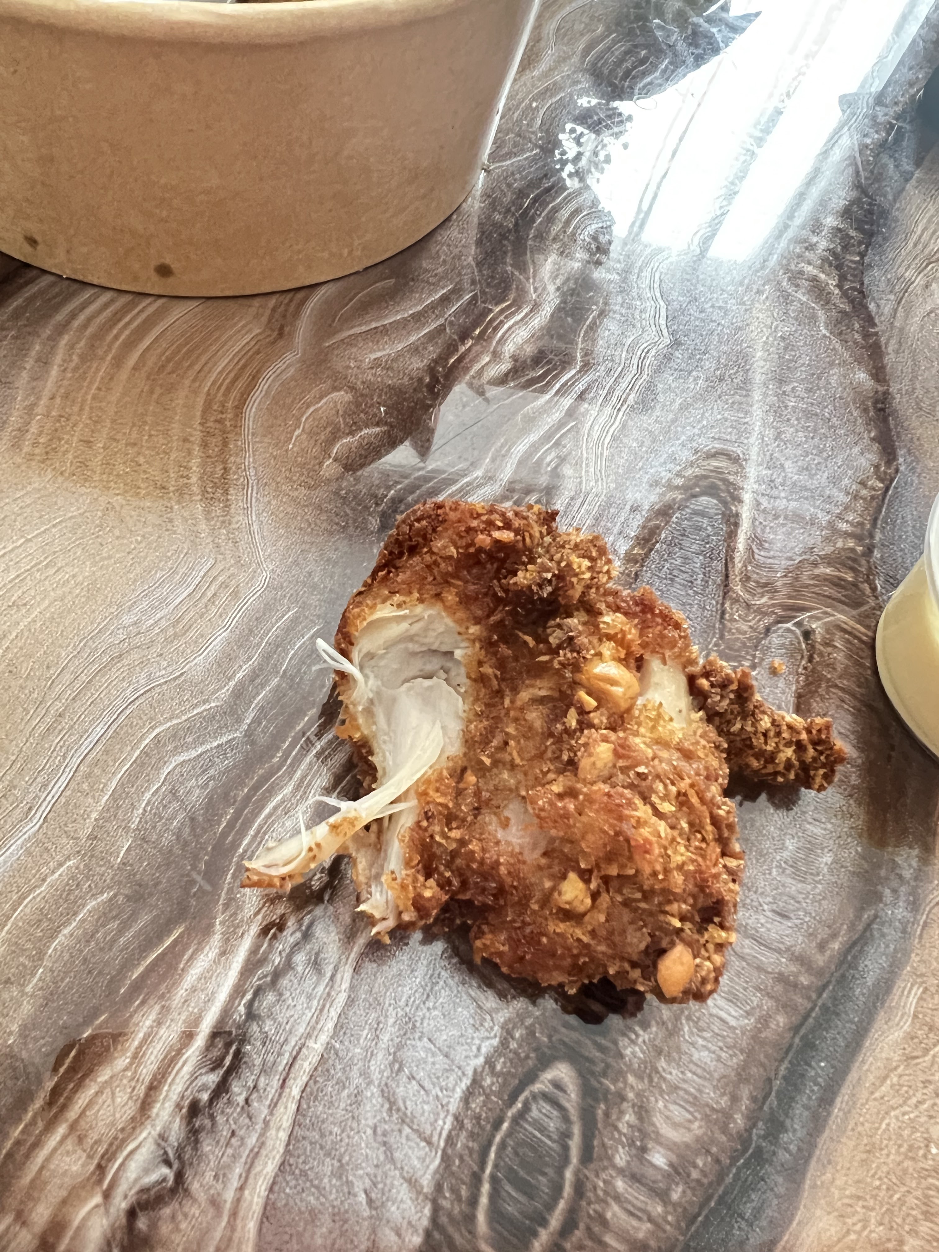 Belle découverte. C'était bon et copieux. Le poulet était bien tendre, la chapelure douce. Les alocos moelleux comme j'aime.