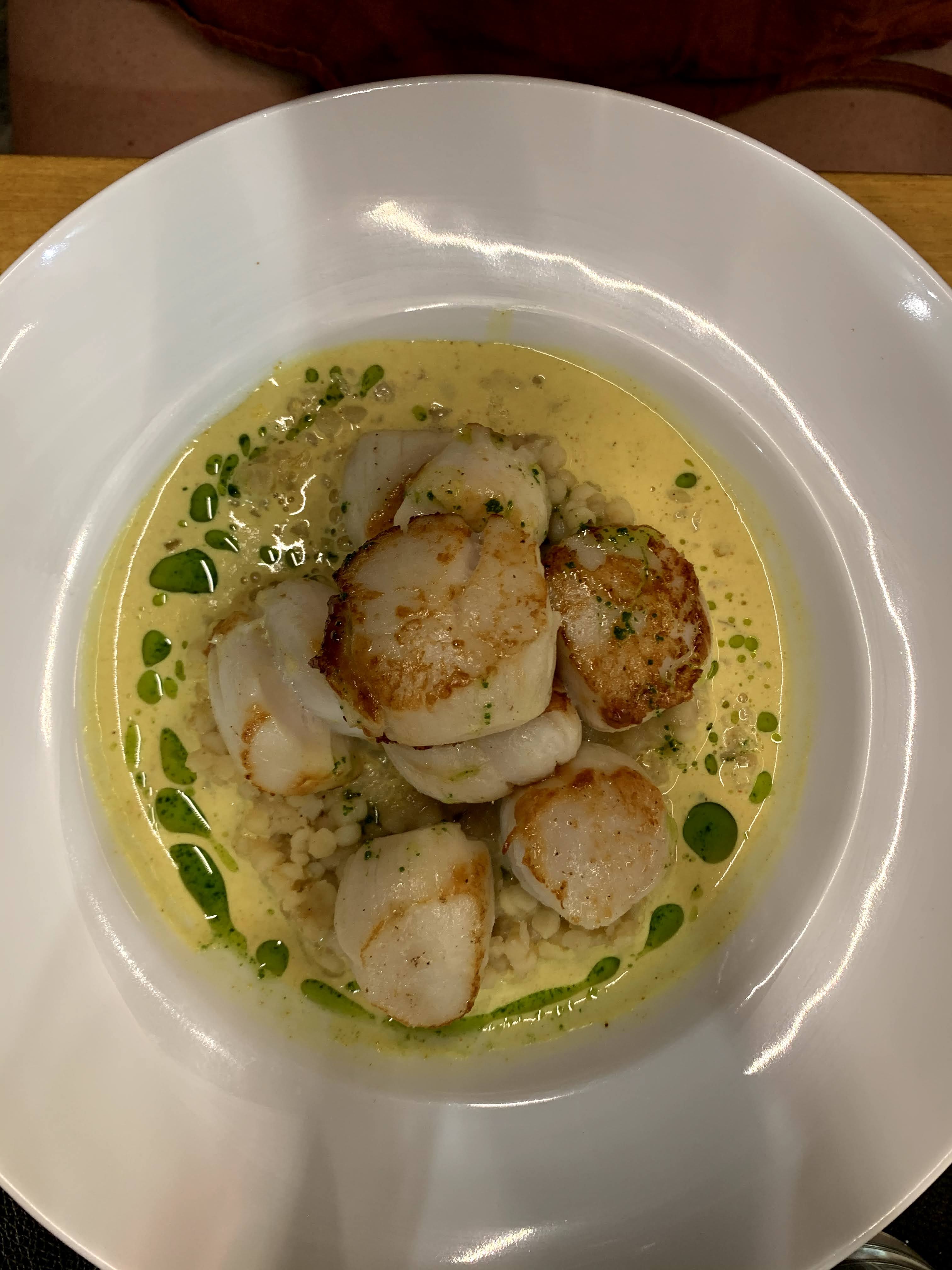 Poisson fondant...une entrée crème de lentilles super bonne....des plats exceptionnels bien préparés..des idées et les desserts sont parfaits. Equipe sympa...petite musique en fond