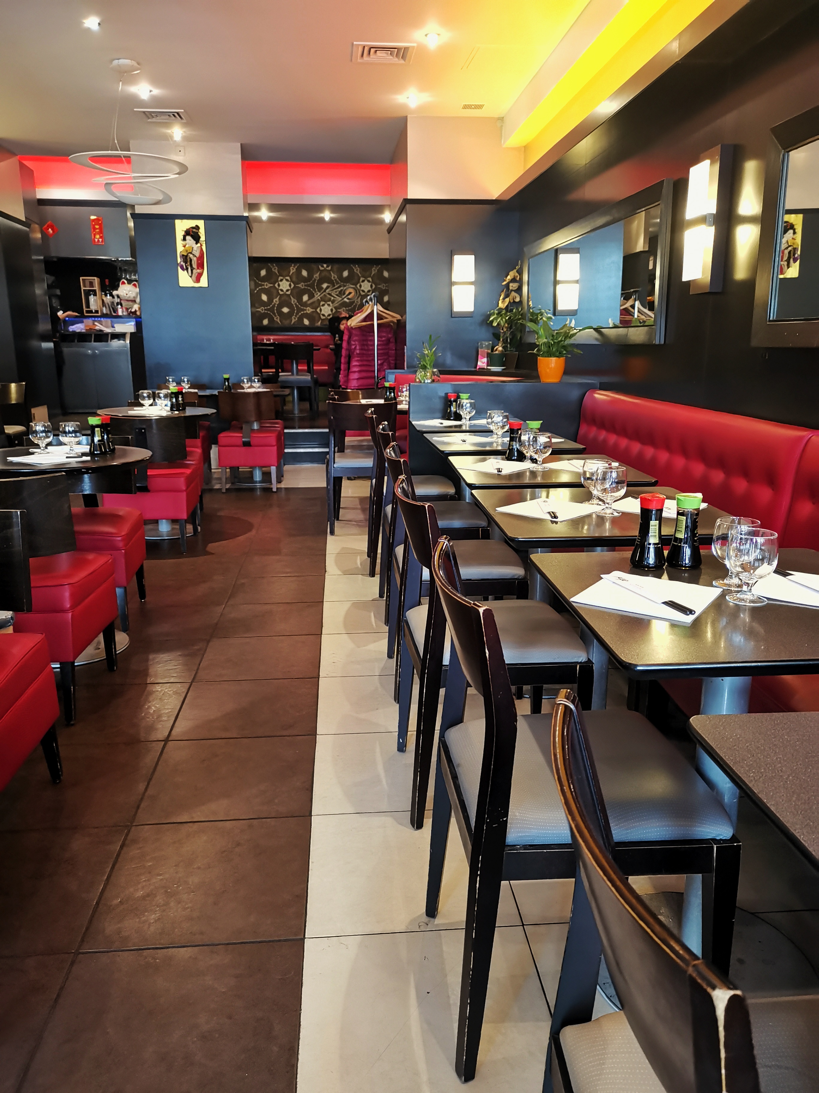 Restaurant japonais très classique. Les serveurs ont du mal à comprendre les commandes..surtout les différentes couleurs des vins.. Le vin rosé et blanc..ou lala... Mais n hésitez pas à remplacer quand ils se trompent..aucun problème ils sont très.sympa et serviables.. Le restaurant est très bien chauffé et beaucoup de places assises.